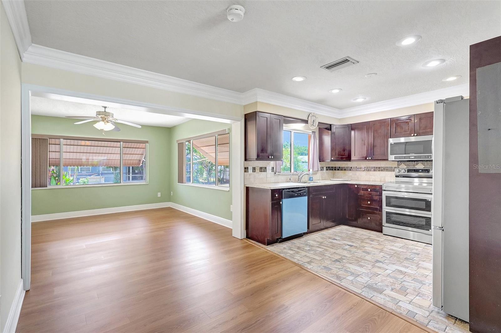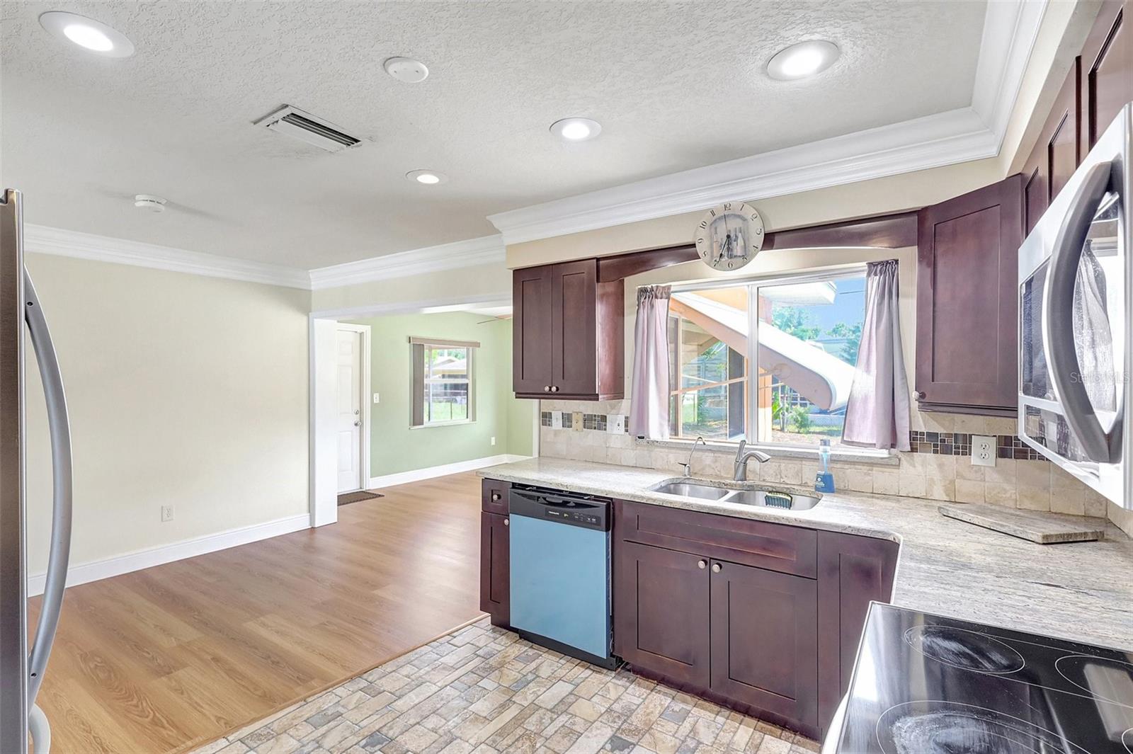 LOCALIZAÇÃO! LOCALIZAÇÃO! LOCALIZAÇÃO! Parques, compras, restaurantes, trilhas para pedestres e as belas águas de Tampa Bay estão a uma curta viagem de bicicleta. Esta impressionante casa no meio do condado está pronta e perfeitamente situada para viagens para St. Pete, Clearwater ou Tampa, localizada perto da McMullen Booth Rd! Esta casa lindamente mantida e atualizada possui dois quartos, dois banheiros completos e um covil que pode servir como um quarto ou escritório em casa extra. A grande garagem de um carro e a lavanderia separadas proporcionam uma conveniência adicional, completa com armários de madeira, bancadas de coriano e uma bacia de lavagem profunda para facilitar a lavanderia. As molduras personalizadas da coroa e da base complementam o piso de madeira em todas as áreas de estar, bem como os dois banheiros completos apresentam vaidades de madeira maciça, bancadas em granito e ladrilhos de cerâmica por toda parte. A cozinha espaçosa é o deleite de um chef, com armários de café expresso de estilo europeu com iluminação sub-cabinete, lindas bancadas de granito e um sistema de filtro de água de osmose reversa! Os aparelhos de aço inoxidável mais recentes incluem um microondas de grandes dimensões, lava-louças, alcance do forno de convecção deslizante e uma grande geladeira/freezer lado a lado de 27 pés cúbicos. Saia para desfrutar da varanda traseira de tela grande e do quintal cercado de grandes dimensões - perfeita para relaxar ou divertir. O exterior é lindamente paisagístico e possui colunas decorativas, um pátio frontal coberto de ladrilhos, uma nova porta de entrada e janelas de panela dupla. Localizado em uma zona escolar altamente classificada, esta casa tem tudo. Não perca - lembre hoje para agendar sua exibição particular!