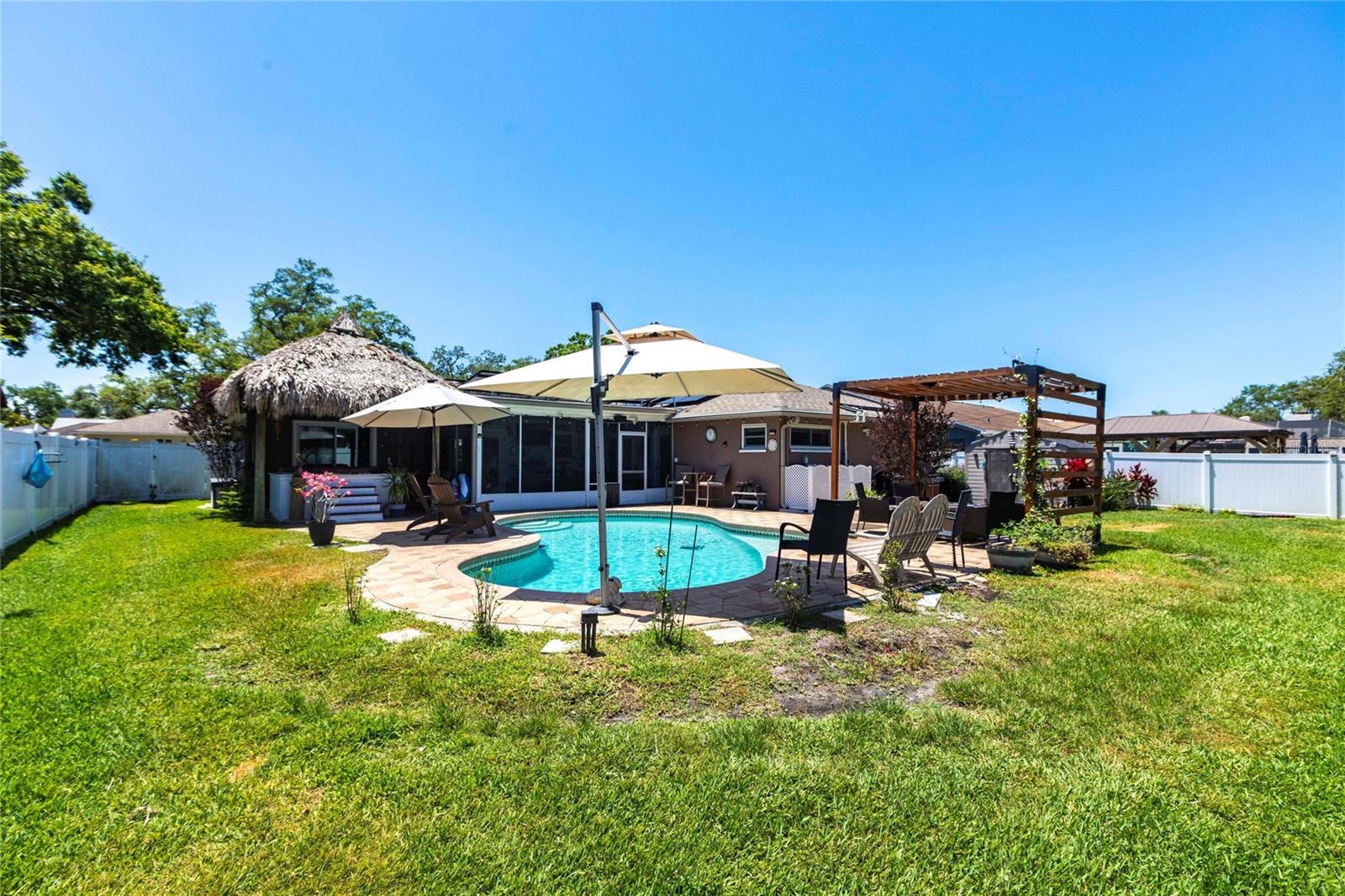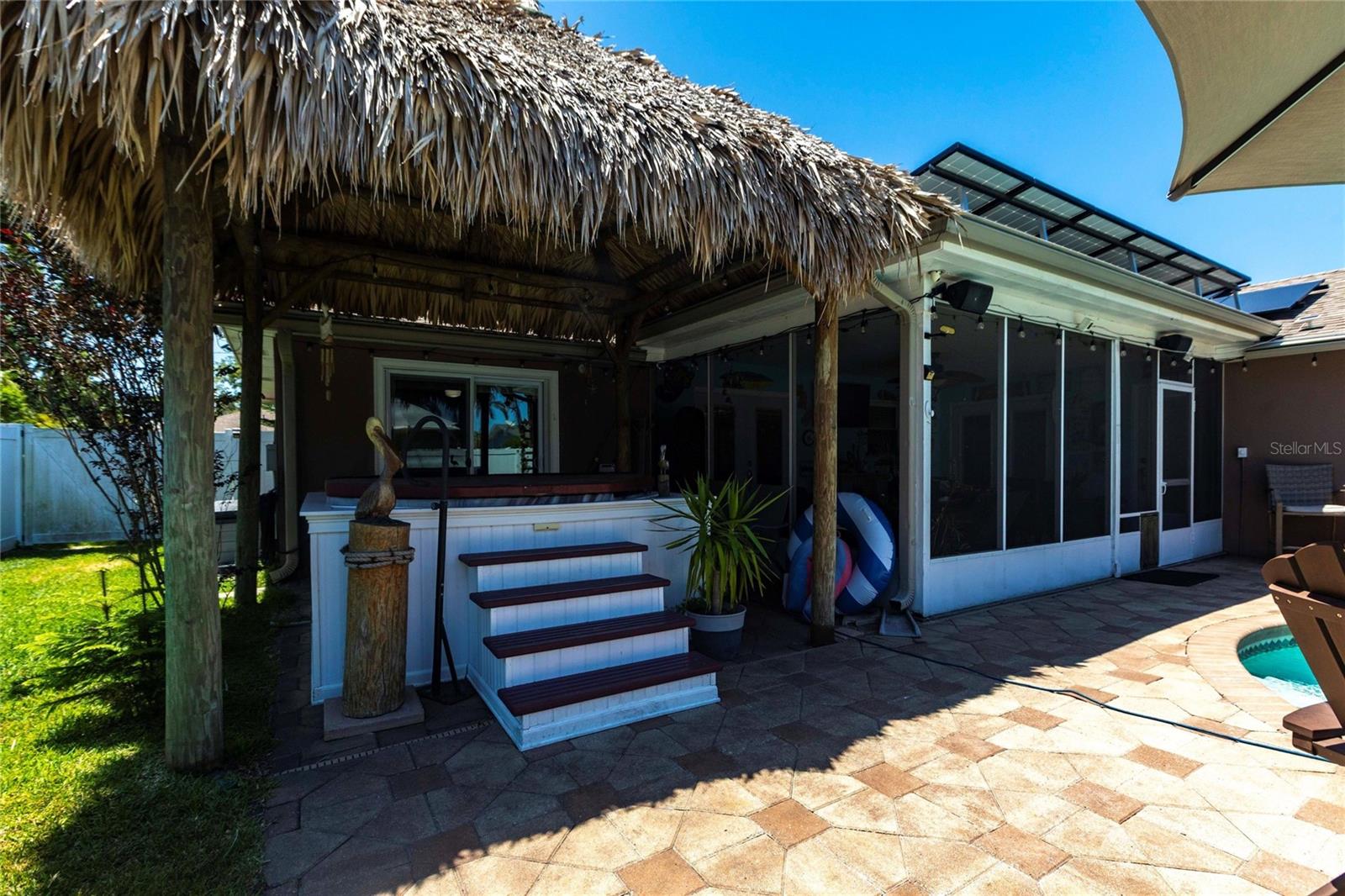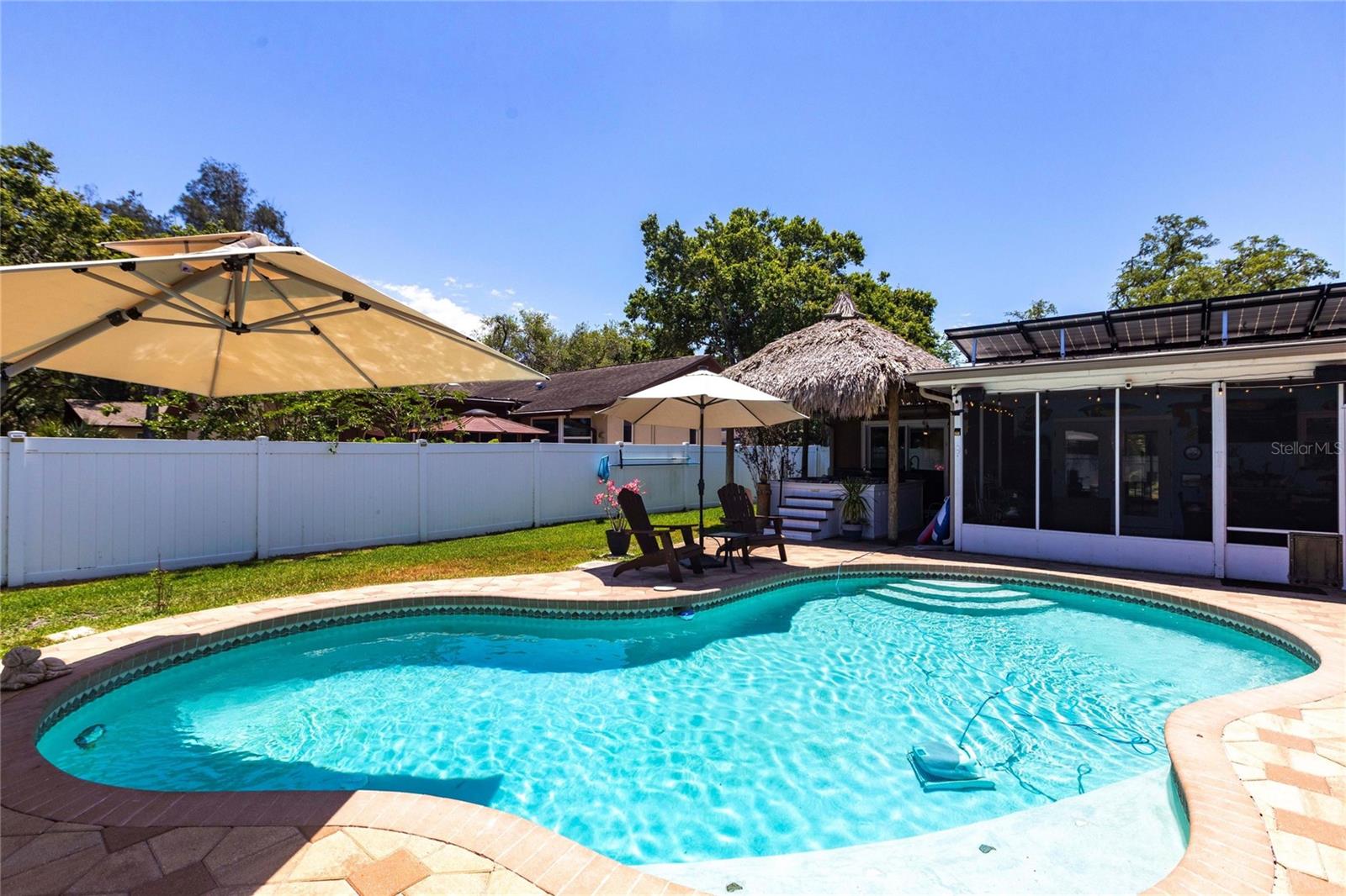 Bem-vindo a uma residência lindamente decorada que combina conforto, elegância e vida no estilo resort. Esta casa excepcional de 4 quartos e 2 banheiros oferece 1.719 pés quadrados de espaço interior cuidadosamente projetado e fica em um lote espaçoso, perfeitamente adequado para a vida cotidiana e o inesquecível entretenimento. O layout convidativo da casa apresenta uma sala de família com uma lareira de pedra e queima de madeira. Em toda a casa, o piso de ladrilhos de aparência nova de madeira fornece uma base elegante e durável, enquanto as janelas com eficiência energética permitem uma abundância de luz natural. O coração da casa é a cozinha bem equipada, projetada para agradar o cozinheiro casual e o anfitrião experiente. A suíte primária oferece um retiro pacífico com um armário embutido e fácil acesso ao banheiro atualizado com pias duplas grandes e um grande chuveiro personalizado. Três quartos adicionais oferecem flexibilidade para a família, os hóspedes, um escritório em casa ou um espaço de hobby. O que realmente eleva essa propriedade é sua vida ao ar livre no estilo resort. O lanai traseiro selecionado abre para um oásis de quintal com água salgada, piscina com aquecimento solar e uma banheira de hidromassagem sob uma cabana de tiki personalizada. Esteja você começando a sua manhã com um mergulho, encharcando o spa ou entretendo os amigos à beira da piscina, este espaço ao ar livre oferece uma experiência que poucas casas podem combinar. Uma pérgola de madeira natural possui uma mesa de fogueira de propano e assentos adicionais. O sistema de irrigação manterá seu gramado em ótima forma e utiliza água recuperada para obter eficiência. Os painéis solares são pagos e reduzem a conta de energia para apenas trinta e cinco dólares por mês. Uma fonte de vida inteira o sistema de filtragem de água doméstica acrescenta um toque atencioso de conveniência e qualidade. As calhas da guarda das folhas permitem menos acúmulo e manutenção. Um plugue de gerador e a porta da garagem com classificação de furacões permitem tranquilidade. A cerca com dupla gatada permite estacionamento extra para um pequeno barco ou veículo no pátio lateral. A garagem possui uma geladeira extra para adicionar armazenamento de alimentos. Sem restrições de HOA e meticulosamente mantido, esta residência está pronta para o seu próximo capítulo. Se você procura uma propriedade que oferece mais do que apenas um lugar para morar - que oferece conforto, estilo e verdadeira vida na Flórida - sua pesquisa termina aqui. Não perca a oportunidade de tornar esta casa excepcional a sua.