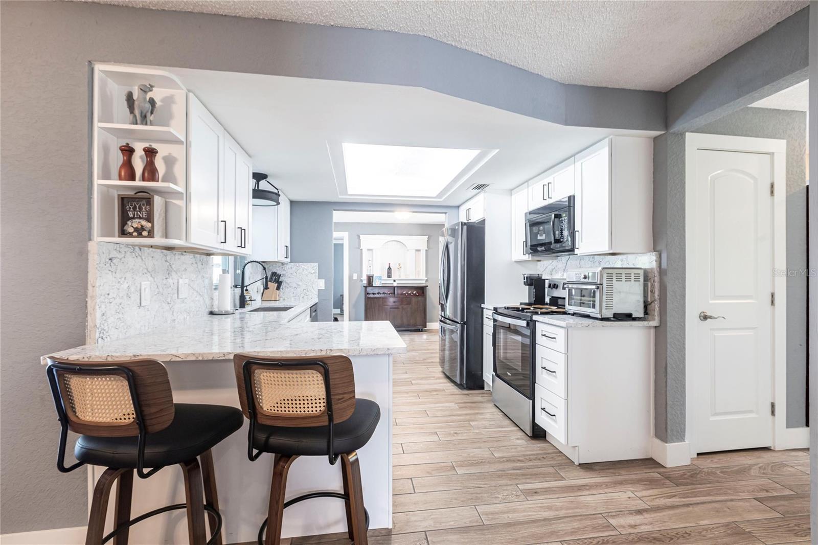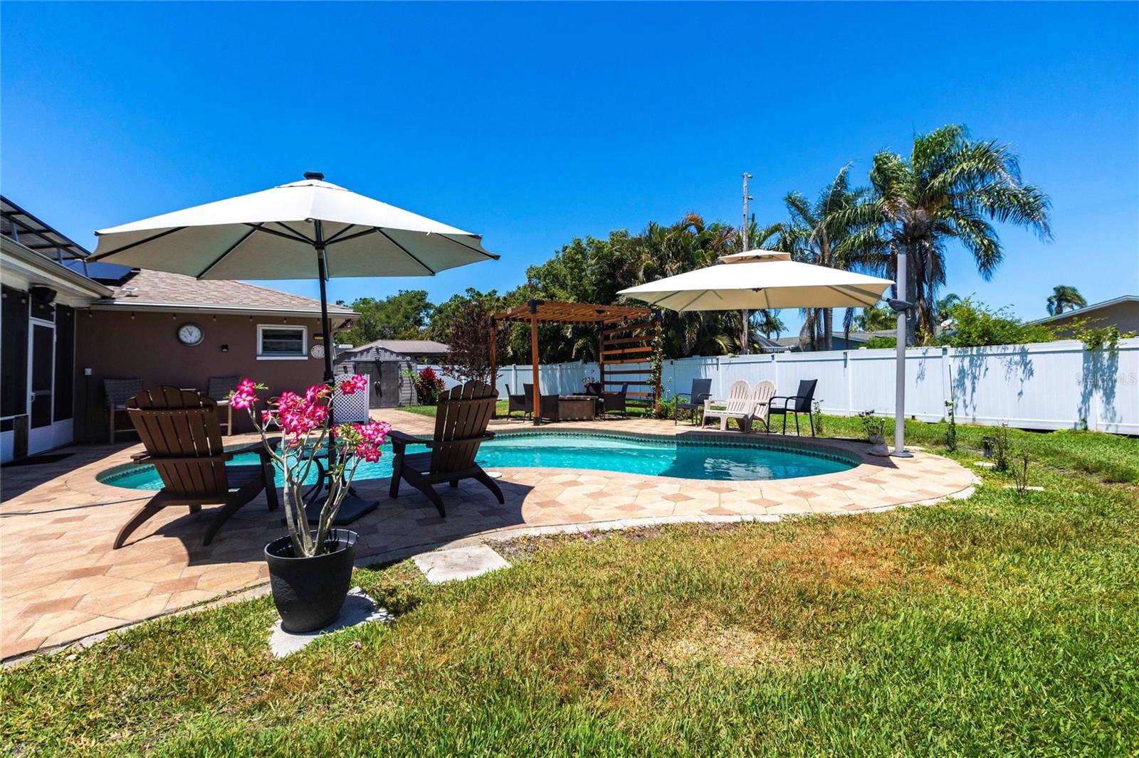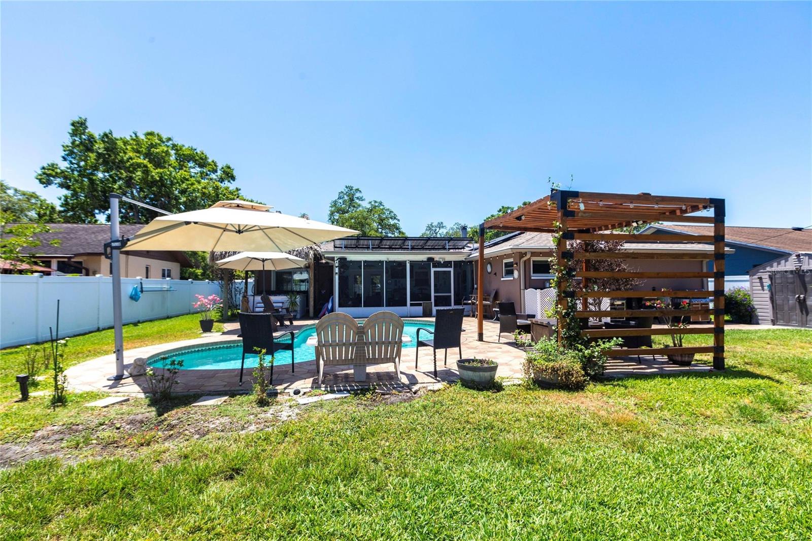Bem-vindo a uma residência lindamente decorada que combina conforto, elegância e vida no estilo resort. Esta casa excepcional de 4 quartos e 2 banheiros oferece 1.719 pés quadrados de espaço interior cuidadosamente projetado e fica em um lote espaçoso, perfeitamente adequado para a vida cotidiana e o inesquecível entretenimento. O layout convidativo da casa apresenta uma sala de família com uma lareira de pedra e queima de madeira. Em toda a casa, o piso de ladrilhos de aparência nova de madeira fornece uma base elegante e durável, enquanto as janelas com eficiência energética permitem uma abundância de luz natural. O coração da casa é a cozinha bem equipada, projetada para agradar o cozinheiro casual e o anfitrião experiente. A suíte primária oferece um retiro pacífico com um armário embutido e fácil acesso ao banheiro atualizado com pias duplas grandes e um grande chuveiro personalizado. Três quartos adicionais oferecem flexibilidade para a família, os hóspedes, um escritório em casa ou um espaço de hobby. O que realmente eleva essa propriedade é sua vida ao ar livre no estilo resort. O lanai traseiro selecionado abre para um oásis de quintal com água salgada, piscina com aquecimento solar e uma banheira de hidromassagem sob uma cabana de tiki personalizada. Esteja você começando a sua manhã com um mergulho, encharcando o spa ou entretendo os amigos à beira da piscina, este espaço ao ar livre oferece uma experiência que poucas casas podem combinar. Uma pérgola de madeira natural possui uma mesa de fogueira de propano e assentos adicionais. O sistema de irrigação manterá seu gramado em ótima forma e utiliza água recuperada para obter eficiência. Os painéis solares são pagos e reduzem a conta de energia para apenas trinta e cinco dólares por mês. Uma fonte de vida inteira o sistema de filtragem de água doméstica acrescenta um toque atencioso de conveniência e qualidade. As calhas da guarda das folhas permitem menos acúmulo e manutenção. Um plugue de gerador e a porta da garagem com classificação de furacões permitem tranquilidade. A cerca com dupla gatada permite estacionamento extra para um pequeno barco ou veículo no pátio lateral. A garagem possui uma geladeira extra para adicionar armazenamento de alimentos. Sem restrições de HOA e meticulosamente mantido, esta residência está pronta para o seu próximo capítulo. Se você procura uma propriedade que oferece mais do que apenas um lugar para morar - que oferece conforto, estilo e verdadeira vida na Flórida - sua pesquisa termina aqui. Não perca a oportunidade de tornar esta casa excepcional a sua.