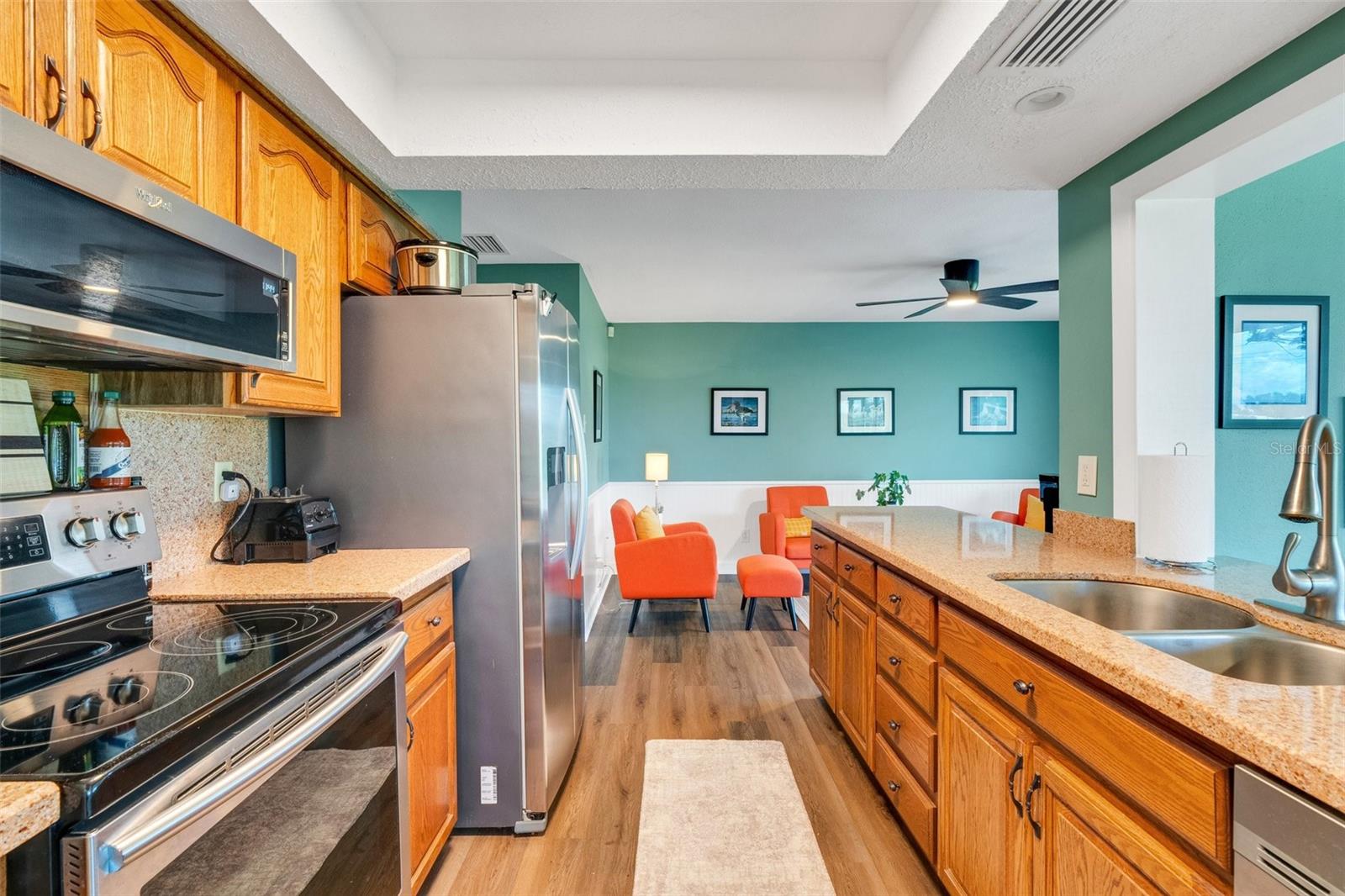 Bem-vindo a esta casa lindamente conservada de 2 quartos e 2 banheiros com uma espaçosa garagem para 2 carros, perfeitamente localizada em The Lakes - uma comunidade tranquila e que aceita animais de estimação com mais de 55 anos, na fronteira com um campo de golfe público de 18 buracos e que oferece uma das taxas HOA mais baixas da área. Um verdadeiro destaque desta casa é a linda marquise com janelas do chão ao teto, preenchendo o espaço com luz natural e proporcionando vistas serenas do seu quintal perfeitamente privado. É o local ideal para relaxar, ler ou desfrutar do café da manhã cercado pelas belezas da Flórida. Observe águias, íbis, garças e muito mais neste lindo quarto. No interior, você encontrará uma cozinha atualizada com bancadas em granito, novos eletrodomésticos em aço inoxidável e elegante piso de LVT (2022). Uma sala bônus iluminada adiciona versatilidade - perfeita para um escritório doméstico, espaço de hobby ou área de estar adicional. Grandes melhorias trazem tranquilidade, incluindo um novo AC (2024) e telhado (2020). A baixa taxa HOA oferece um valor tremendo, cobrindo cabo, internet de alta velocidade, água, cuidado do gramado, irrigação e muito mais. Os residentes desfrutam de uma lista impressionante de comodidades: um clube acolhedor, piscina aquecida, quadras de shuffleboard e acesso próximo ao Freedom Lake Park. E sem a necessidade de seguro contra inundações e com um local fora da zona de evacuação, você pode desfrutar de uma vida tranquila na Flórida o ano todo. Convenientemente situado entre o centro de São Petersburgo e as praias do Golfo, você está a poucos minutos de restaurantes, entretenimento e da costa mundialmente famosa, enquanto desfruta da tranquilidade de um bairro tranquilo e estabelecido. Esta casa realmente combina conforto, conveniência e vida em estilo resort. Venha ver por que a vida no The Lakes é tão especial!
