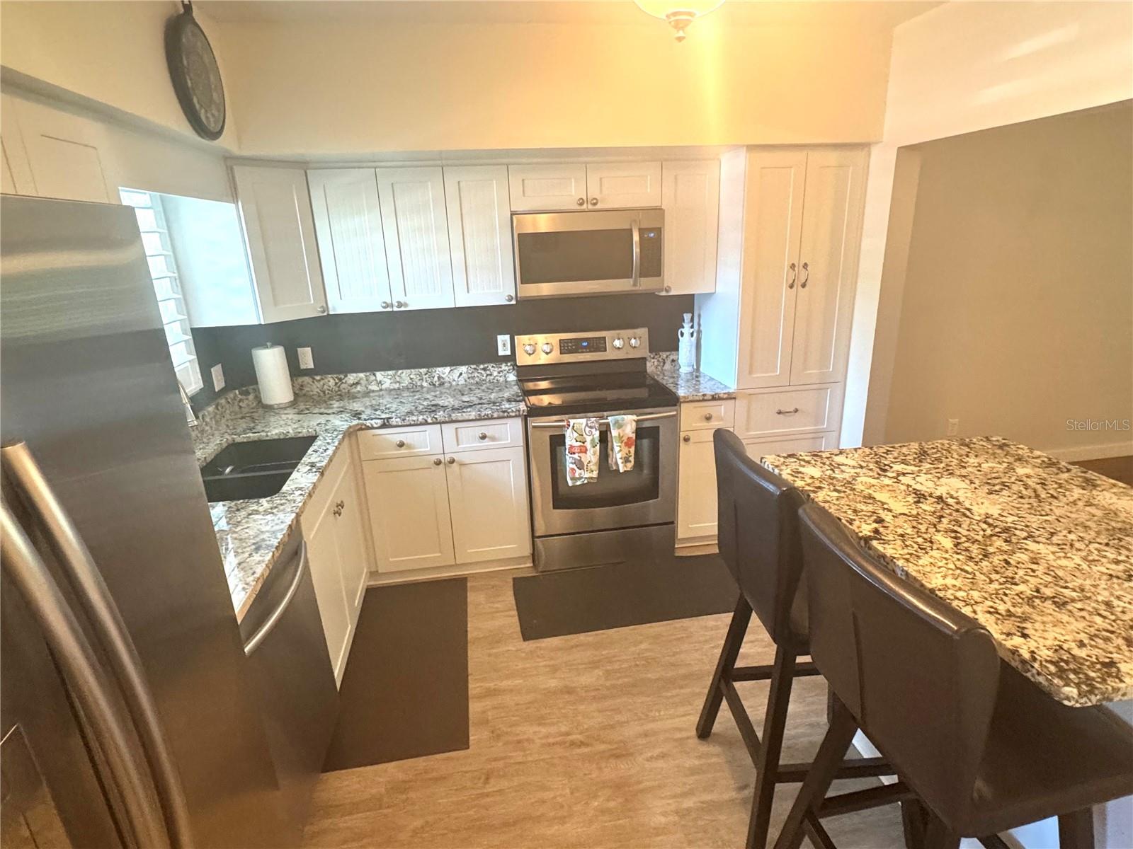 ENORME REDUÇÃO DE PREÇO neste CONDOMÍNIO ALTAMENTE PROCURADO APÓS ATUALIZADO NO TÉRREO DE 1.415 pés quadrados. ATUALIZAÇÕES DE ALTA QUALIDADE da frente para trás. Janelas isoladas com classificação de impacto e persianas de plantação, armários vibratórios de alta qualidade, balcões de granito e eletrodomésticos de aço inoxidável que incluem forno de micro-ondas embutido. Linda e funcional ilha de granito com balcão para café da manhã na cozinha. A cozinha foi aberta para a área de jantar e sala de estar. Há um grande armário de despensa no corredor de entrada. O sistema de ar condicionado foi substituído em 2016. Aproveite a aparência do piso laminado atualizado, raspado à mão, em todas as áreas não molhadas e do luxuoso piso de pranchas de vinil na cozinha e nos banheiros. Atualizações em ambos os banheiros. Enorme quarto principal com muito espaço no armário. Enorme varanda de 10'-26' com grade de alumínio e telhado de painel de alumínio isolado com vista para um espaçoso pátio verde com sombra, semelhante a um parque. A porta atualizada para a varanda integrou persianas internas. Você passará muito tempo lá fora quando não estiver em uma das duas piscinas comunitárias, dois clubes, dois campos de golfe, 175 clubes diferentes, 4 quadras de tênis, academia, academia de ginástica, parque para cães, 2 quadras de ferraduras, 2 quadras de pickleball, 6 quadras de boliche, 8 quadras de shuffleboard e dois lagos para pesca. Não há lugar como o OTOW. O armário de utilidades está conectado a uma secadora de roupas. Uma lavanderia comunitária e um depósito compartilhado ficam no segundo andar, no núcleo do elevador, ao longo da passarela.