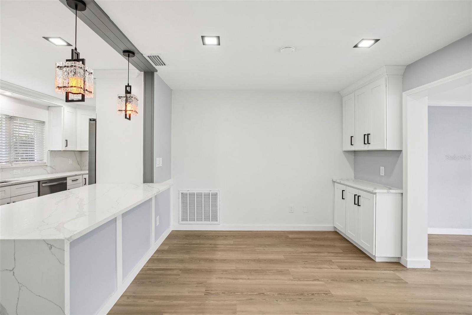 Bem-vindo para casa na 1624 Chateau Drive, uma residência cuidadosamente remodelada de 3 quartos e 3 banheiros, aninhada nas propriedades de Woodridge. Do exterior recém-pintado ao telhado de telha nova, esta casa irradia o estilo e a substância a partir do momento em que você chega. No interior, o layout brilhante e aberto convida a luz natural, criando uma atmosfera acolhedora perfeitamente adequada à vida e entretenimento cotidianas. A espaçosa área de estar é acentuada por painéis de parede elegantes e contemporâneos, usinas personalizadas e utensílios elétricos de grife. A sala é acentuada pela lareira elétrica, criando um ponto focal quente e convidativo. No coração da casa, descubra sua cozinha dos sonhos totalmente remodelada com armários de estilo Shaker, bancadas impressionantes de quartzo com uma borda de cachoeira parada e backsplash de quartzo combinando. Os novos aparelhos de aço inoxidável, incluindo uma faixa elétrica com exaustão, microondas, geladeira e geladeira embutida. O bar seco e o recanto do café adicionam conveniência à sua rotina matinal ou ao hospedar amigos e familiares. Relaxe e recarregue em banheiros inspirados em spa, cada um lindamente remodelado com acessórios modernos, chuveiros de chuva de luxo e gabinetes de vidro sem moldura. Uma garagem conveniente de um carro oferece amplo armazenamento, conexões de lavanderia e uma pia de utilidade, misturando praticidade e conforto. Do lado de fora, o vasto quintal expansivo e totalmente cercado oferece um retiro privado com espaço abundante para reuniões ao ar livre, churrascos de fim de semana e muito espaço para adicionar sua piscina dos sonhos. Situado em uma zona não-e alta e não-de-inundação, você terá paz de espírito enquanto desfruta do sol da Flórida. Posicionado perfeitamente ao lado do cênico Eagle Lake Park, oferecendo trilhas naturais serenas, lagos e espaço verde aberto, e apenas momentos do complexo de recreação das montanhas, compras, restaurantes e inúmeras atividades locais. Este local fornece um estilo de vida incomparável. Além disso, com o Aeroporto Internacional St. Pete-Clearwater a apenas 6 milhas de distância, você está convenientemente conectado a todos os lugares que deseja estar. Com design atencioso, acabamentos sofisticados e um local imbatível, o 1624 Chateau Drive é uma rara oportunidade que você não vai querer perder. Ligue ou envie uma mensagem de texto hoje para agendar sua exibição particular antes de se for!