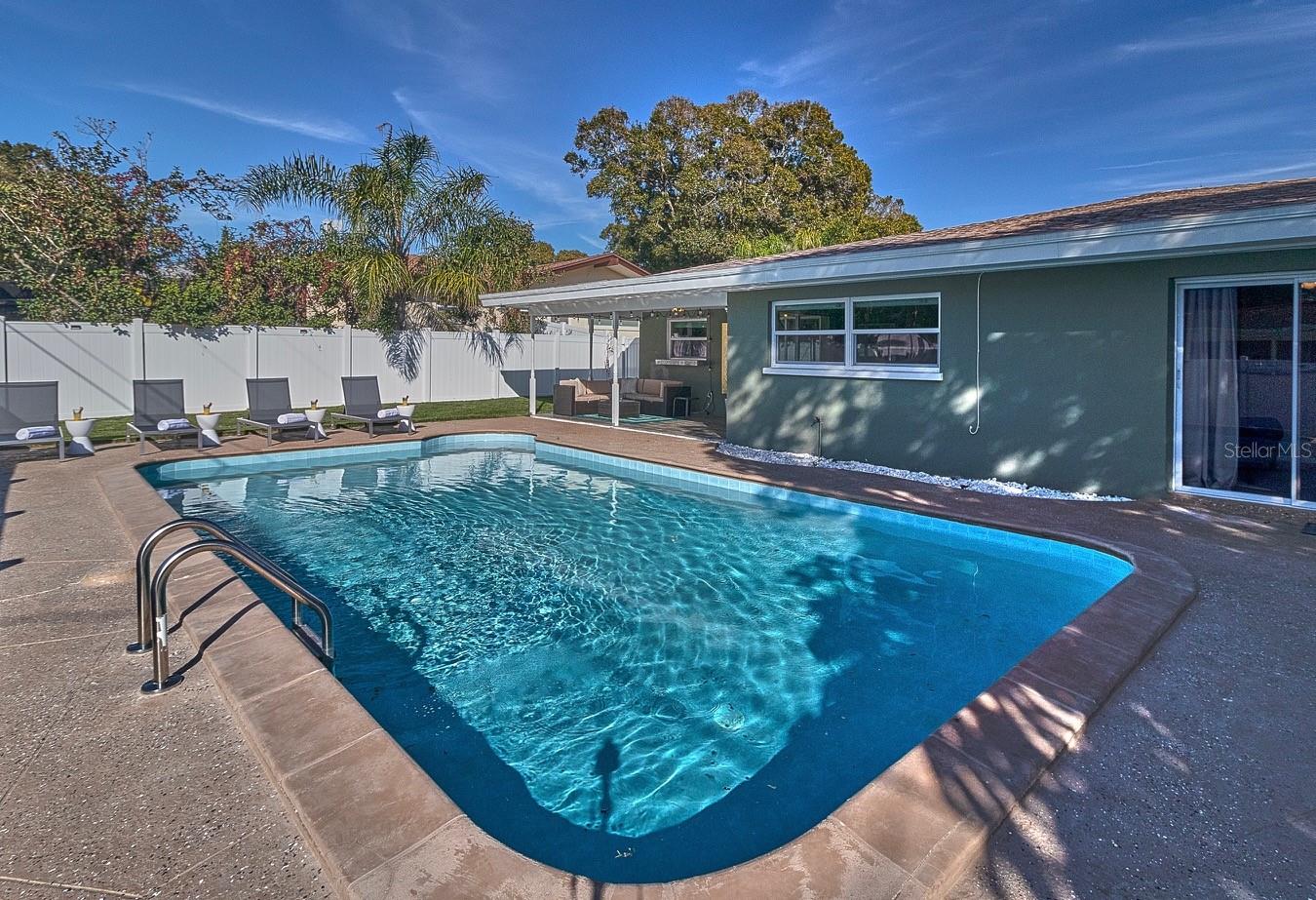 MOVIMENTE-SE PRONTO! MOBILIADO! NOVO EQUIPAMENTO DE PISCINA! Casa remodelada com piscina de água salgada no coração de Clearwater e a uma curta distância de carro de Clearwater Beach! Bem-vindo a esta deslumbrante casa de construção em bloco de 3 quartos e 2 banheiros, 1.336 pés quadrados, total de 2.040 pés quadrados, alta e seca e NÃO em uma zona de inundação, localizada em uma localização privilegiada em Clearwater! Esta propriedade totalmente atualizada oferece tranquilidade e conforto moderno, tudo a poucos minutos da mundialmente famosa Clearwater Beach, do vibrante centro de Clearwater, das lojas, do entretenimento e do aeroporto. Entre em uma planta aberta com muita luz natural e armazenamento generoso por toda parte. A cozinha totalmente remodelada possui armários de madeira maciça, bancadas de granito reluzentes e eletrodomésticos de aço inoxidável - perfeitos para a vida cotidiana e entretenimento. Ambos os banheiros foram elegantemente atualizados, oferecendo um toque elegante e moderno. Aproveite o estilo de vida da Flórida em sua piscina privada aquecida de água salgada, recentemente atualizada com equipamentos de piscina totalmente novos. A área exterior inclui um pátio coberto com luz ambiente, ideal para noites relaxantes ou convívios de fim de semana. Esta casa de construção em bloco sólido e garagem para 2 carros está sendo oferecida totalmente mobiliada e equipada ou sem mobília. Com localização central e fácil acesso a tudo o que Clearwater tem a oferecer. Não perca a chance de possuir esta joia pronta para morar. Agende sua exibição privada hoje mesmo!