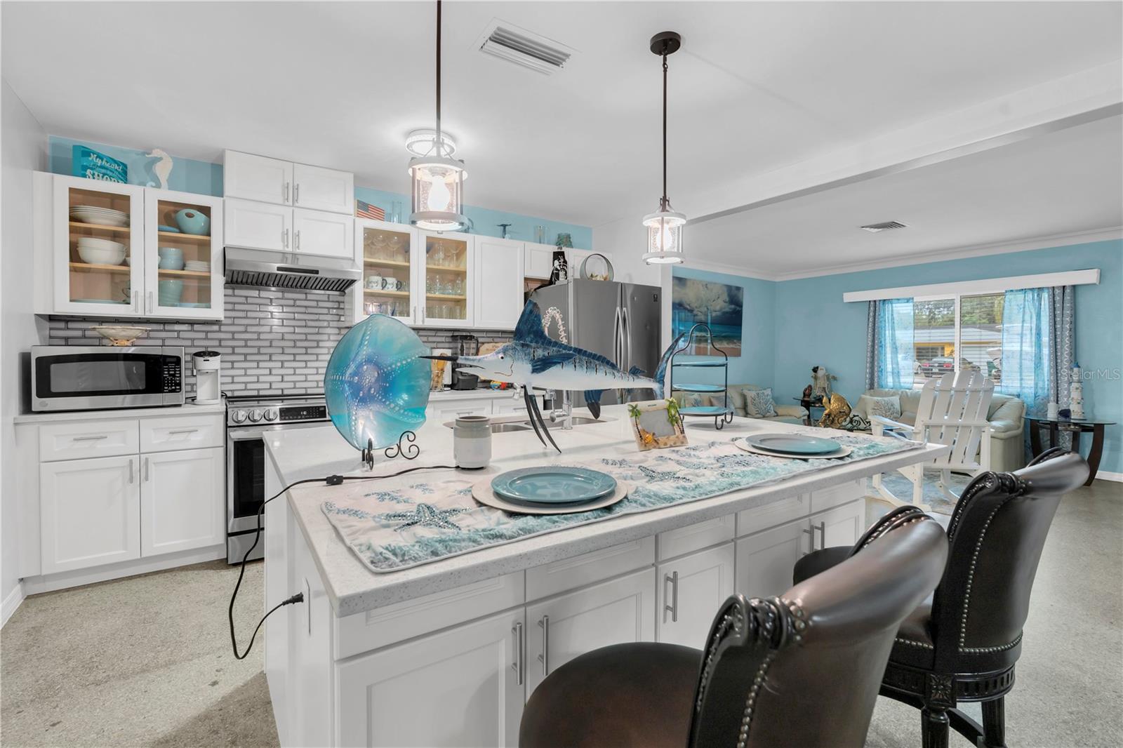 Dê boas-vindas ao seu oásis costeiro nesta casa de 2 quartos e 2 banheiros que combina conforto, estilo e funcionalidade. Entre para encontrar uma espaçosa planta de conceito aberto cheio de luz natural, com uma sala de estar aconchegante e uma sala familiar versátil-perfeita para relaxar ou divertir. A cozinha atualizada é um showstopper com utensílios de aço inoxidável, uma ilha moderna e muito armazenamento, criando o espaço ideal para cozinhar e reunir. Desfrute de Florida que viva o ano todo com não um, mas duas áreas de varanda exibida-uma varanda da frente para cumprimentar os hóspedes e uma varanda relaxante com vista para o amplo quintal. Backyard perfeito para entretenimento, churrasco, jardinagem e muito mais. Destaques adicionais incluem uma garagem de um carro, uma garagem circular com pavimentadores elegantes e uma almofada de concreto que oferece estacionamento extra. Esta casa leve e brilhante tem todos os recursos que os compradores de hoje estão procurando - não perca a chance de torná -lo seu! Janelas e portas AC 2020 2015.
