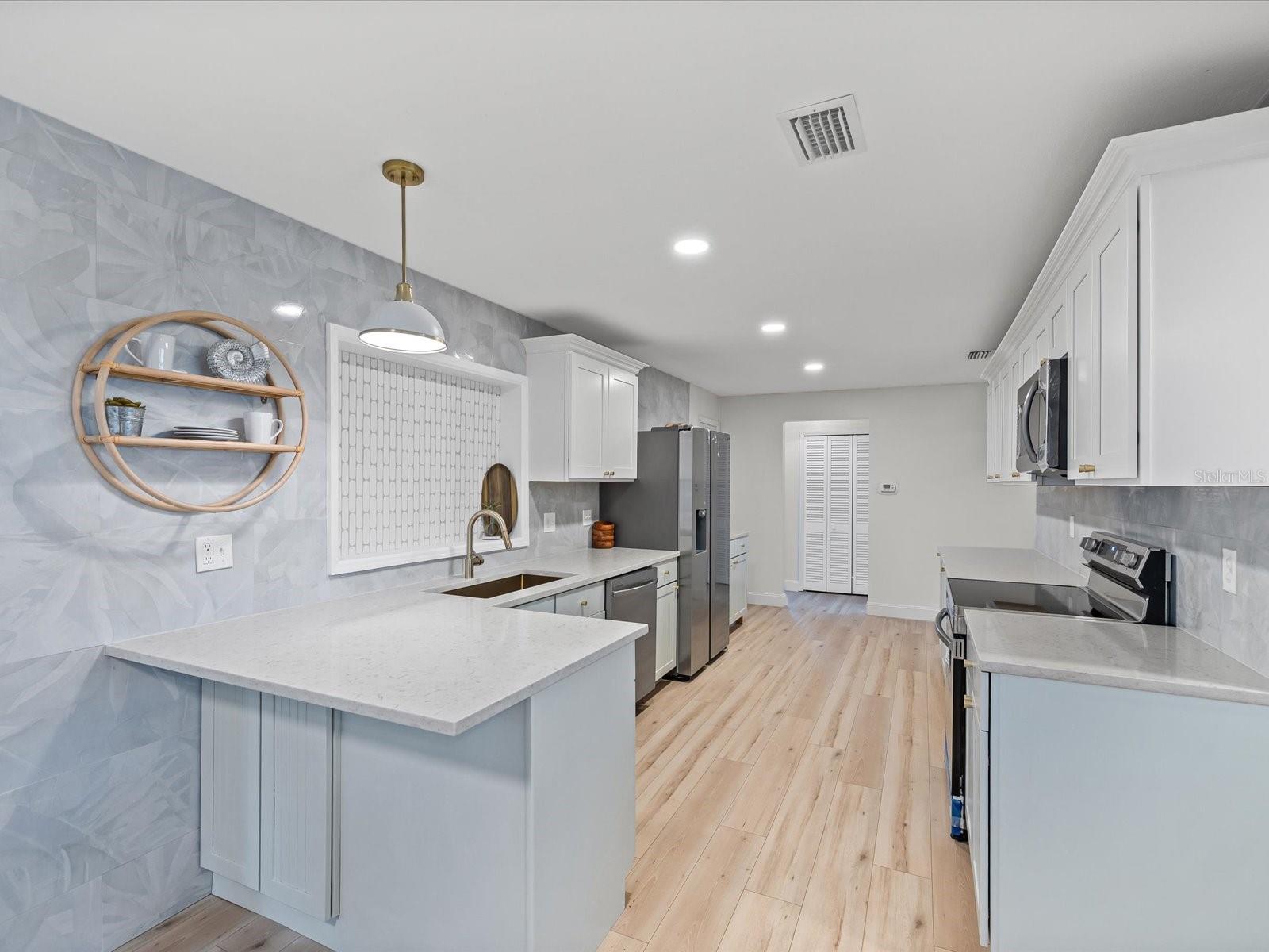 Bem -vindo à sua casa de sonho no coração de Clearwater! Esta residência completamente renovada de 3 quartos e 2 banheiros está localizada no altamente procurado bairro de Imperial Park-a uma curta caminhada até a Plumb Elementary, com classificação A e minutos de praias de renome mundial, melhores restaurantes, compras e grandes aeroportos. O melhor de tudo é que está situado em uma zona não de inundação para maior paz de espírito. Entre para descobrir um piso dividido bem projetado, com duas áreas de estar espaçosas, uma grande área de jantar e um recanto versátil de espaço flexível, ideal para uma área de estudo ou uma barra seca. A casa possui acabamentos modernos impressionantes, incluindo novos pisos à prova d'água e uma cozinha inspirada no chef com bancadas de quartzo, armários personalizados, utensílios de aço inoxidável de última geração e uma pia de fazenda de grife. A suíte primária de grandes dimensões oferece um retiro tranquilo com um grande armário e um luxuoso banheiro privativo completo com vaidades duplas e uma torre de chuveiro de luxo com um chuveiro de chuva e oito jatos de massagem. Acabei de sair da suíte primária, entre no seu deck privado - o local perfeito para café da manhã ou relaxamento tranquilo. Os dois quartos de hóspedes são generosamente de tamanho e compartilham um banheiro lindamente atualizado com uma banheira - ideal para famílias. A segunda área de estar abrange quase 400 pés quadrados, tornando -o perfeito para um escritório em casa, sala de jogos ou mídia. Desfrute de Florida que more ao ar livre com um grande quintal e jardas laterais largas - muito espaço para uma piscina ou expansão futura. Atualizações adicionais incluem novas janelas, encanamento atualizado, dutos mais recentes, iluminação eficiente e um novo aquecedor de água. Imperial Park é uma principal comunidade de Clearwater, conhecida por sua capacidade de localização, vizinhos amigáveis e localização central. Não perca esta rara oportunidade de possuir uma casa pronta para se mudar em um dos bairros mais desejáveis de Clearwater!