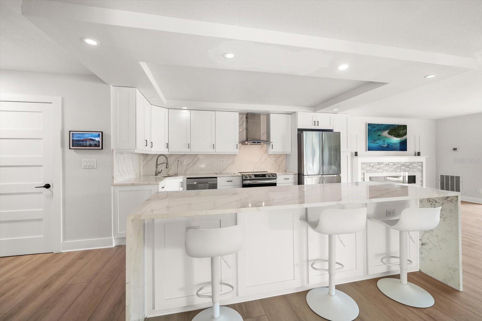 Entre no melhor estilo de vida costeiro nesta residência pronta para morar no Commodore House em Clearwater Point, onde a exuberante paisagem tropical e as comodidades em estilo resort criam uma fuga tranquila à beira-mar. Somando-se ao seu apelo, as taxas de condomínio diminuíram pelo segundo ano consecutivo! Esta unidade segura no primeiro andar fica a poucos passos das areias brancas de Clearwater Beach e recebe você com uma planta aberta e iluminada, tons neutros e belos pisos por toda parte. A deslumbrante cozinha branca foi projetada para impressionar, com uma grande ilha na beira de uma cachoeira, eletrodomésticos de aço inoxidável, refrigeradores duplos para vinho, assentos generosos e acabamentos modernos e elegantes que são ideais para uma vida cotidiana divertida ou descontraída. As salas de jantar e familiares adjacentes são ancoradas por uma lareira linear com embutidos personalizados e detalhes de design refinados. Uma lavanderia cuidadosamente projetada oferece amplos armários e balcão para maior comodidade. A espaçosa suíte principal é um retiro privado, completa com um closet personalizado com embutidos e iluminação, e um banheiro inspirado em spa com pias duplas, banheira de imersão e box amplo separado. Os quartos adicionais são igualmente bem equipados com luz natural abundante, armários personalizados e um luxuoso banheiro compartilhado. Clearwater Point oferece uma verdadeira experiência de resort, incluindo uma praia de areia privativa exclusiva para residentes na Intracoastal Waterway, três piscinas aquecidas, uma área para churrasco à beira-mar e chuveiros ao ar livre. Meticulosamente mantida e gerenciada profissionalmente, esta comunidade coloca você a momentos dos renomados restaurantes, lojas e do icônico pôr do sol do Golfo de Clearwater Beach, proporcionando um estilo de vida excepcional e paz de espírito a longo prazo.