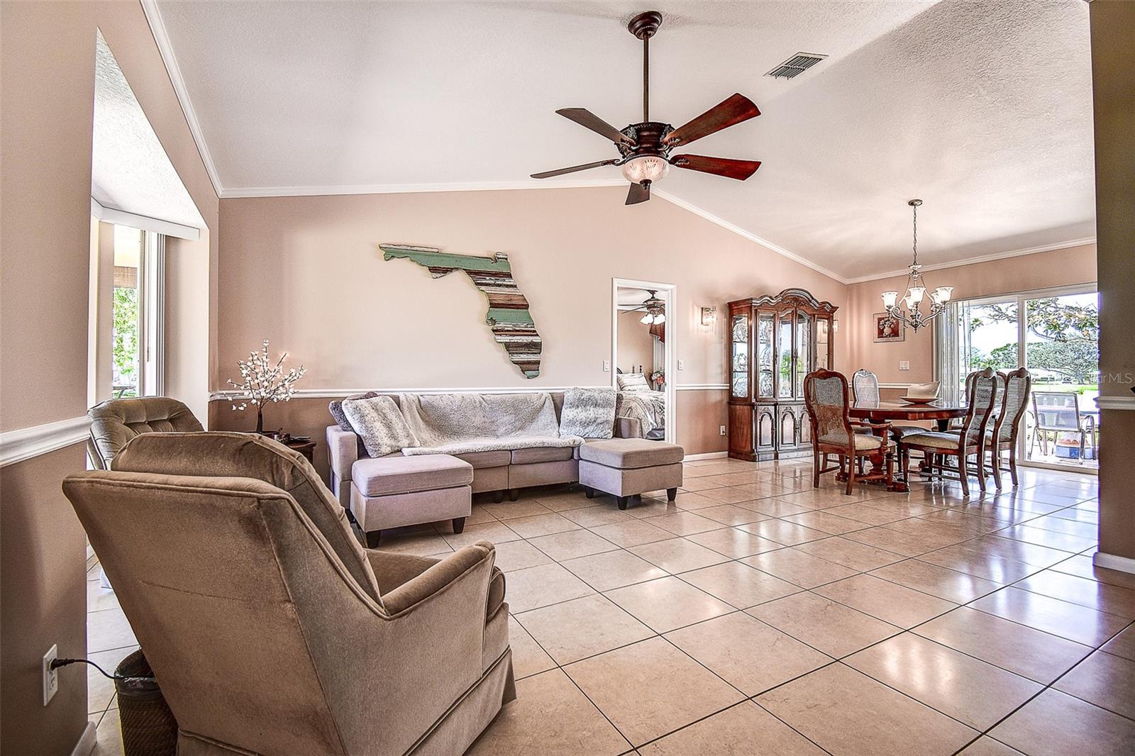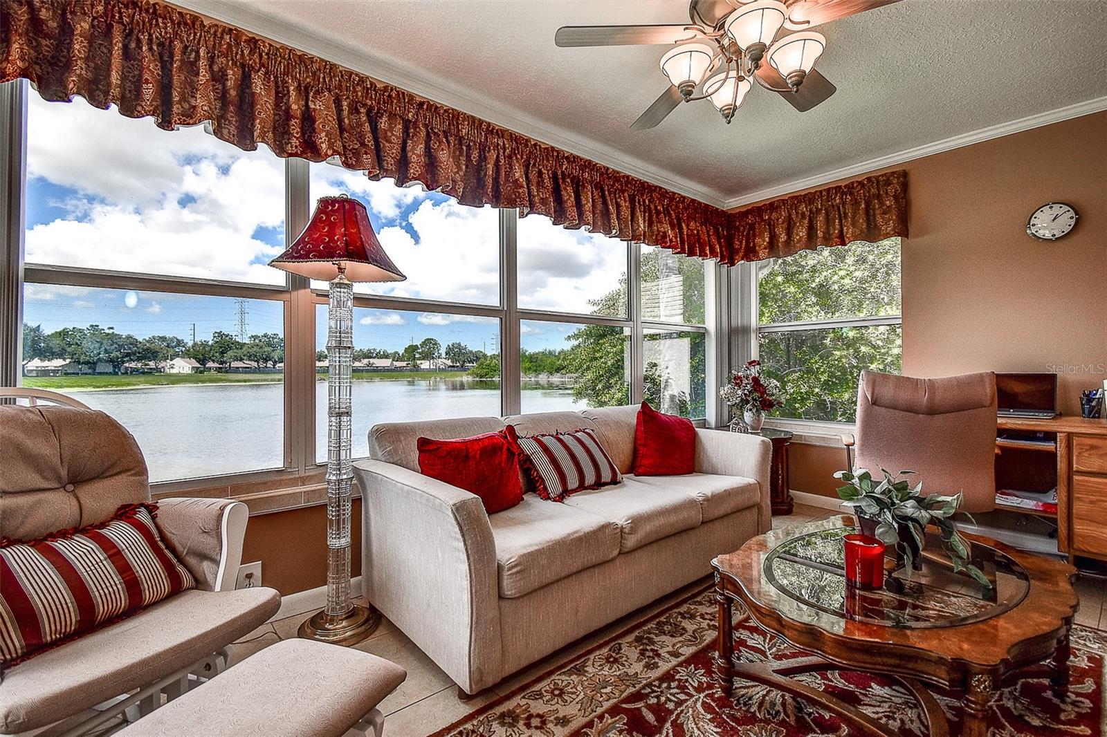 BONITA E ESPAÇOSA VISTA PARA A ÁGUA NOS LAGOS. Entre e você sentirá imediatamente a leveza. Com mais de 1.600 pés quadrados de área útil e tetos abobadados altos, esta casa de dois quartos e dois banheiros exala luz, espaço e fluxo sem esforço. A área de estar e jantar tem aquela energia de conceito aberto, ainda melhor pelas sancas, piso de cerâmica e luz natural filtrada através de janelas de vidro duplo decoradas com elegantes tratamentos de janela. A cozinha está localizada entre a sala de jantar e uma copa separada, grande o suficiente para ser um escritório. Você tem vista para o mar nas áreas de jantar e na sala familiar adjacente, que se abre para o deck traseiro. A suíte principal tem dimensões generosas, closet e banheiro privativo. O segundo quarto e o banheiro do corredor ficam do outro lado da casa, para um layout de quarto dividido. Lavanderia interna com pia. Garagem espaçosa para dois carros com garagem dupla para estacionamento fora da rua. HOA de baixa manutenção $ 163,17/mês oferece piscina, clube, irrigação e manutenção do gramado. Fácil acesso aos aeroportos PIE e TPA. O Telhado é um telhado de 50 anos com 45 anos de vida restantes. O sótão sobre a garagem tem um piso à volta das escadas.