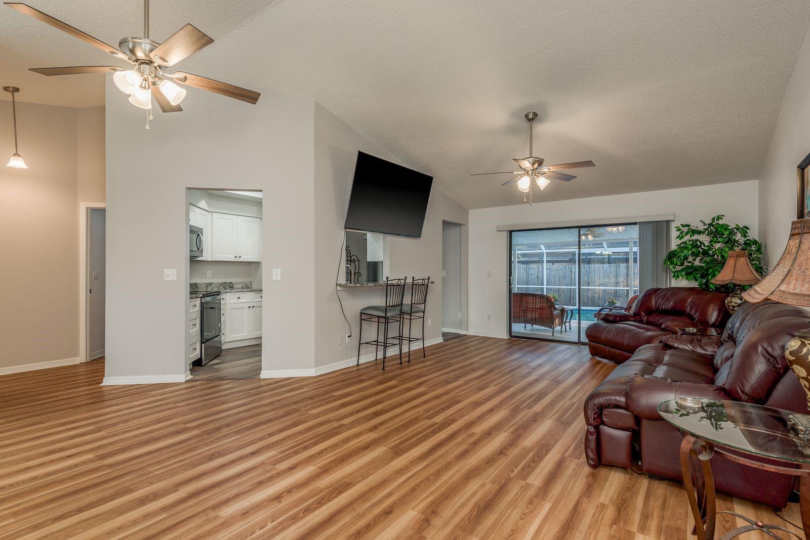 Esta casa lindamente atualizada está pronta e cheia de atualizações recentes que a fazem realmente se destacar. A partir do momento em que você chega, você notará o novo paisagismo e o novo sódulo que são mantidos por um sistema de irrigação completo com seu próprio poço, todos instalados em 2024. Uma entrada de duas portas se abre para a área de estar principal brilhante e arejada, onde tetos abobadados e um layout aberto criam uma atmosfera acolhedora e acolhedora. Da porta da frente, seu olho é atraído diretamente até o Lanai e a piscina espumante. A cozinha moderna foi totalmente renovada em 2024 e inclui um teto de bandeja, iluminação embutida, armários de agitadores brancos, bancadas em granito e utensílios de aço inoxidável. Uma janela de passagem oferece assentos opcionais de bar e conecta a cozinha à área de estar, enquanto um espaço de jantar separado facilita o entretenimento. Várias portas de vidro deslizantes se abrem para o Lanai e a piscina, enchendo a casa com luz natural e misturando vida interior e externa. A grande e espaçosa suíte primária apresenta tetos abobadados, um ventilador de teto para maior conforto e um banheiro da suíte com uma vaidade de pia dupla, bancadas em granito, um chuveiro e um banheiro separado. Os dois quartos de hóspedes são igualmente convidativos com piso laminado, ventiladores de teto e armários embutidos, enquanto o banheiro de hóspedes oferece uma combinação de banheira e chuveiro com atualizações novas. Uma lavanderia interior com armários embutidos adiciona conveniência e armazenamento extra. Saia para o seu próprio oásis de quintal. O Lanai inclui uma área coberta generosa, perfeita para relaxar na sombra, e tem vista para a piscina esportiva fechada da tela que é superficial nas duas extremidades e mais profunda no meio, ideal para brincar e exercícios. Toda a área da piscina foi atualizada em 2024 com um gabinete atualizado e novas telas e uma nova bomba de piscina. Além da piscina, o quintal cercado oferece grama fresca, um galpão de armazenamento útil e muito espaço para desfrutar. Atualizações adicionais concluídas em 2024 incluem nova tinta interior e externa, novos ventiladores e luminárias, todos os plugues, interruptores e placas face, torneiras e vaidades atualizadas, uma porta de garagem com grau de furacão com abertura, porta lateral da garagem e um novo tanque de água quente instalado. Com sua longa lista de atualizações atenciosas, layout espaçoso e fluxo perfeito para fora, esta casa está pronta para o seu próximo capítulo. Agende sua exibição particular hoje!