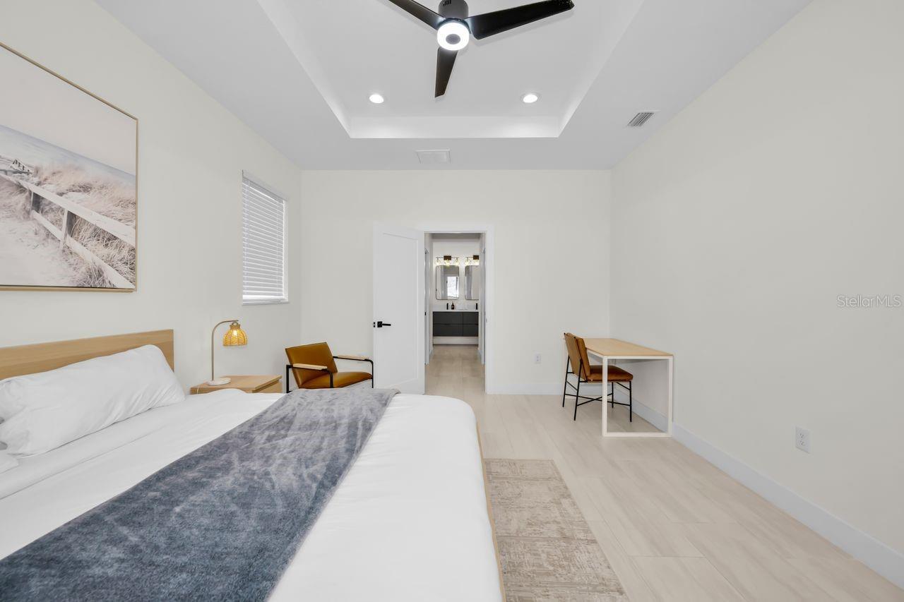 Aproximadamente 1.624 pés quadrados, esta moderna casa de três quartos e dois banheiros apresenta uma entrada convidativa e um design espaçoso, luminoso e minimalista. O layout de conceito aberto permite a entrada de luz natural abundante, criando uma sensação de leveza em toda a casa. O quarto principal oferece um retiro espaçoso e sereno, complementado por um banheiro elegante e moderno com penteadeira e ventilador de teto para maior conforto. Os dois quartos adicionais oferecem amplo espaço e privacidade. A cozinha apresenta um design moderno e de conceito aberto com bancadas de quartzo, eletrodomésticos em aço inoxidável e armários de madeira, criando um espaço coeso e visualmente atraente. Os tetos de 26 pés e o piso de porcelanato contribuem para o ambiente sofisticado e arejado da casa. No exterior, a propriedade dispõe de um amplo quintal e um exterior moderno, proporcionando amplas oportunidades de relaxamento e recreação. Convenientemente localizada a poucos minutos das praias do Golfo, esta casa oferece um cenário ideal para quem procura uma experiência de vida contemporânea e confortável.