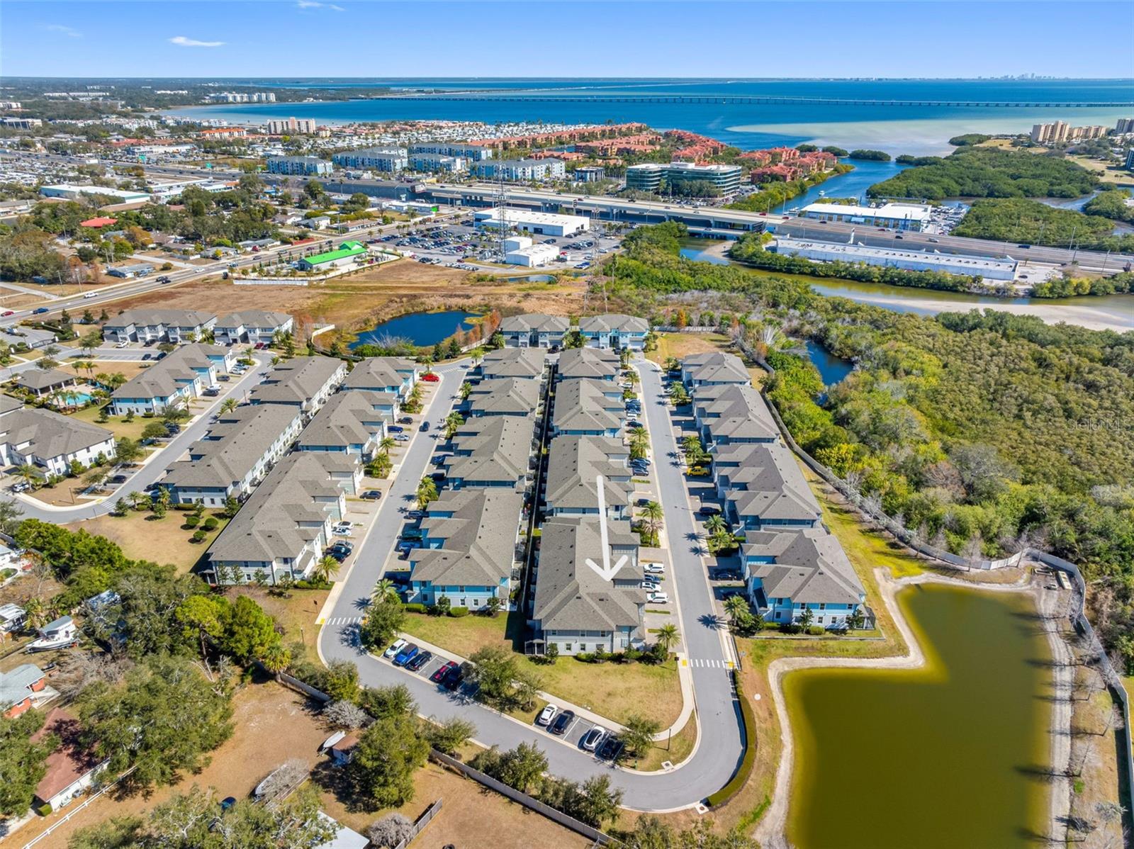 Construída em 2020, esta residência urbana de três quartos e 2,5 banheiros com garagem para um carro está localizada no condomínio fechado de Belleair Grove, em Clearwater. O nível principal de conceito aberto apresenta tetos altos, sancas e luxuoso piso de pranchas de vinil em todas as áreas de estar principais. Persianas estão instaladas em todas as janelas, e um lavabo convenientemente localizado atende o primeiro andar. A cozinha está integrada à área principal de estar e jantar e possui eletrodomésticos de aço inoxidável, bancadas de quartzo e um backsplash contínuo que se estende por toda a cozinha e por toda a ilha, junto com estantes Pottery Barn e uma despensa. Portas deslizantes de vidro se abrem para uma varanda traseira coberta e com tela, ventilador de teto e luminária, proporcionando espaço funcional ao ar livre diretamente fora da área de estar principal. Todos os três quartos e a lavanderia estão localizados no segundo nível. A suíte principal inclui banheiro privativo com pia dupla de quartzo e chuveiro de vidro sem moldura, enquanto o banheiro secundário também possui bancada de quartzo e chuveiro com box de vidro. Os quartos são acarpetados e todos os armários estão equipados com sistemas California Closet. As características adicionais incluem uma máquina de lavar louça recentemente substituída e prateleiras de armazenamento na garagem. As comodidades da comunidade incluem piscina, spa, clube e caixas de correio privadas, com acesso conveniente à US-19 e proximidade de Tampa, São Petersburgo, praias de Clearwater, lojas e restaurantes.