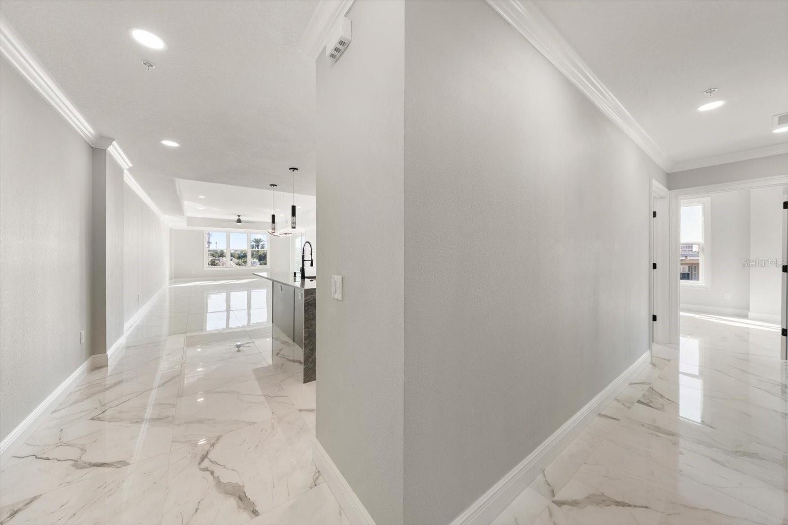 Apresentando La Brisa Del Mar, um condomínio boutique de luxo nas muito procuradas Island Estates de Clearwater, que oferece uma vida costeira moderna e refinada ao longo da Intracoastal Waterway com amplas vistas para o mar. Esta residência de construção pronta para morar em 2024 apresenta vistas deslumbrantes de amplos terraços projetados para uma vida interna e externa perfeita. O interior de conceito aberto apresenta elegante piso de cerâmica e uma cozinha lindamente decorada com bancadas de quartzito, uma ilha generosa e eletrodomésticos de aço inoxidável, ancorando o espaço principal com sofisticação moderna. Oferecendo três quartos e dois banheiros, a suíte principal é um retiro tranquilo com um espaçoso closet e um banheiro inspirado em spa com pias duplas, um vaso sanitário privativo, um box amplo com chuveiro estilo chuva e uma banheira de imersão de canto. Construída sobre 110 estacas e com janelas anti-furacão resistentes a impactos PGT, esta nova construção de qualidade oferece uma tranquilidade excepcional. Cada residência também inclui uma vaga de estacionamento atribuída no subedifício, além de uma vaga adicional não atribuída. Os residentes desfrutam de uma piscina à beira-mar e da rara oportunidade de comprar um barco Intracoastal em águas profundas. Idealmente localizado a poucos minutos de lojas, restaurantes e da mundialmente famosa Clearwater Beach, o La Brisa Del Mar oferece uma vida privada e refinada à beira-mar em um ambiente íntimo. Toda a metragem quadrada anotada foi fornecida pelo construtor.