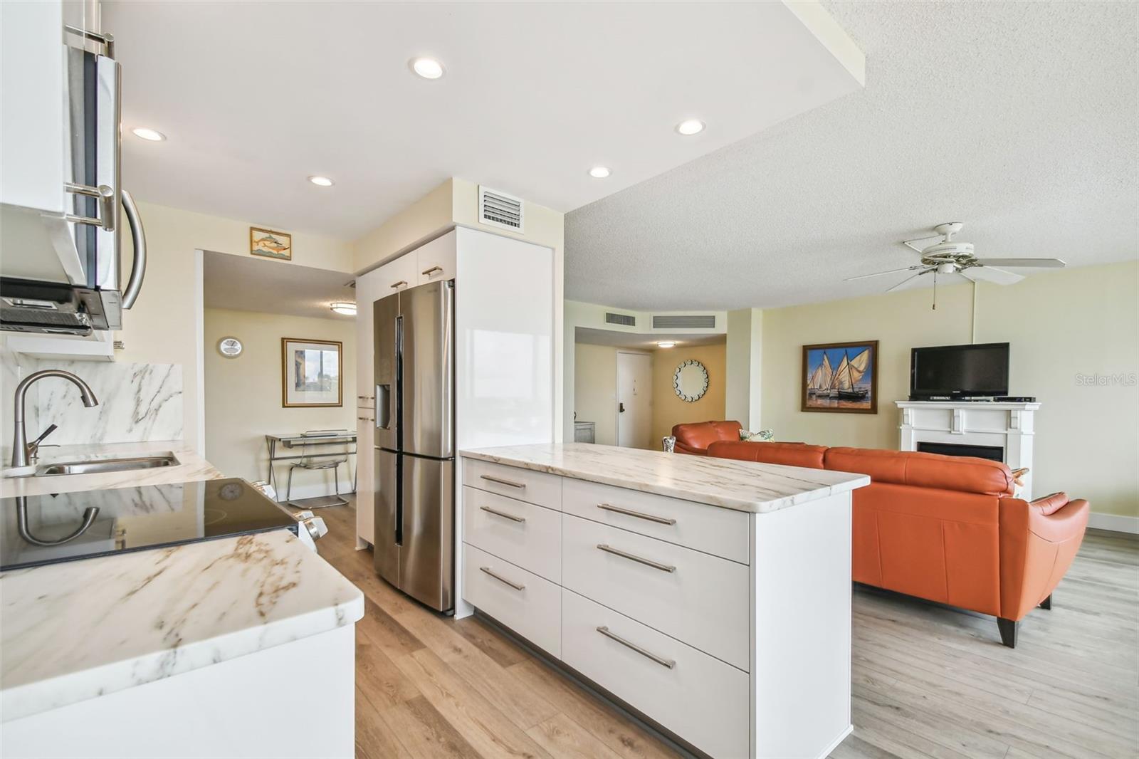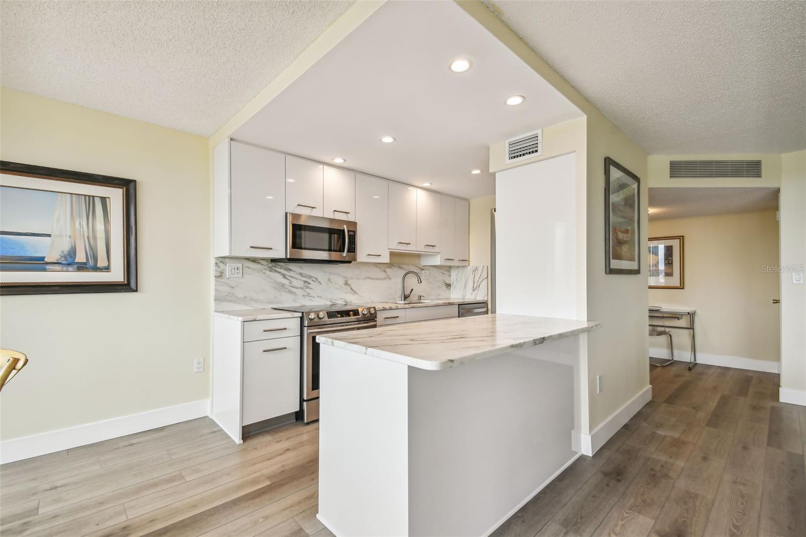Descubra o Condomínio que você estava esperando! Nenhum dano de furacão a este condomínio!!! Pisos novos na sala e na cozinha! Esta unidade com manutenção impecável apresenta NOVAS janelas instaladas em 2022, com janelas Low E com classificação PGT WinGuard IMPACT, vinil e com garantia vitalícia transferível. A cozinha foi reinventada em 2018, com um design moderno que inclui elegantes armários brancos, bancadas de mármore branco e cinza e backsplash combinando. As ferragens do gabinete de aço inoxidável e os eletrodomésticos Samsung adicionam um toque de elegância. Em 2015, os banheiros principal e de hóspedes passaram por uma reforma completa. O interior apresenta piso laminado e pintura fresca por toda parte. Este condomínio totalmente mobiliado está pronto para morar! O edifício oferece quartos espaçosos com grandes janelas, criando um ambiente luminoso e luminoso. Embora não haja varanda, a sala possui janelas do chão ao teto com persianas controladas remotamente. Além disso, a vaga de garagem COBERTA nº 47 faz parte do pacote! Desfrute de uma variedade de comodidades, incluindo uma piscina à beira-mar, docas para barcos (primeiro a chegar aos residentes), um cais de pesca e uma lancha de caiaque com armazenamento. Island Estates oferece uma atmosfera comunitária independente, mas você está a apenas um passeio de Jolley Trolley das vibrantes festividades de Clearwater Beach durante todo o ano. O edifício, construído em blocos, concluiu recentemente um projecto de pintura/envelope. Atualizações adicionais incluem novos elevadores (em breve, um concluído e pré-pago pelo vendedor), atendendo aos critérios exigidos para melhorias valiosas. Island Point permite um aluguel por ano com um limite de nove por vez, exigindo um ano de propriedade, bem como um processo de inscrição e aprovação para inquilinos propostos. O condomínio permite que NOVOS Compradores tenham um gato ou cachorro (com restrições). Novos proprietários podem trazer seu amigo peludo, mas não estão autorizados a substituí-lo. Esta localização é imbatível – a poucos minutos da praia e a uma curta distância a pé de restaurantes, um bar e churrascaria, uma mercearia, UPS, um salão de manicure e o Aquário Marinho de Clearwater. Se você procura uma ótima escapadela em condomínio, a conclusão do seu 1031 Exchange ou uma residência em tempo integral, esta é a oportunidade perfeita! O que você está esperando? Venha Viver o Estilo de Vida, Venha Viver na Ilha!