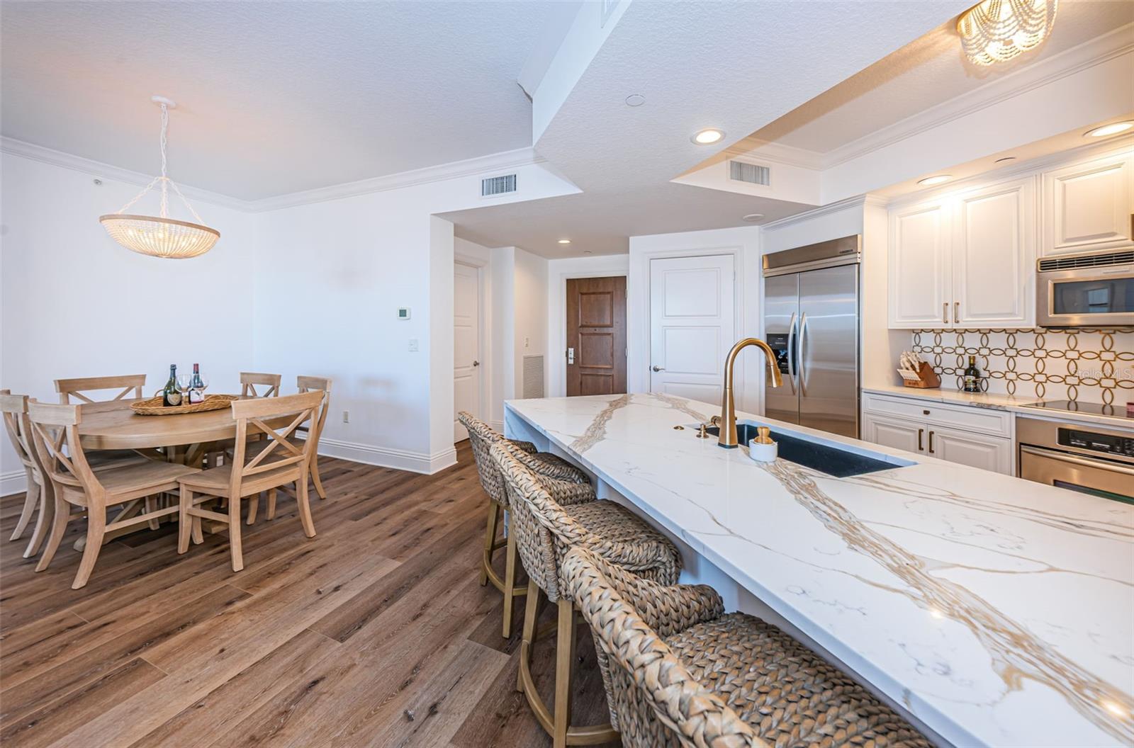 Experimente uma vida luxuosa à beira-mar neste deslumbrante condomínio de 2 quartos, 2 banheiros e 9º andar, localizado dentro do muito procurado Resort “Residences of The Sandpearl”. Delicie-se com as comodidades deste edifício de luxo totalmente reformado, que inclui piscina privativa à beira-mar, cabanas, sala de bilhar, sala de conferências e uma academia de ginástica de última geração. O edifício também dispõe de serviço de concierge 24 horas, garantindo que todas as suas necessidades sejam atendidas com a maior comodidade. Dentro da unidade você encontrará pisos de vinil de luxo recém-renovados, novas bancadas de granito elegantes e eletrodomésticos KitchenAid de aço inoxidável de última geração, verdadeiramente o sonho de um chef! Receba os hóspedes com estilo nas áreas de estar e jantar de conceito aberto, enquanto aprecia a paisagem deslumbrante além das janelas. Saia para a sua varanda privada e desfrute das vistas deslumbrantes do Porto de Clearwater! A localização é incomparável, a poucos passos das praias, de restaurantes renomados e da atmosfera vibrante do Pier 60. Desfrute de eventos musicais no "The Sound" no Coachman Park, adicionando um toque de entretenimento ao seu estilo de vida à beira-mar. Não perca a oportunidade de fazer deste luxuoso condomínio à beira-mar a sua nova casa – onde todos os dias parecem férias e o paraíso está à sua porta.