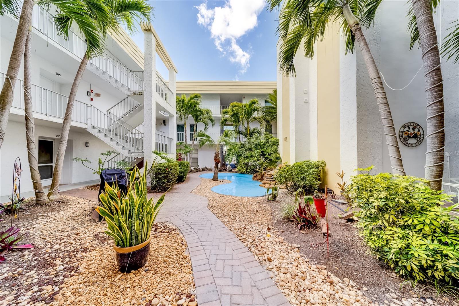 Esta é a sua oportunidade de possuir bem no meio da mundialmente famosa Clearwater Beach! Este condomínio de 2 quartos e 2 banheiros completos está situado entre a Intracoastal Waterway e as praias de areia branca do Golfo. Penthouse Shores é uma comunidade menor de condomínios, com esta unidade no primeiro andar para fácil acesso, incluindo uma entrada da sala Florida para o jardim externo do pátio fechado. Também é fornecida uma grande piscina com deck, pátio à sombra de palmeiras completo com churrasqueira para os churrascos de verão! Dentro do condomínio há uma planta aberta para uma área de estar/jantar e cozinha dedicada com balcão aberto para café da manhã. Fluindo da área de jantar com portas de vidro deslizantes está a sala aberta da Flórida, iluminada e iluminada, com muitas janelas que dão vista para o jardim do pátio privado. Ambos os banheiros foram atualizados, com o banheiro principal oferecendo um vaso sanitário e banheira separados da pia e da área do armário. Do lado de fora, você será recebido com uma adorável brisa cruzada tanto do Intracoastal do leste quanto do Golfo do oeste, e a poucos passos de tudo o que Clearwater Beach tem a oferecer!