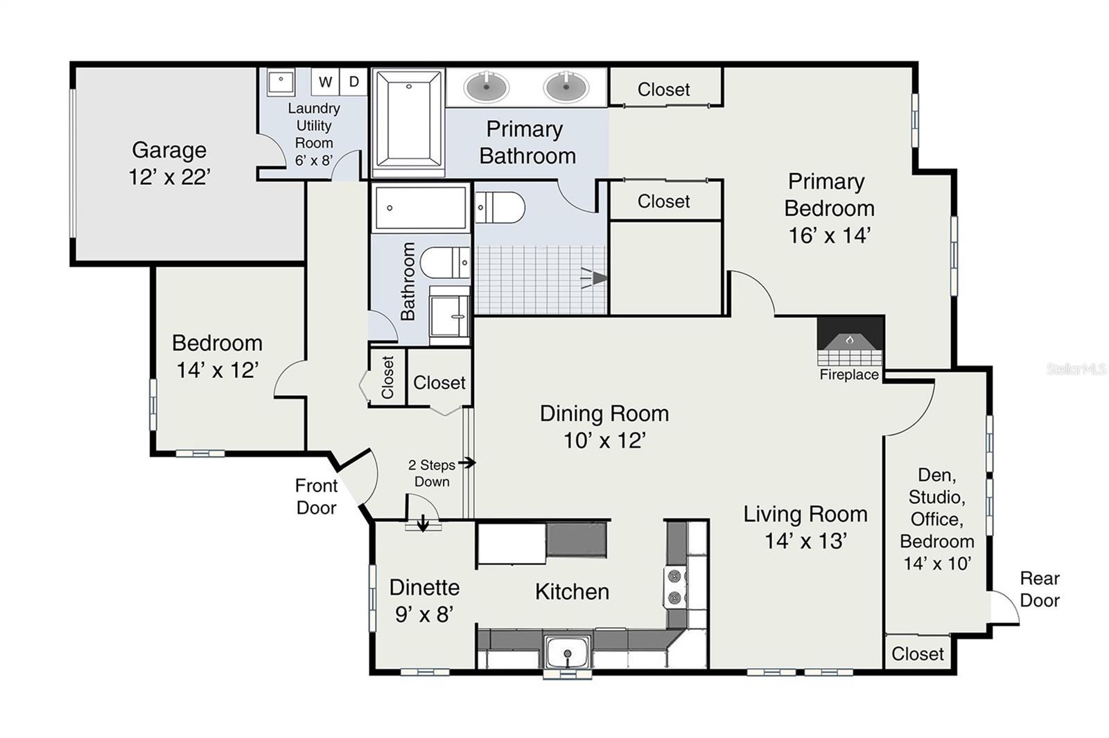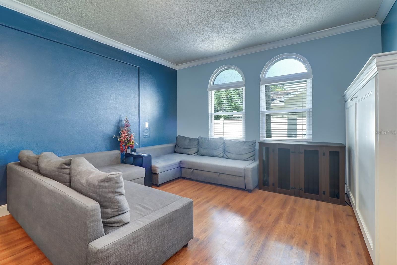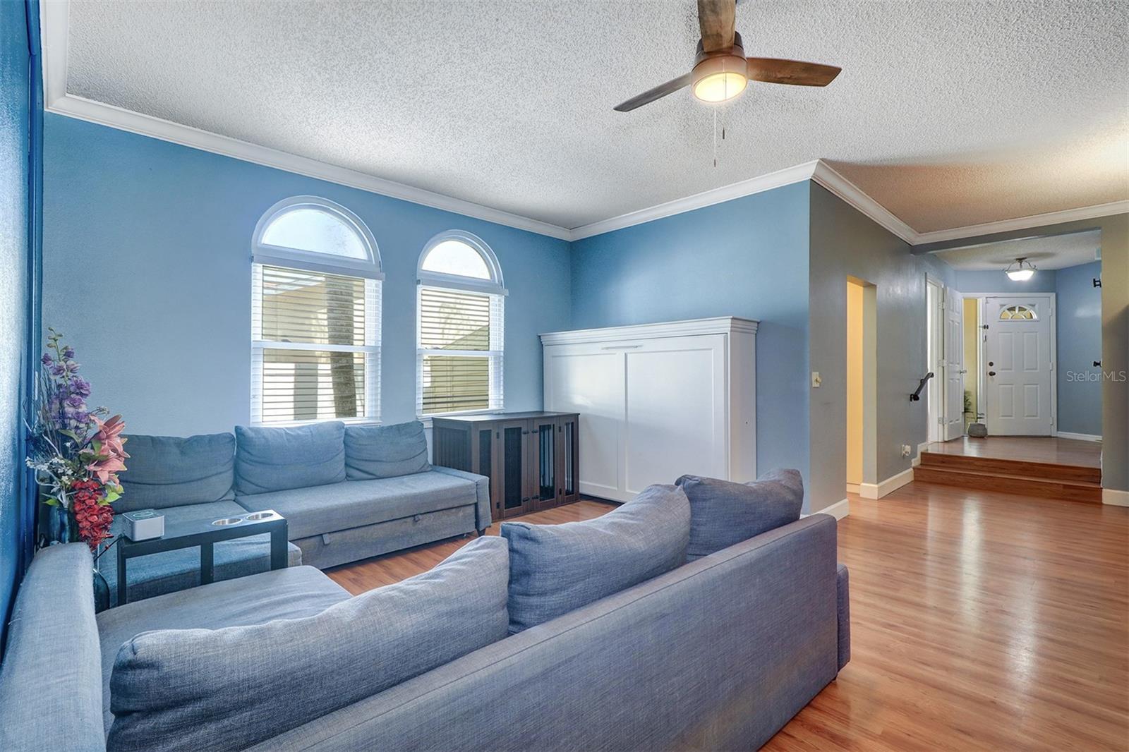 Villa de esquina rara situada na comunidade residencial unifamiliar do campo Pines, com apenas seis vilas/moradias nesta área de Clearwater, na Flórida. Esta planta baixa e clara da villa aberta apresenta 2 quartos e 2 banheiros e "uma conversão de Lanai permitida em uma área/estudo/escritório/escritório/escritório ou 3º quarto aquecido e resfriado com janelas de impacto de furacão e porta externa, piso de armário e laminado" e pequena área retangular de pátio traseiro com uma garagem anexada. Três vias divididas de áreas primárias, segundo e den/estudo/escritório/3º quartos. Veja a planta atribuída como foto 26 para todo o layout da vila. O Double Wide Entry Hall tem dois armários e leva à sala de jantar e à sala de estar, com lareira a lenha canto com lareira, manto de vidro e pilha espelhada do manto ao teto; Dineta e/ou áreas de cozinha ou deixado no corredor para o segundo quarto, segundo banheiro completo, utilidade e garagem. O quarto primário é 16x14 com armários de parede dupla, piso de chuveiro e azulejos atualizados, vaidades duplas e banheira de jacuzzi de jardim. O segundo quarto fica a 14 x 12 em frente à segunda banheira completa totalmente reformada, com combinação de banheira/chuveiro, vaidade única e válvulas. A sala de serviços públicos interna construiu armários com arruela de tamanho grande e conexão do secador e pia de imersão profunda. Área retangular de pátio traseiro e unidade de armazenamento na lateral da casa. Licenças para o novo HVAC em 2017; New Impact Hurricane Windows and Doors junho de 2018; novo telhado em janeiro de 2019; Conversão de Lanai em 3º quarto/escritório/den/escane/estudo em fevereiro de 2022 e atualização elétrica em 2023. Associação pavimentou a rua Manuten Private em dezembro de 2022. Todos os tamanhos de quartos são aproximados. Perto de compras, restaurantes e áreas de praia de Clearwater a Tarpon Springs.