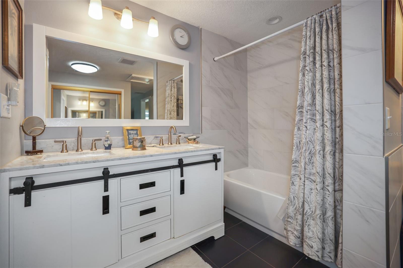 Esta casa totalmente renovada com duas suítes master é uma impermeabilização e um achado raro em um bairro desejável de Clearwater, perto de praias, aeroportos, escolas excelentemente classificadas, compras e rodovias. Possui uma planta baixa que pode funcionar facilmente para uma família em crescimento ou uma multi-generacional. Os quartos são grandes, com muito armazenamento, quartos divididos para privacidade e uma sala de família e sala de estar para que os espaços se reúnam ou separadamente. Existem três banheiros completos (um dos quais possui uma banheira de spa jato e chuveiro separado) e um meio banho adicional ao lado da garagem. O quarto principal tem um banheiro espaçoso com armários duplos e um controle deslizante na varanda dos fundos e no quintal totalmente cercado. O outro lado da casa contém um quarto grande com um banheiro privativo e um quarto menor nas proximidades de outro banheiro completo e uma grande família/sala de TV. Os dois lados da casa poderiam servir como uma suíte sogra ou para membros da família que desejam ou precisam de seu próprio espaço. A cozinha do cozinheiro possui madeira, armários de perto, bancadas de granito, eletrodomésticos e uma barra de café da manhã. A área de jantar adjacente tem espaço para uma mesa familiar com acesso à varanda, que pode ser convertida e ar condicionada para mais espaço para estar o ano todo. Todos os banheiros estão totalmente ladrilhos com equipamentos mais recentes. Uma grande lavanderia contém conexões para dois conjuntos de máquinas (um conjunto transmitirá com a venda) ou um pia de utilidade pode ser instalado onde uma segunda lavadora está localizada. Todas as janelas são mais novas e duplas, e um sistema de calha sem costura foi instalado. A cerca é nova e envolve totalmente o quintal, com um grande portão ao lado da casa para um barco, caiaque ou armazenamento de carrinho de golfe. O quintal foi instalado e os tubos de drenagem subterrâneos foram instalados para que a água seja direcionada para longe da casa. O telhado e o aquecedor de água são 2019 e o sistema HVAC é 2017. Durante as reformas, grande parte da casa foi reconectada e a nova dutos instalados em muitas áreas. Todo o trabalho está de acordo com o código e uma inspeção limpa de 4 pontos foi obtida. O paisagismo é arrumado e maduro, sem membros de árvores pendurados no telhado. Câmeras de segurança e uma campainha de anel estão incluídas. Você realmente precisa ver esta bela casa comunitária no HOA pessoalmente para apreciar a beleza e a conveniência de sua localização. Não perca a sua próxima casa!