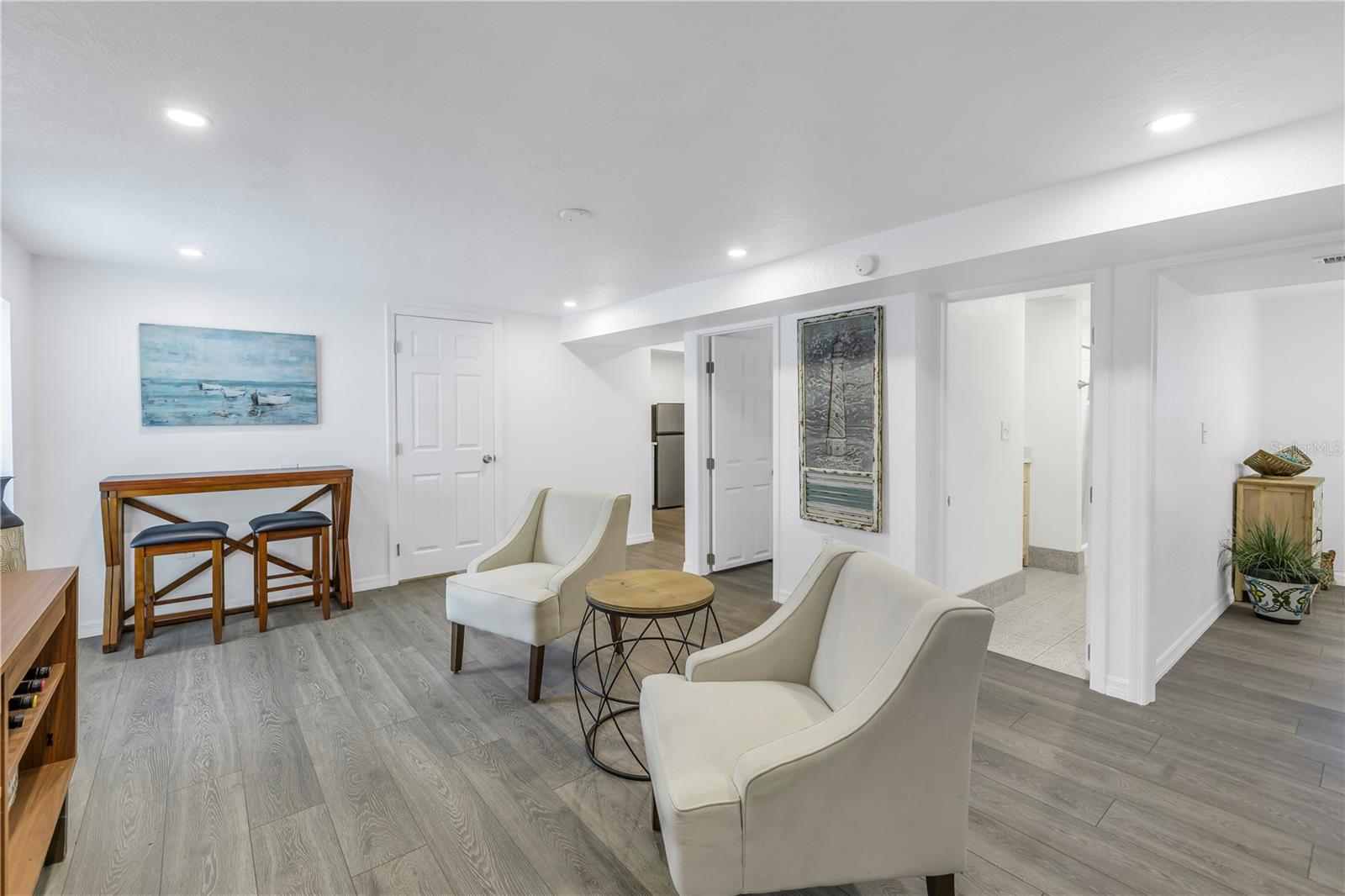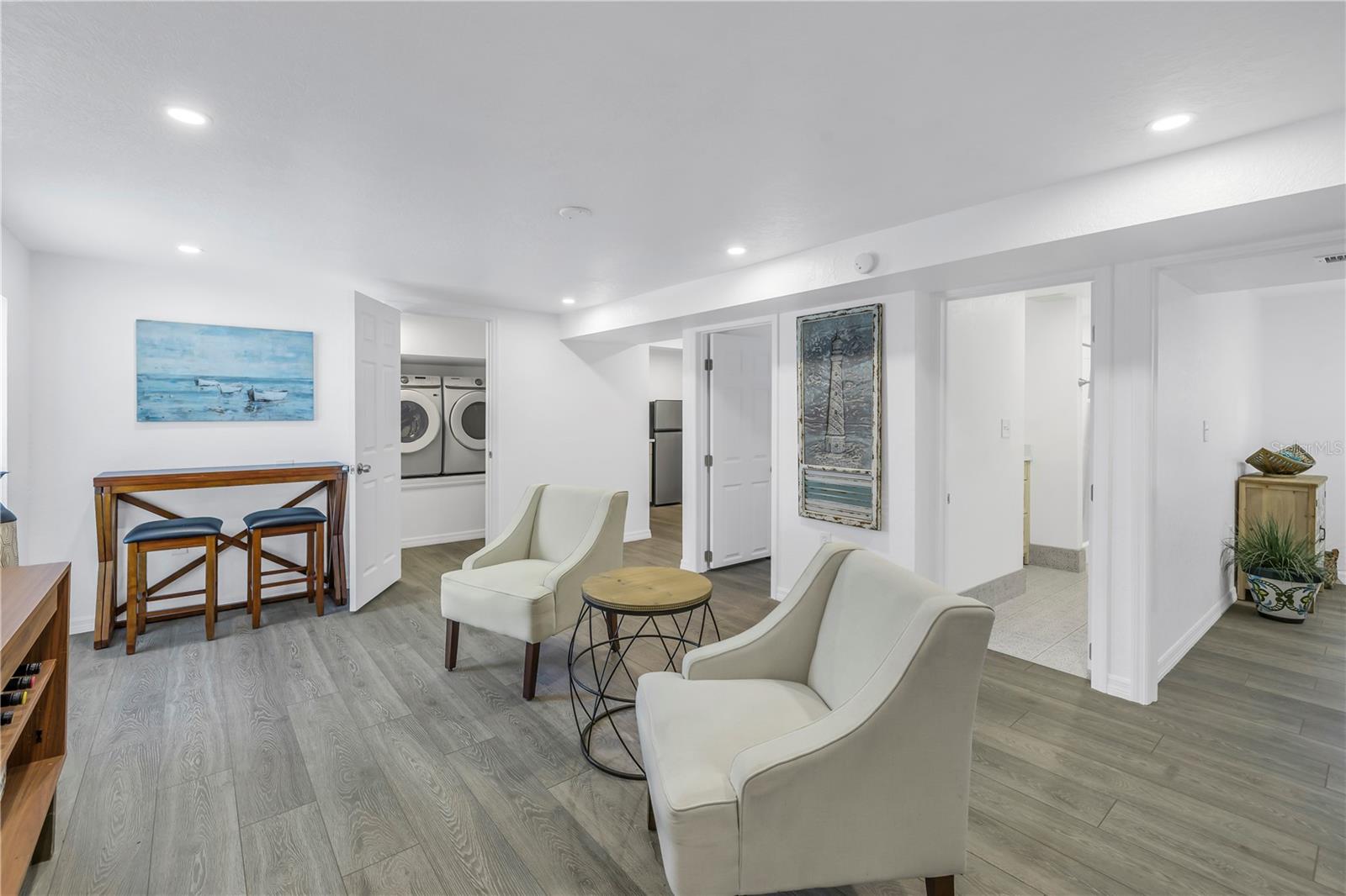 Esta deslumbrante casa de três andares totalmente renovada em Pinellas Groves é perfeita para uma família multigeracional. O espaçoso quintal oferece amplo espaço para adicionar uma piscina, criar uma área de recreação para crianças e animais de estimação ou estacionar seu trailer ou barco. Com três varandas, todos podem desfrutar da sua privacidade. Esta casa foi meticulosamente atualizada com novo piso, telhado, pintura interna e externa, eletrodomésticos, lavadoras e secadoras, eletricidade, encanamento, unidades HVAC para cada andar, portas de garagem, janelas e portas de impacto de furacão e portas de quarto de núcleo sólido. Projetado para oferecer flexibilidade, cada andar funciona como um espaço independente. O primeiro andar dispõe de entrada traseira independente, pátio, dois quartos, uma casa de banho, cozinha completa com electrodomésticos em aço inoxidável e bancadas em quartzo, sala de estar, ampla lavandaria com arrumação e acesso à ampla garagem para dois carros. O segundo andar possui uma espaçosa varanda frontal com piso de teca, dois quartos, dois banheiros, cozinha com área para refeições, bancadas de quartzo, eletrodomésticos de aço inoxidável, armários novos, área de jantar formal, sala de estar e lavanderia. O quarto principal inclui um grande closet com prateleiras embutidas e banheiro privativo. A varanda dos fundos oferece vista para o quintal cercado e uma escada em espiral que leva ao retiro do terceiro andar, que possui tetos abobadados, varanda frontal, banheiro completo, área de cozinha e amplo espaço para relaxar. Relaxe nos balanços da varanda privada e desfrute de uma brisa tropical fresca. Recursos adicionais incluem um novo telhado (2023), unidades HVAC (2022), janelas e portas de impacto (2022) e uma garantia transferível contra cupins (2023). O lote extra largo e a entrada de automóveis facilitam o armazenamento de seu trailer, barco ou outros brinquedos. Localizada perto de praias premiadas, dos aeroportos internacionais de St. Pete e Tampa, restaurantes, entretenimento e compras, esta propriedade realmente tem tudo!