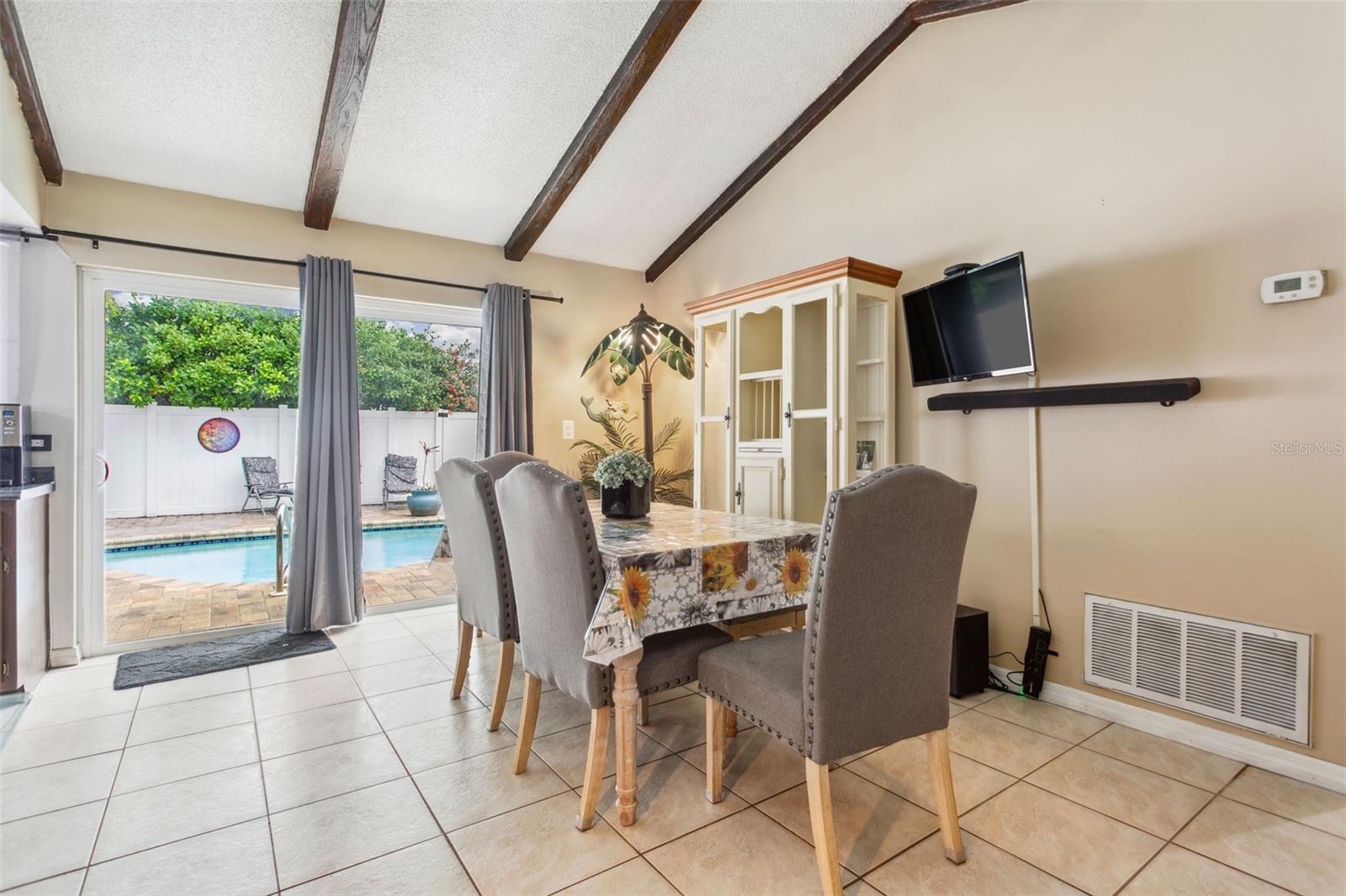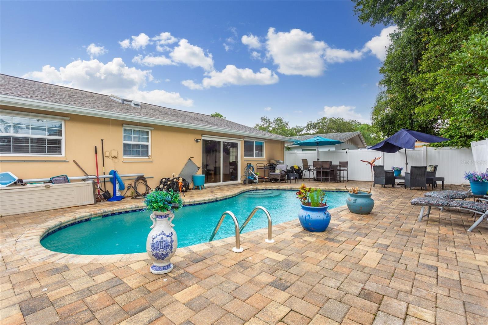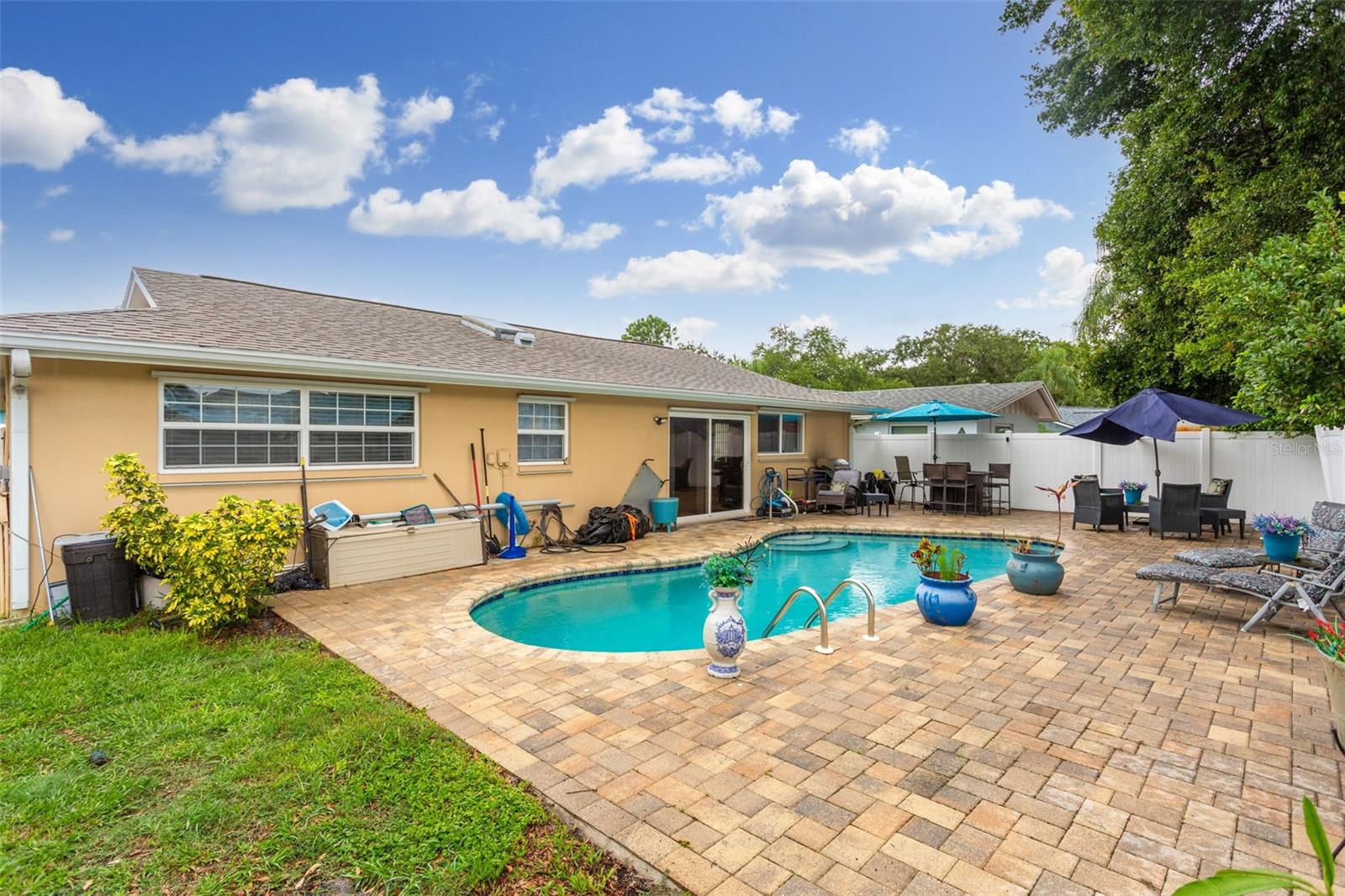 Descubra esta encantadora casa de 3 quartos e 2 banheiros completos, perfeitamente situada perto do Countryside Mall e a poucos minutos do centro de Dunedin, Safety Harbor, da mundialmente famosa Clearwater Beach e da Honeymoon Island. A propriedade possui tetos abobadados e uma piscina de água salgada cintilante cercada por pavimentos elegantes, criando um oásis sereno ao ar livre. As atualizações recentes incluem um novo sistema HVAC e telhado em 2016, um novo aquecedor de água quente em 2024 e novas janelas de painel duplo com persianas anti-furacão. A casa também possui uma nova porta de garagem resistente a furacões, garantindo tranquilidade durante a temporada de tempestades. Localizado perto do vibrante Woodgate Park, você terá acesso a quadras iluminadas de tênis e basquete, playground, abrigos e campo de beisebol. Esta casa oferece uma combinação perfeita de comodidades modernas e acesso conveniente às atrações locais. Não perca esta oportunidade excepcional de torná-lo seu!