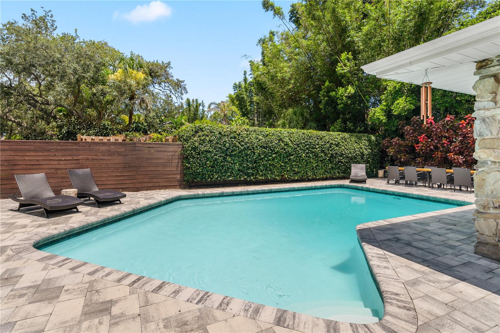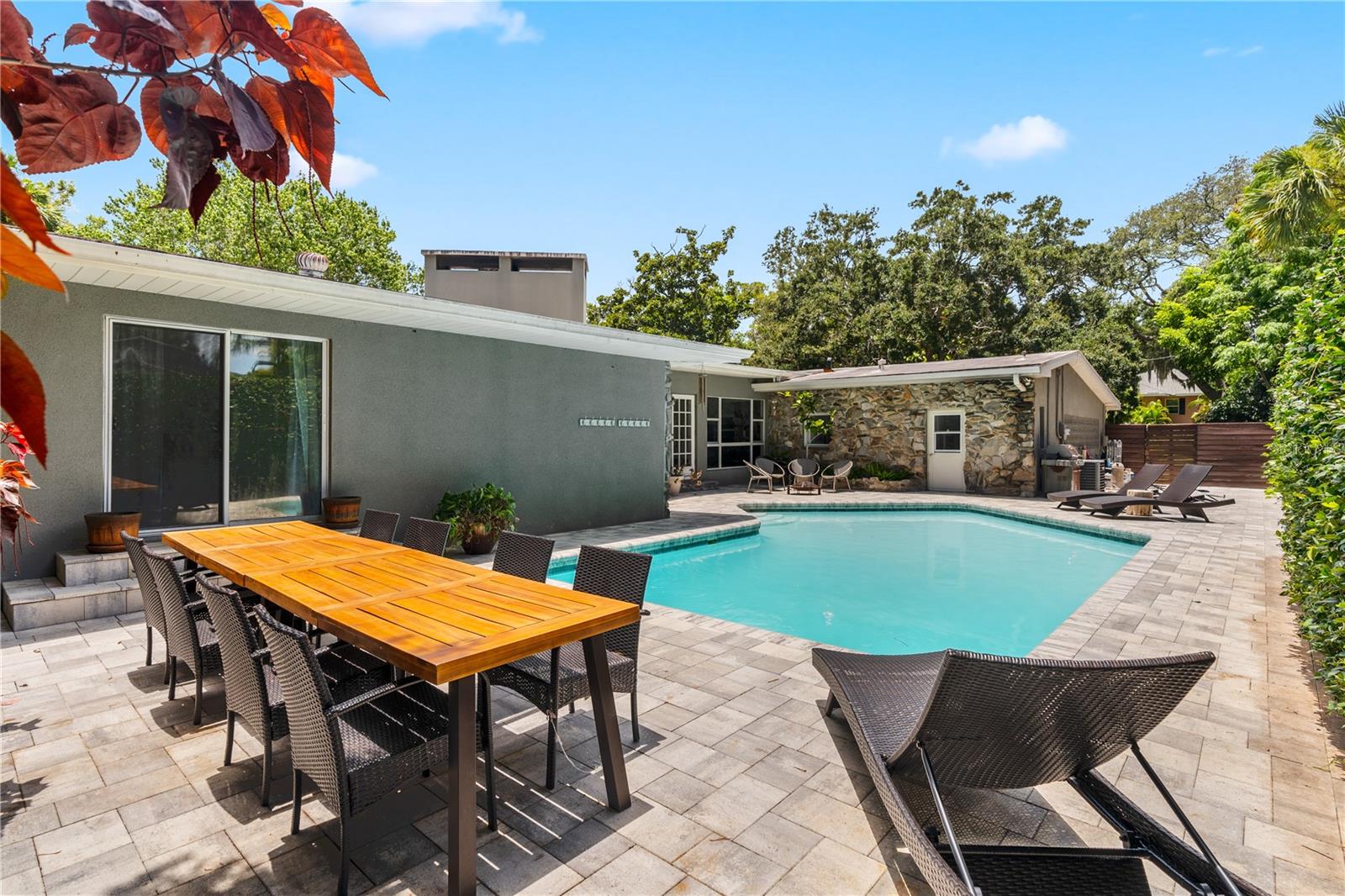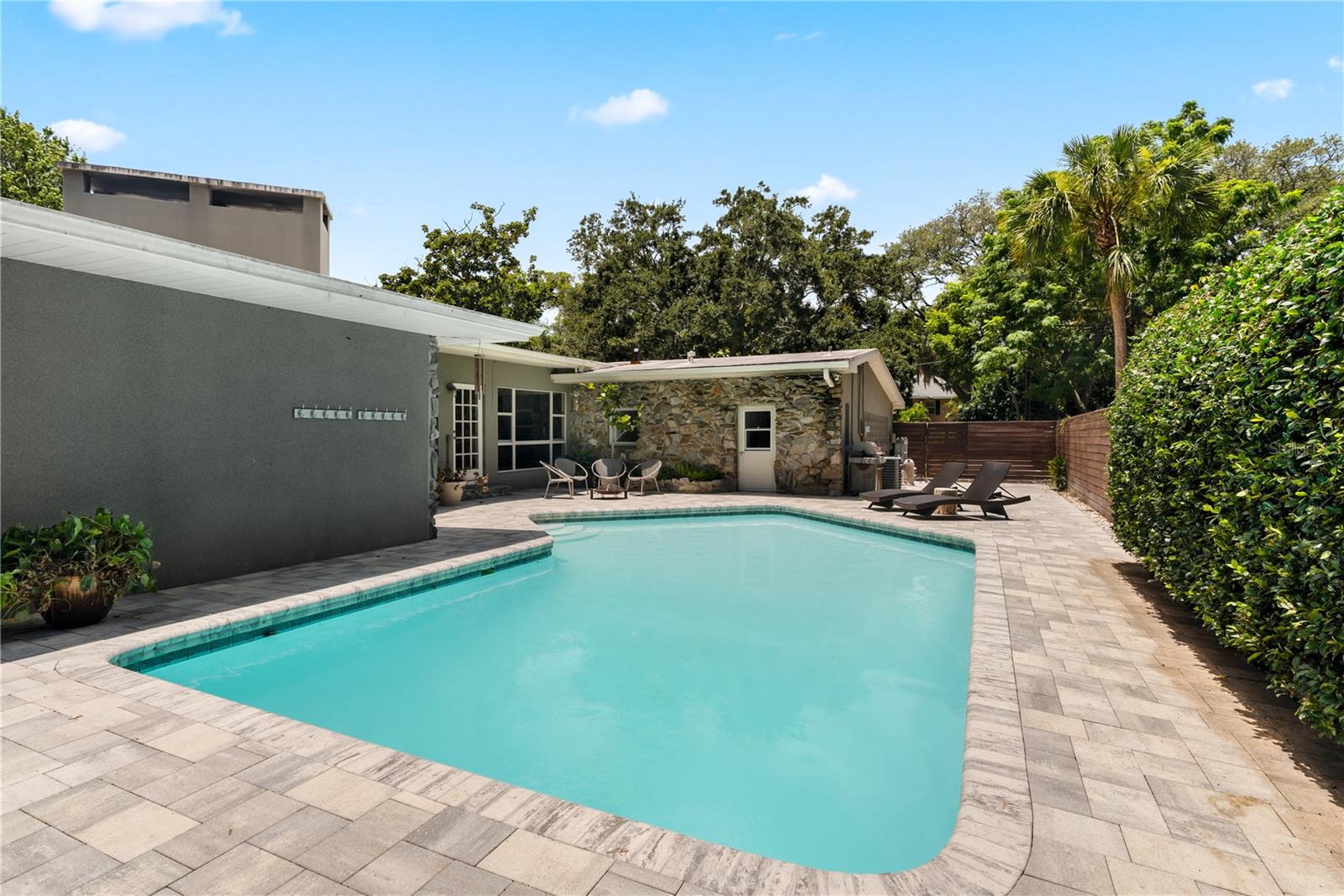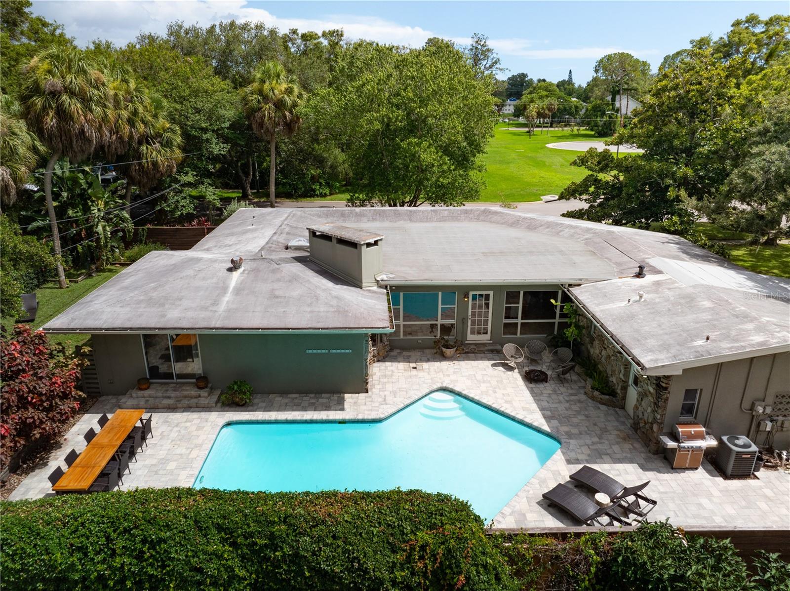 De volta ao mercado! Preço reduzido para venda rápida !!!!! Esta bela casa é carregada com espaço para festas, charme e raros recursos difíceis de encontrar. Localizado no desejável bairro de Glenwood Estates, ele fica em um glorioso lote de canto diretamente em um parque natural pacífico com árvores maduras e casas personalizadas impressionantes, um "jardim da frente" irreal. Desfrute de uma viagem fácil para a Praia de Clearwater com melhor classificação, o centro de Clearwater e Dunedin, além de estar a apenas meia hora de carro de Tampa e dos aeroportos. A poucos quarteirões de distância está o Crest Lake Park, que passou por uma reforma de vários milhões de dólares e agora inclui um parque de spray, jardim de chuva, fonte iluminada, balanços, quadras de vôlei/basquete e muito mais, todos prontos para serem apreciados! A casa também fica perto do Clearwater Country Club, do campo de golfe do Landings, do premiado Belleair Country Club e do Pelican Golf Club, onde o torneio LPGA é realizado e transmitido nacionalmente. Localização, localização, localização! O apelo do meio-fio dessa casa de família muito amada é excepcional. Tetos altos e muita luz natural o recebem quando você entra, destacando uma enorme área de estar com vistas enormes da janela perfeitas. A cozinha do chef é grande e moderna, com armários personalizados e utensílios de aço inoxidável. A casa é uma deliciosa mistura de estilos antigos, contemporâneos e artísticos com um toque de moderno de meados do século. Possui dois quartos principais com banheiros, e os dois quartos compartilham outro banheiro. O último banheiro fica na garagem, atualmente usado para armazenamento. A enorme piscina Gunite de 16.000 galões com acabamento de fibra de vidro tem 11,5 pés de profundidade no fundo do fundo. Está pronto para água salgada e apenas requer uma nova célula salgada. Uma cerca de segurança está disponível para crianças pequenas. A área da piscina é espetacular, perfeita para festas e relaxante, cercada por uma cerca de madeira contemporânea personalizada com uma espetacular parede de jasmim de 150 pés, remanescente da Toscana. Além das áreas de piscina/jantar pavimentadas, há um enorme espaço de grama para cães ou uma expansão adicional. Os recursos desta casa são muitos para listar - você deve vê -la para acreditar. Vendidos como é para a conveniência do vendedor, os compradores devem fazer toda a diligência. A suíte master tem portas deslizantes com acesso direto à piscina, aumentando o luxo. Há um espaço de rastreamento sob a parte original da casa, e a parte mais recente é construída em uma laje. As calhas de chuva cercam a maior parte da casa, e a superfície do telhado baixo é uma membrana de alcatrão. As vigas originais são verdadeiras 4x2 de madeira velha dura, duráveis e extremamente raras em novas construções. A garagem inteligente de dois carros tem paredes de tijolos ventilados e um sistema de anel para entrada de automóveis e entrada de porta inteligente da garagem. Seus pisos também são laminados. O sistema de aspersores é com 4 zoneado. A lareira de grandes dimensões da sala da família se conecta a uma churrasqueira ao ar livre. A cidade atualizou todos os encanamentos de rua e a casa fica em uma zona de inundação X. A parte original da casa é encharcada de gasolina, enquanto a parte mais recente é executada na Electric. Os pisos são de madeira original em excelente condição, com carpete no quarto principal e ladrilhos na sala da família. A cozinha grande e moderna leva à garagem, e a lavanderia, embora incompleta, seria uma ótima combinação de armazenamento de barro/lavanderia. Tudo isso se reúne para fazer uma casa bonita e fantástica para uma família maior e para entreter familiares e amigos. Uma jóia verdadeiramente rara no condado de Pinellas-veja!