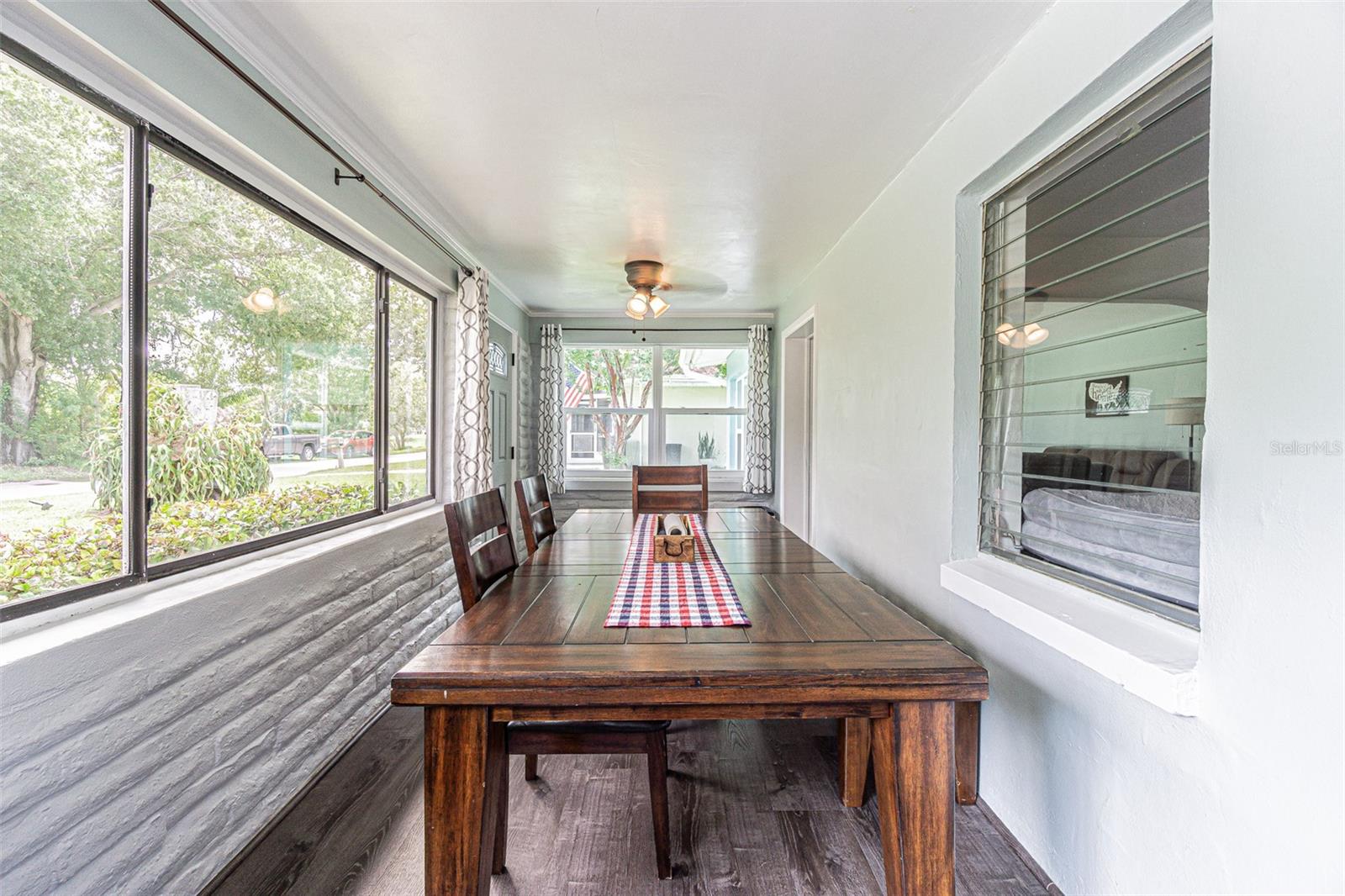 Esta casa moderna de meados do século bem cuidada tem uma vista bonita e serena do Lago Pine a partir das salas de estar e da Flórida da casa. Esta casa clássica de 3 quartos dos anos 1950 com piso de cerâmica tem portas em arco e um armário/buffet de porcelana embutido. Há uma nova cerca de vinil branco envolvendo o grande quintal, ótima para entretenimento e atividades ao ar livre. O caráter da década de 1950 é preservado neste rancho de um só andar, mas você ainda encontrará uma cozinha atualizada, eletrodomésticos de aço inoxidável muito novos, eletricidade atualizada e um aquecedor de água sem tanque. Houve uma época em que havia um banheiro na despensa (compartilhado com o W/D), então o encanamento estará lá se um novo comprador decidir reformar este espaço e ter um segundo banheiro novamente. Há um grande galpão com eletricidade, perfeito para todas as ferramentas de gramado/jardim e armazenamento adicional, se necessário. Excelente oportunidade para começar ou investir, sem taxas HOA ou CDD.
