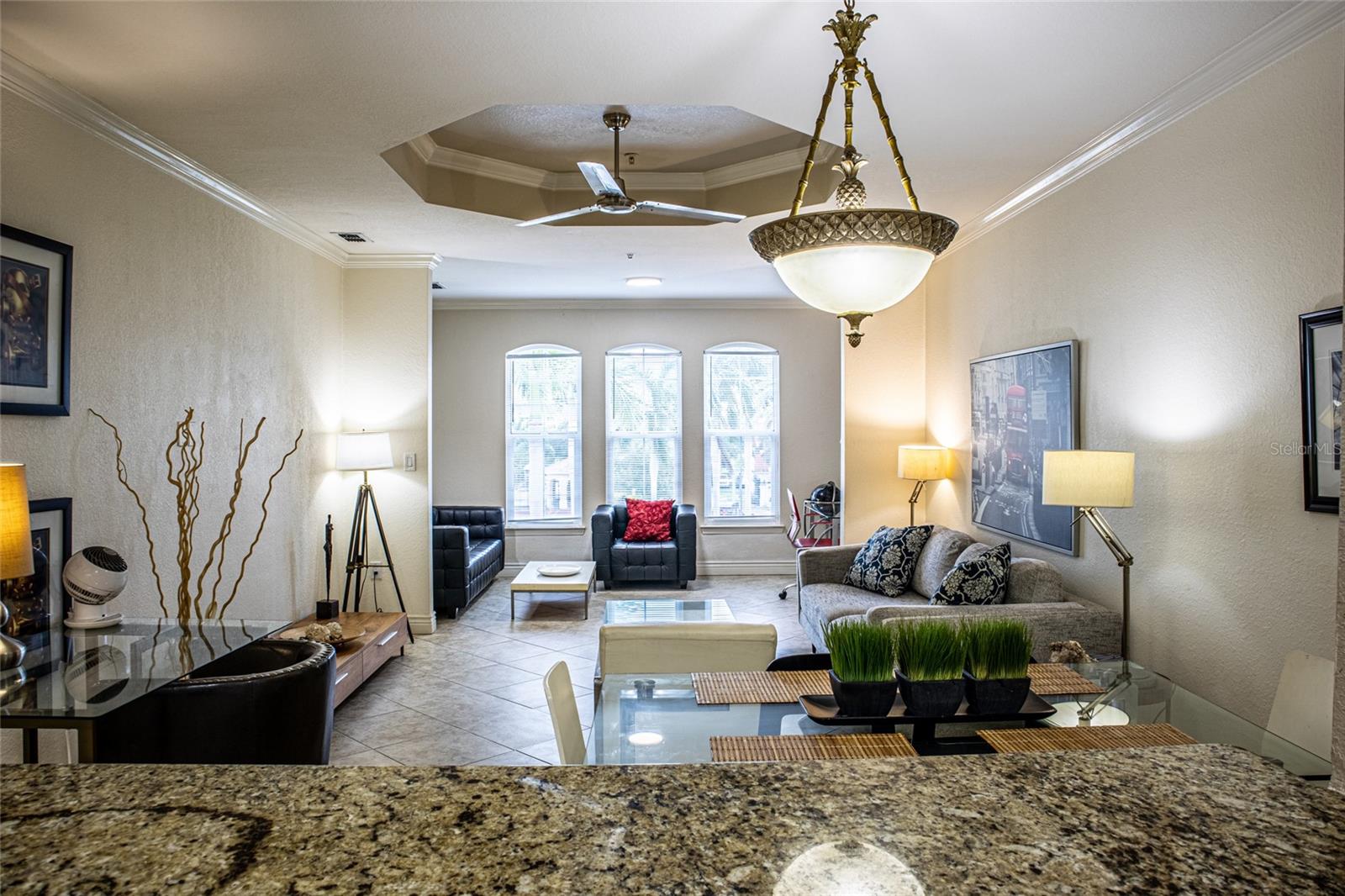 Bem-vindo à incrível comunidade em estilo resort do Grand Venezia em Baywatch. Este condomínio espaçoso e luxuosamente decorado no último andar tem uma planta aberta que permite flexibilidade de uso. Desfrute de uma sala extra ampla ou de uma sala tradicional e de um escritório com vista para a fonte e para os campos de ténis. O lindo quarto com vista inclui um grande closet e palmeiras do lado de fora da janela. A cozinha e o banheiro possuem bancadas de granito combinando, bem como piso de cerâmica de baixa manutenção. O banheiro inclui pias duplas e uma combinação banheira/chuveiro. Há uma lavanderia no corredor e lavadora e secadora estão incluídas na compra. Esta comunidade oferece a segurança de um portão de guarda 24 horas, uma piscina estilo resort com cabanas, uma bela trilha para caminhada à beira-mar na Old Tampa Bay, um clube fabuloso, quadras de tênis e muito mais. O aluguel mínimo de um mês torna este um investimento incrível, bem como uma maravilhosa casa principal ou de férias. Todas as medidas devem ser confirmadas pelo comprador ou agente do comprador.