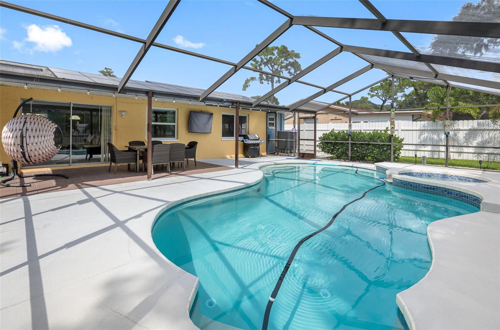 Bem-vindo ao bairro. Esta casa de três quartos e dois banheiros oferece conforto, conveniência, luxo e eficiência para um futuro proprietário. A casa do quarteirão fica em uma zona de inundação X, alta e seca, e possui janelas atualizadas, ar-condicionado, aquecedor de água sem tanque e sistemas de tratamento de água. A área de estar central é revestida com azulejos duráveis e aconchegantes, e os quartos têm piso laminado luxuoso. A glamorosa cozinha é espaçosa e bem projetada para preparar deliciosas refeições. A cozinha possui armários de madeira personalizados, eletrodomésticos de aço inoxidável, bancadas de granito e balcão para café da manhã. A casa dispõe ainda de piscina subterrânea de água salgada e spa, ambos aquecidos. Os aquecedores da piscina e do spa são solares, permitindo-lhe desfrutar de uma água confortável durante todo o ano. A casa também possui painéis solares para compensar outras demandas elétricas do proprietário. Os painéis solares estão quitados e estão incluídos na casa. A casa está localizada perto de uma das vias mais movimentadas da área, você tem acesso rápido às principais praias, aeroportos, lojas e destinos de vida noturna da região. Embora o endereço diga Clearwater, a casa fica na cidade de Largo e conta com o amigável governo de uma pequena cidade para acompanhá-la. Isto permite que esta propriedade hospede aluguéis de curta duração, se os proprietários desejarem. Agende sua exibição hoje.