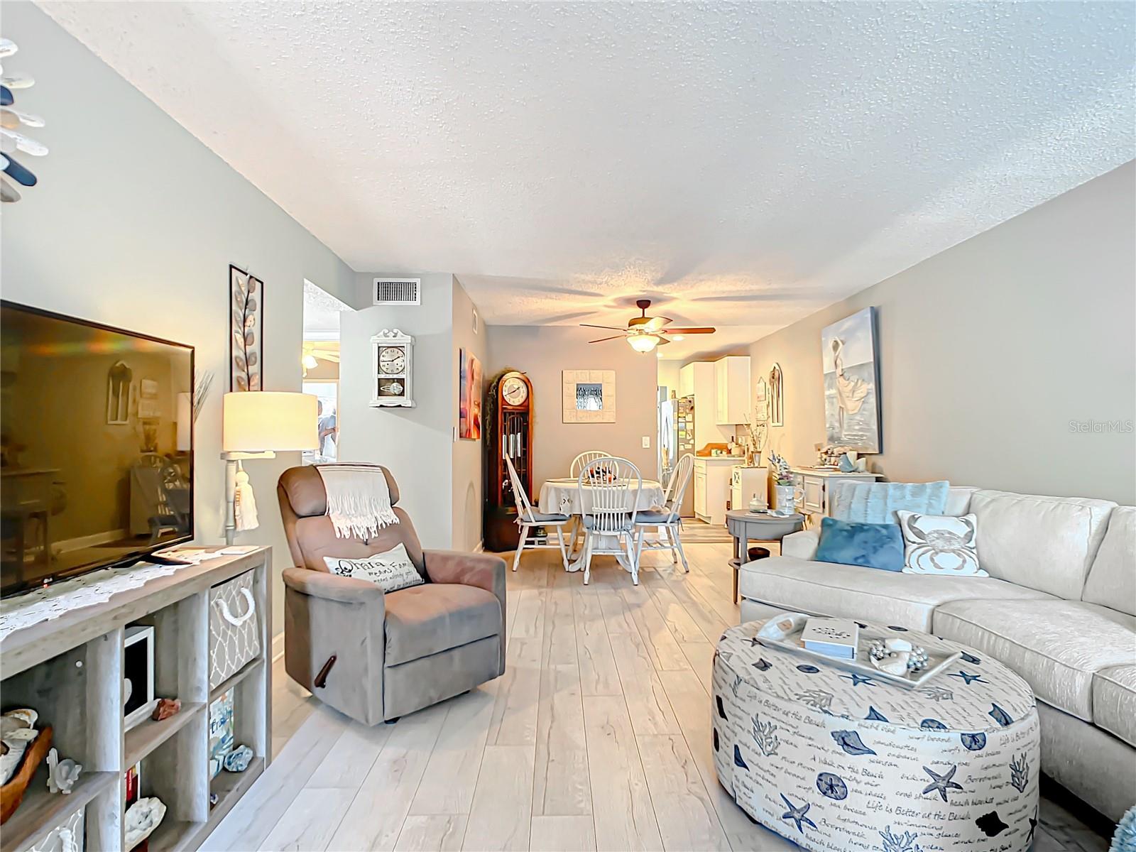 No topo do mundo - Esta unidade central de 1.100 pés quadrados, 2 quartos e 2 banheiros, no segundo andar, está convenientemente localizada perto do East Community Center e tem vista para o campo de golfe! Flórida vivendo no seu melhor! Entre na espaçosa e aberta combinação de sala de estar/sala de jantar com novo e luxuoso piso de pranchas de vinil, cores neutras e pintura fresca por toda parte. As atualizações recentes incluem...NOVAS JANELAS RESISTENTES A IMPACTO - 2023. NOVO AQUECEDOR DE ÁGUA - 2024. A cozinha é leve e brilhante, com lindos armários brancos com ferragens de fechamento suave, bancadas de quartzo, eletrodomésticos de aço inoxidável, backsplash de azulejos personalizados e piso de pranchas de vinil de luxo. A sala Florida tem uma parede de janelas para permitir a entrada de luz natural e uma conveniente segunda saída para o corredor central e elevador. O quarto principal tem um armário duplo extra grande com uma unidade multifuncional APROVADA DE LAVADORA E SECADORA DE TAMANHO COMPLETO, novo piso de vinil luxuoso e um banheiro privativo atualizado completo com uma penteadeira com tampo de quartzo e um walk-in chuveiro com azulejo personalizado. Abra a porta do celeiro para permitir fácil acesso à sala da família ou proteja-a para privacidade. O segundo quarto tem um grande armário e um novo e luxuoso piso de pranchas de vinil com banheiro de hóspedes atualizado no final do corredor. Espaço de estacionamento atribuído em frente à unidade. A comunidade com mais de 55 anos dispõe de dois centros de atividades e dois campos de golfe privados de 9 e 18 buracos, gratuitos exclusivamente para proprietários residentes. Existem duas piscinas; um é aquecido. O remodelado Cardio Gym conta com equipamentos de ginástica de última geração. Uma comunidade que aceita animais de estimação, há um parque cercado para cães com assentos cobertos. Existem ateliês de hobby e uma marcenaria para uso exclusivo dos moradores. As atividades incluem aulas de ginástica, dança, clubes, cartas, bilhar, entretenimento, aulas e muito mais. O Good Karma Café, no local, serve lanches e refeições para levar. A comunidade OTOTW oferece serviço de ônibus gratuito, bem como opções adicionais de transporte disponíveis, incluindo serviço para cadeiras de rodas. Uma variedade de recursos médicos estão localizados nas proximidades. Perto de lojas, restaurantes e entretenimento. Venha dar uma olhada neste condomínio lindamente atualizado...Você vai gostar do que vê!