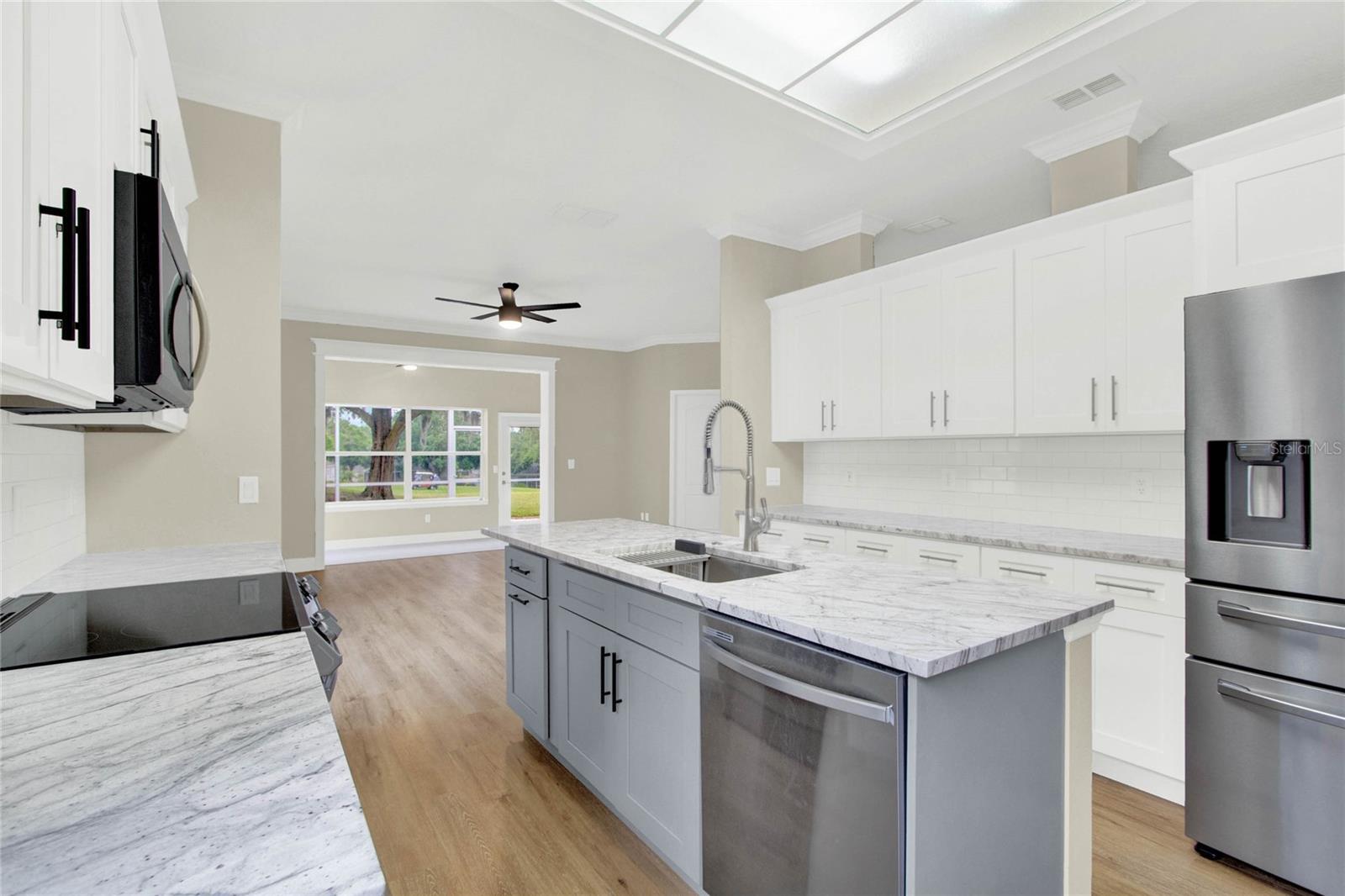 Deve ver !!! Bem -vindo a este modelo de St Regis completamente reformado no 12º buraco do campo de golfe do Kings Ridge Championship. Esta casa possui um 2104 SF aquecido, 2 BD/2BA, Den e uma garagem de 2 carros. O banheiro primário foi completamente reformado com ladrilhos de porcelana em todo o chuveiro e piso. Uma grande vaidade de pia dupla instalada, novo banheiro, espelhos e iluminação. O 2º banheiro também foi remodelado. Ele também possui ladrilhos de porcelana em toda a banheira e pisos com nova vaidade e iluminação do banheiro. Há tábuas de vinil de luxo em toda a casa. Uma nova cozinha dos sonhos com bancadas em granito. Todos os novos aparelhos inteligentes. Novo telhado em 2014. Novo aquecedor de água quente instalada em julho de 2024. O HVAC é 2021. A casa possui paredes recém -pintadas com todas as novas molduras da coroa e grandes rodapés. Aproveite o seu café da manhã na varanda fechada com as vistas relaxantes do campo de golfe do lado de fora. Kings Ridge é uma comunidade de golfe fechada de 55 mais aninhada nas colinas de Clermont. Aproveite o estilo de vida real de Kings Ridge no clube de Multimilhões de $ com 3 piscinas aquecidas, spas, tênis e quadras de bola, bilhar, shuffle board, bingo, cartões e clubes em abundância. As taxas mensais de manutenção incluem: manutenção do gramado, incluindo aparar os arbustos, cuidar do sistema de irrigação e água de irrigação, Internet, cabo e telefone através da Fibrow, manutenção de estradas e pintura externa de casa a cada 7 anos. Leve seu carrinho de golfe para o Kings Ridge Plaza, onde você pode fazer compras, bancos ou jantar fora.