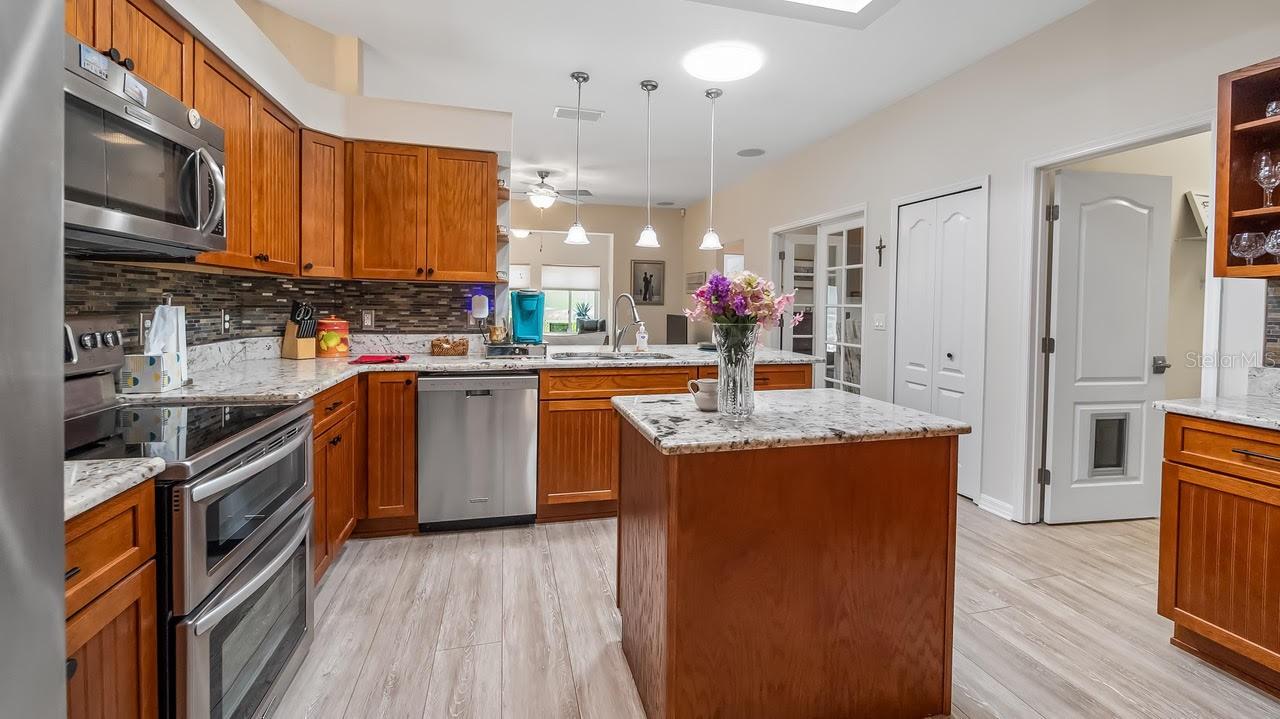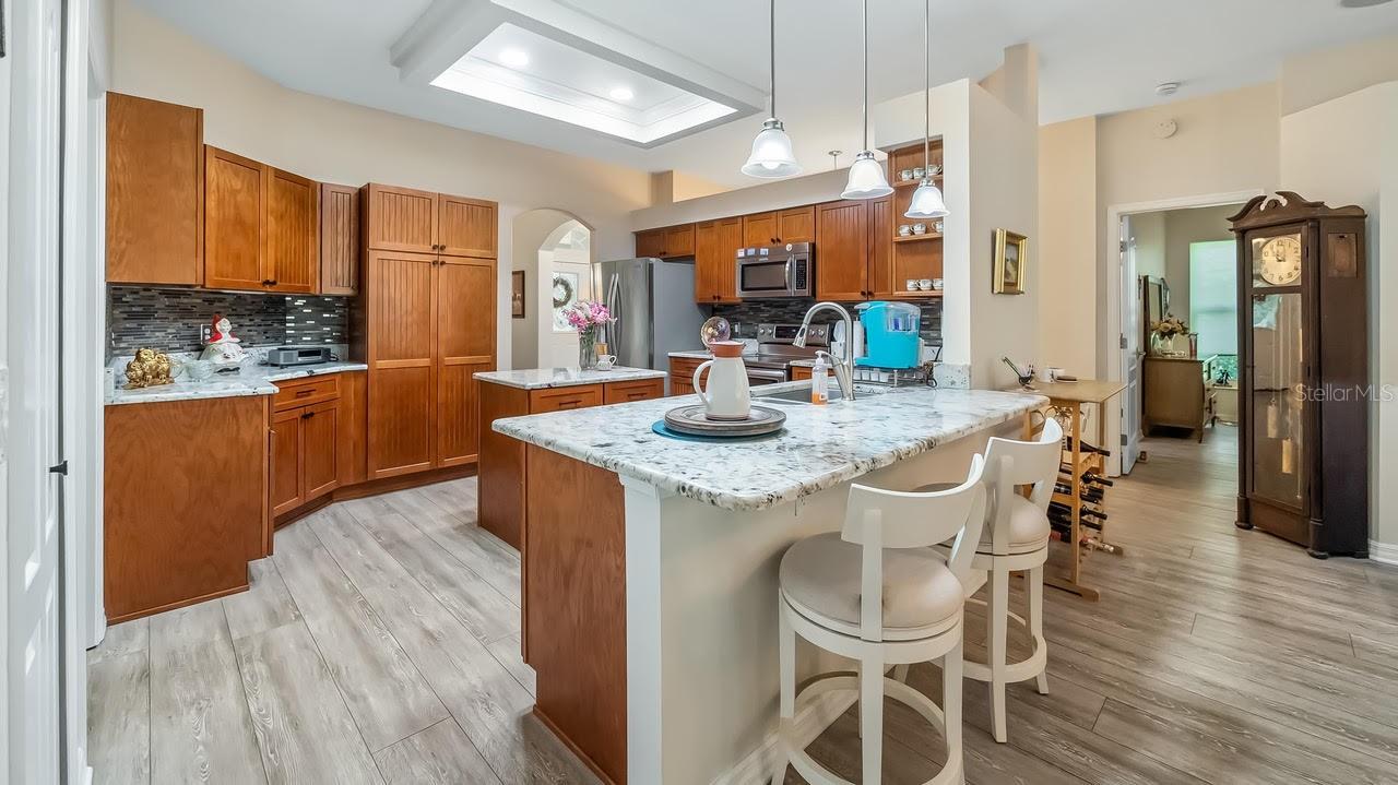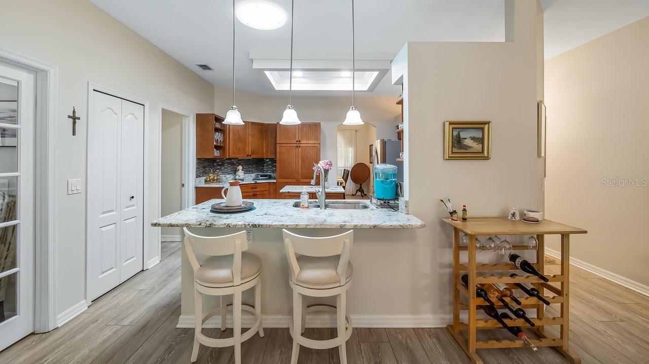 Idealmente localizado em um popular condomínio fechado de guarda, com mais de 2.100 pés quadrados de golfe de estilo contemporâneo que vivem no 17º verde combina os melhores acabamentos com várias atualizações. Com este requintado 3 quartos, 2 banheiros com escritório/ quarto de bônus ou 3º quarto pode se adaptar a qualquer estilo de vida. O piso de tábua de vinil de luxo por toda a janelas grandes, esta casa oferece uma planta baixa e arejada, com muita luz natural para o seu prazer, e isso é perfeito para entreter familiares e amigos. Ao caminhar pela porta da frente, você será recebido com uma espaçosa sala de estar e sala de jantar formal enfeitada com tetos altos e pintada em cores neutras. À medida que você se move na cozinha espaçosa atualizada modernizada, você encontrará uma abundância de armários equipados com gaveta de retirada no fundo, incluindo uma ilha central, backsplash e bancadas de granito, clarabóia e iluminação de pendentes. A cozinha também é atualizada com utensílios de aço inoxidável, geladeira francesa, forno duplo, lava -louças e microondas. O escritório também foi atualizado com armários que combinam com os armários de cozinha, prateleiras de livros e mesas construídas. Este quarto tem um closet e pode ser facilmente convertido em um terceiro quarto. O coração da casa é a sala de família, cozinha e florida aberta, brilhante e espaçosa, com vista para o campo de golfe. O quarto da Flórida é perfeito para entretenimento e ótimas conversas enquanto relaxa ou desfruta de jantar e assistindo aos golfistas ou desfrutando do pôr do sol da Flórida. Este campo de golfe atualizado possui novas janelas de painel duplo de Anderson com uma garantia transferível. As duas janelas frontais foram as únicas janelas que não foram substituídas. O quarto primário espaçoso brilhante com iluminação suave cria um ambiente suave. Fuja para um refúgio relaxante dentro do banheiro renovado com as pias dele e dela, um novo chuveiro de azulejos e novas portas de chuveiro. Esse privilégio tem muito espaço para o gabinete e uma torre com gavetas extraídas para armazenamento extra no banheiro primário. O quarto principal tem 3 armários e um é um closet. O quarto de hóspedes generosamente proporcionado tem uma janela estrategicamente colocada que acabou - parece o campo de golfe. Se você gosta de divertir ao ar livre, esta casa tem um dos maiores lanais da comunidade, com uma fonte com vista para o campo de golfe. Ou desfrute de tomar um café na sua linha de frente com os fãs enquanto assiste aos caminhantes e carrinhos de golfe passarem. O proprietário substituiu as telas na varanda da frente e na parte traseira. As pavimentadoras mais recentes foram seladas. E se você precisar de mais armazenamento, a garagem tem muito espaço no gabinete e piso epóxi. Outra vantagem é que esta casa tem um título de cupins! Kings Ridge aprimora as compras fáceis, levando seu carrinho de golfe para Publix, restaurantes e aparadores, loja de bebidas, sorvete, McDonalds, bancos, UPS, posto de gasolina, etc. Descubra o epítome do estilo de vida ativo confortável que vive em Kings Ridge. Kings Ridge possui 2 campos de golfe, 3 piscinas, banheiras quentes/frias, saunas secas, salas de vapor, 2 academias, quadras de tênis, quadras de pickleball, bocca bola e shuffleboard e quadras de basquete. A casa do clube de vários milhões de dólares, é o coração das atividades com entretenimento, danças, eventos sociais, jogos, clubes de viagem etc. As taxas mensais de manutenção incluem cuidados com o gramado, telefone doméstico, manutenção e corte de arbustos, irrigação e substituição de cabeças de aspersores, manutenção básica de TV e Internet e Internet e rodovias e pintura externa a todos os sete anos. O exterior desta casa será pintado este ano.
