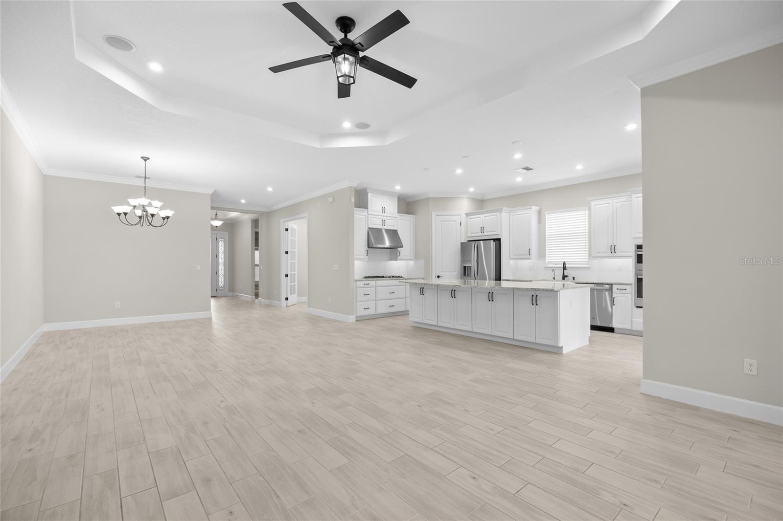 Bem-vindo à Esplanade no Highland Ranch-a principal comunidade de 55 resorts de Clermont! Entre nesta impressionante casa de 3 quartos, 3 banheiros e 2.449 pés quadrados, aninhada nas belas colinas de Clermont. Esta residência possui um piso plano aberto com tamanhos de quartos generosos, pisos de ladrilhos por toda parte e carpete macio nos quartos. Do convidativo hall de entrada convidativo, entre na área de estar brilhante com um teto de bandeja, moldagem por coroa e portas deslizantes de vidro completo que enchem o espaço com luz natural. A espaçosa suíte primária oferece um teto de bandeja, área de estar de janela de sacada e um luxo luxuoso com um grande chuveiro, vaidade de pia dupla, armário de água privada e um closet de grandes dimensões. O quarto 2 apresenta seu próprio private ENSUITE, ideal para os hóspedes, enquanto o quarto 3 está convenientemente localizado perto do terceiro banho completo. Você vai adorar a cozinha gourmet equipada com utensílios de aço inoxidável, incluindo um forno duplo, bancadas elegantes e backsplash, armários de madeira maciça de close suave, uma despensa e uma lixeira de lixo de container duplo. Há também uma sala de escritório/flexão com portas francesas e uma lavanderia interna com amplo espaço de armário, pia, lavadora e secadora. Desfrute da Flórida que vive na espaçosa Lanai, e aproveite a garagem de grandes dimensões para todas as suas necessidades de armazenamento. O HOA cobre cuidados com gramado e arbusto, fertilização, cobertura morta, manutenção de irrigação, comodidades, portões e estradas. Os moradores desfrutam de uma linha impressionante de comodidades no estilo resort, incluindo piscinas aquecidas (voltas e resistência), spa, tênis, bola de bocha, pickleball (todos iluminados para jogo noturno), fogueira, bilhar, tênis de mesa, sala de cartas, estúdio de movimento, cozinha ao ar livre, parque de cães e uma variedade de clubes e atividades sociais. Perfeitamente localizado perto de hospitais, instalações médicas, compras, restaurantes, golfe, atrações da Disney, NTC e quilômetros de trilhas para ciclismo/caminhada, com fácil acesso à rodovia da Flórida e apenas 35 minutos para o Aeroporto Internacional de Orlando. Sem taxas de CDD. Não perca a chance de possuir esta casa espetacular em uma das comunidades mais desejáveis de Clermont!