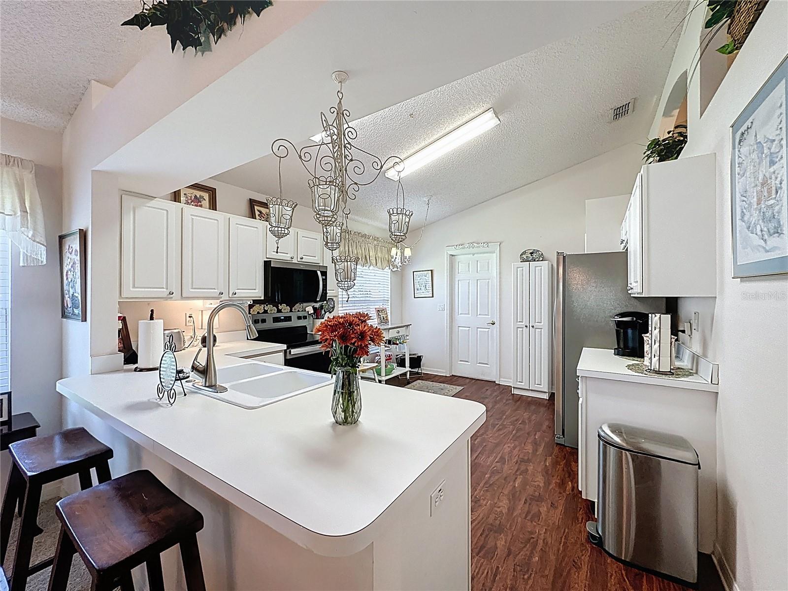 A casa modelo Oxford muito aberta tem um grande terreno de esquina elevado com uma excelente vista para o lago e o campo de golfe. Localizado no condomínio fechado de golfe com mais de 55 anos de Kings Ridge, nas colinas de Clermont. O vendedor está concedendo um crédito de $ 10.000 ao comprador para custos de piso ou fechamento. Substituição do telhado em fevereiro de 2018, novo sistema HVAC em março de 2021 e um novo aquecedor de água em agosto de 2025. Grande sala ao entrar na casa. Todos os novos eletrodomésticos de aço inoxidável instalados em 2025. A casa tem 1745 SF aquecido com 2 BD/2 BA, arrumos e garagem para 2 carros. O quarto principal tem um grande closet. O banheiro principal tem um box amplo. O gabinete da tela traseira é uma ótima área para relaxar e apreciar a vista. O toldo manual permite a diversão durante todo o ano na gaiola traseira. Uma lavanderia separada e a lavadora e secadora permanecem. Também a área ampliada da garagem foi transformada numa arrecadação de boas dimensões. Aproveite o estilo de vida Kings Ridge Royal no clube multimilionário com 3 piscinas aquecidas, spas, quadras de tênis e picles, bilhar, shuffleboard, shows, bingo, cartas e muitos clubes. As taxas mensais de manutenção incluem: manutenção do gramado incluindo poda de arbustos, cuidados com o sistema de irrigação e água de irrigação, espectro para internet e TV a cabo, manutenção de estradas e pintura externa da casa a cada 7 anos. Leve seu carrinho de golfe até o Kings Ridge Plaza, onde você pode fazer compras, fazer transações bancárias ou jantar fora.