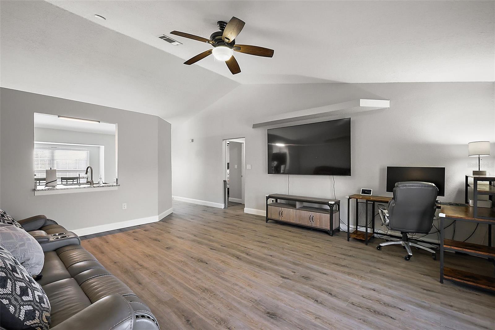 Casa de 3 quartos lindamente atualizada com sala bônus e quintal grande em Clermont! Bem-vindo a esta casa deslumbrante e totalmente atualizada de 3 quartos e 2 banheiros, com um versátil quarto bônus com armário e um quintal enorme - perfeito para entretenimento ou relaxamento ao ar livre. A cozinha remodelada é um destaque com armários de madeira personalizados, bancadas de granito e eletrodomésticos de aço inoxidável preto. Ambas as casas de banho foram totalmente renovadas com acabamentos modernos, conferindo à casa um toque fresco e contemporâneo. Atualizações adicionais incluem novas janelas, um novo painel elétrico (2023), novo aquecedor de água e um sistema HVAC totalmente novo (2022). O telhado foi substituído em 2018 e um novo isolamento expandido foi adicionado acima da sala bônus para maior eficiência. Situada em uma tranquila rua sem saída dentro de uma comunidade que possui um lago tranquilo, esta casa oferece privacidade e beleza natural. Desfrute de aventuras ao ar livre nas proximidades com o Crooked River Preserve do outro lado da rua - com trilhas para caminhada, áreas de piquenique e lançamento de caiaque/canoa - e o Lake Louisa State Park a apenas 8 km de distância. Convenientemente localizada a poucos minutos de lojas, restaurantes e do centro histórico de Clermont, com a Disney World e as principais atrações de Orlando a apenas 30 minutos de distância, esta casa realmente oferece o melhor da vida na Flórida. Não perca a chance de possuir esta joia pronta para morar em uma das áreas mais desejáveis de Clermont!