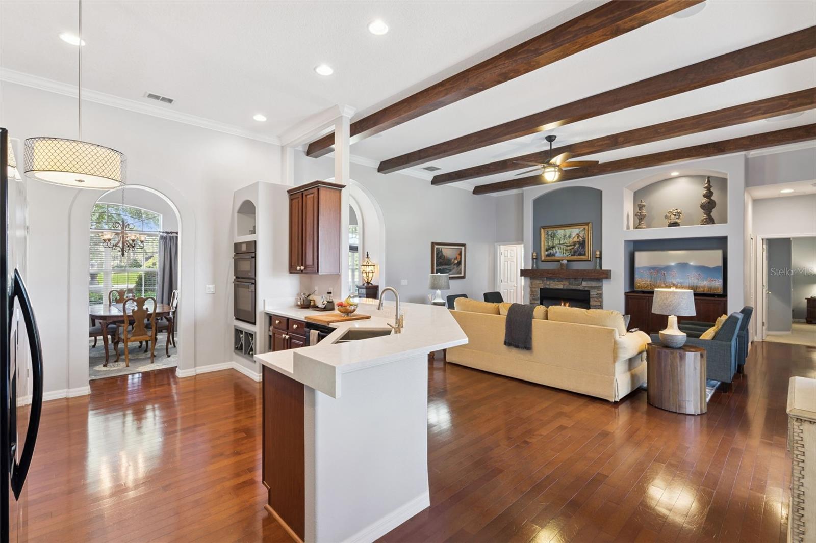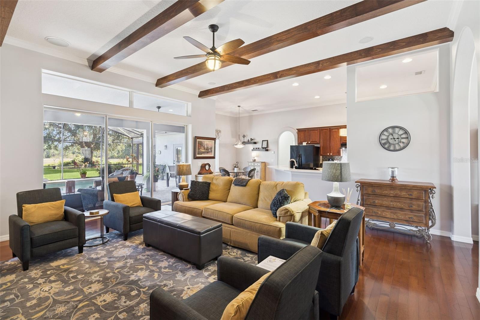 Linda e meticulosamente mantida, esta deslumbrante casa de 4 quartos e 3 banheiros com piscina fica em mais de 1 acre na altamente desejada Reserva Arrowtree. Esta espaçosa planta de três divisões apresenta uma piscina protegida, cozinha externa e lindas vistas para o mar que criam o estilo de vida interno/externo perfeito. Ao entrar, você é recebido por uma sala de jantar formal e um escritório/escritório dedicado, fluindo para uma cozinha bem iluminada com bancadas de quartzo e vista para a sala de estar. Pisos de madeira brasileira percorrem as principais áreas de estar, complementados por belas vigas de madeira no teto, lareira e detalhes cuidadosos por toda parte. A grande suíte principal oferece vistas tranquilas da piscina e do mar, banheiro tipo spa com pia dupla, lareira, banheira de imersão, box amplo e amplo armário personalizado com organizadores embutidos. O 4º quarto funciona como uma suíte ideal para hóspedes ou sogros, com banheiro privativo completo e conveniente banheira de piscina. Do lado de fora, aproveite o nascer do sol sobre a água na pérgula ou relaxe sob a espaçosa varanda com tela. Os destaques adicionais incluem uma garagem lateral de grandes dimensões para 3 carros, toneladas de armazenamento, um telhado mais novo (2020), AC (2018), bomba de calor (2021) e um lote de mais de 1 acre bem conservado. Localizada a poucos minutos da Hwy 19 e da rodovia, esta casa atende a todos os requisitos de conforto, beleza e conveniência. *Os limites da propriedade com fotos aéreas são uma estimativa e devem ser verificados pelo comprador.