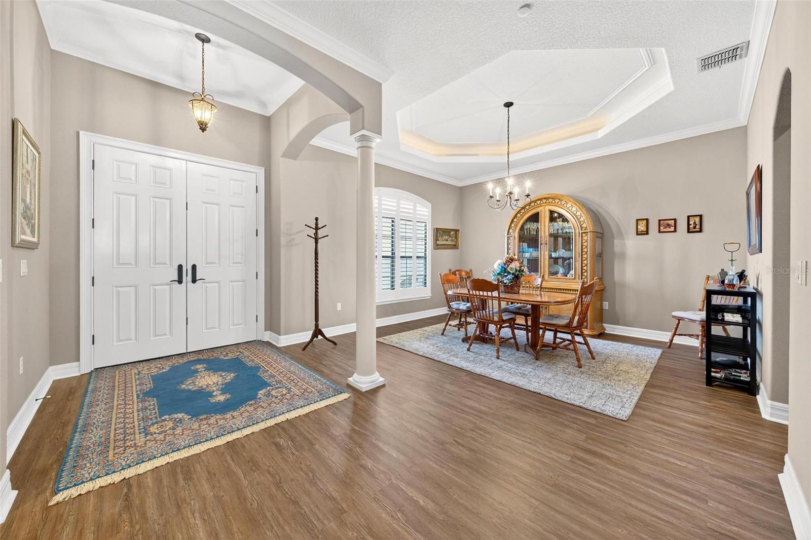 EXPERIMENTE A HARMONIA PERFEITA DE LUXO, FUNCIONALIDADE E BELEZA NATURAL NESTA MAGNÍFICA OBRA RESIDENCIAL EM 5 ACRES DE TERRA PRISTINA!!! Esta casa de bloco construída com maestria oferece 5 quartos. 4 banheiros e garagem para 3 carros. O andar principal abriga a sofisticada suíte primária posicionada para oferecer privacidade e facilidade, com teto de bandeja, sancas, sala de estar separada, dois armários personalizados da Califórnia, um enorme box amplo, portas francesas, banheira de jardim e venezianas. A planta dividida cuidadosamente projetada oferece um quarto na frente da casa e uma ala de hóspedes separada com 2 grandes quartos de hóspedes e 2 banheiros próximos. A cozinha do chef é equipada com um conjunto de eletrodomésticos profissionais Whirlpool, cooktop, fornos de parede dupla, bancadas de granito e armários de 42 "que ancoram um design de conceito aberto. Uma sala de jantar formal inclui teto de bandeja, sancas, venezianas e bela iluminação. O andar principal oferece um layout espaçoso e convidativo projetado para relaxamento tranquilo e entretenimento gracioso com os hóspedes. Relaxe junto ao calor da lareira a lenha/gás na requintada sala de estar, onde duas grandes janelas oferecem vistas tranquilas da natureza. No andar de cima há uma suíte de hóspedes, cozinha compacta, bar molhado, depósito, além de um enorme loft que é perfeito para uma sala de recreação. Saia para sua excepcional área de estar ao ar livre que é lindamente elevada com uma varanda generosa com uma deslumbrante piscina de água salgada em estilo resort com fontes, tudo situado em um terreno impecavelmente paisagístico, com uma impressionante cozinha de verão ao ar livre com uma churrasqueira embutida que serve como centro para um estilo de vida elevado. verde para entusiastas do golfe e uma quadra de croquet para reuniões sociais e tardes de lazer Um edifício de metal de 40 x 60 "como novo" é uma estrutura de aço versátil e durável que oferece 2.400 pés quadrados de espaço interior, que pode servir para uma ampla gama de usos. As paredes têm 18' de altura, o centro tem 24' de altura e tem (DUAS) portas isoladas de 14'. um portão elétrico e uma garagem de 12' de largura com mais de 7.000 pés quadrados de concreto de 4" de espessura. A propriedade é delimitada por uma extensa cerca de vinil moderna de quatro trilhos (tan) que fornece um limite simples, mas elegante, sem obstruir a vista do terreno. As unidades AC são NOVAS e o telhado foi substituído em 2022. A BANHEIRA DE HIDROMASSAGEM NÃO TRANSMITE COM A CASA, MAS PODE SER COMPRADA FORA DO FECHAMENTO.