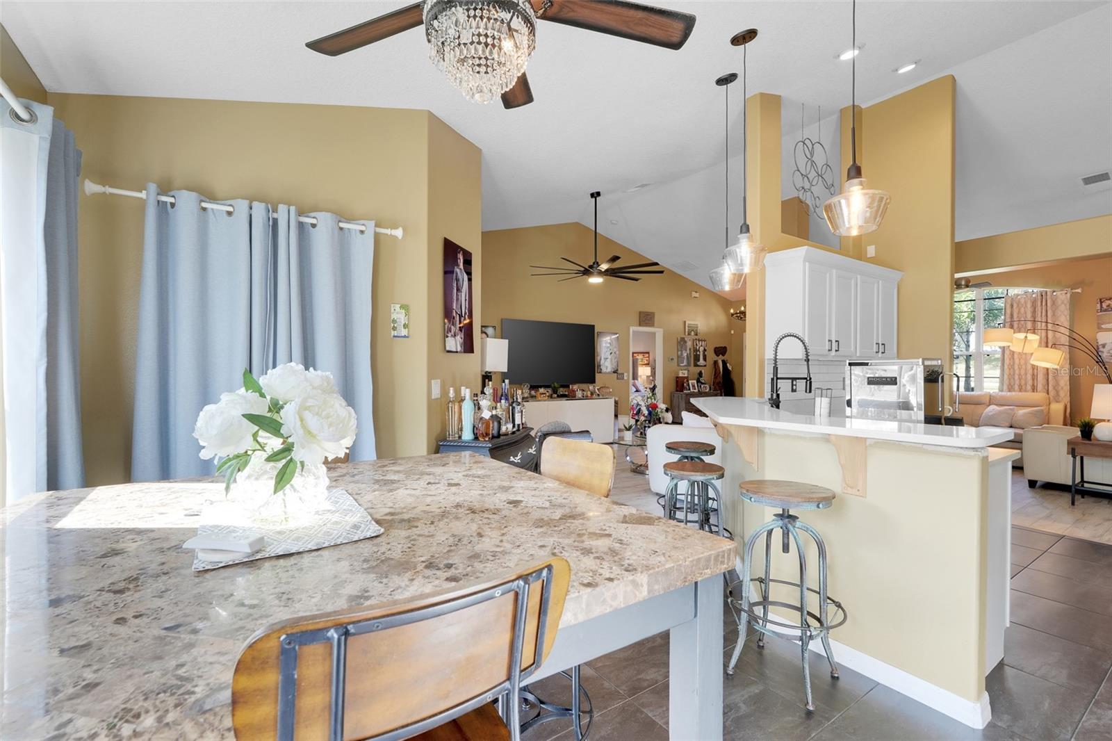 Uma ou mais fotos foram virtualmente encenadas. Sua busca por uma casa atualizada na Flórida, em uma localização imbatível em CLERMONT, acabou! Esta casa dá vida à vida de um único andar com a planta aberta do modelo Stetson e o layout dos quartos divididos. A cozinha foi cuidadosamente redesenhada com armários brancos cobertos com sancas, balcões de pedra, torneira de design e eletrodomésticos de aço inoxidável para incluir uma geladeira GE totalmente nova. Até o elegante conjunto preto de lavadora e secadora transmite! O banheiro principal traz vibrações de spa com cores suaves de azulejos, pias duplas, uma banheira de jardim de canto perfeitamente escondida e um chuveiro totalmente revestido de azulejos. Há menos estresse em saber onde estão seus itens mais importantes: TELHADO 2022, HVAC 2019, EXT PAINT 2019, WH 2019. Você aproveitará as vantagens de ter um AMACIADOR DE ÁGUA e, se tiver um carro elétrico, há um CARREGADOR LEVITON esperando por você na garagem! Esta joia fica em um LOTE DE CANTO meticulosamente mantido dentro do cobiçado e fechado condomínio de College Park, que oferece um playground/parque, um HOA baixo e uma sensação geral de bairro. Do lado de fora dos portões é onde você realmente apreciará a LOCALIZAÇÃO. Você pode acessar facilmente a trilha Hancock e South Lake para caminhadas, ciclismo e patins. O Orlando Health-South Lake Hospital fica literalmente a MINUTOS de sua nova casa, e se você gosta de GOLFE, você pode encontrá-lo do outro lado da rua, em frente aos portões da frente. Há uma variedade de escolas bem avaliadas nas proximidades, bem como o Lake-Sumter State College. Venha conferir tudo você mesmo - você ficará muito feliz por ter feito isso!!!