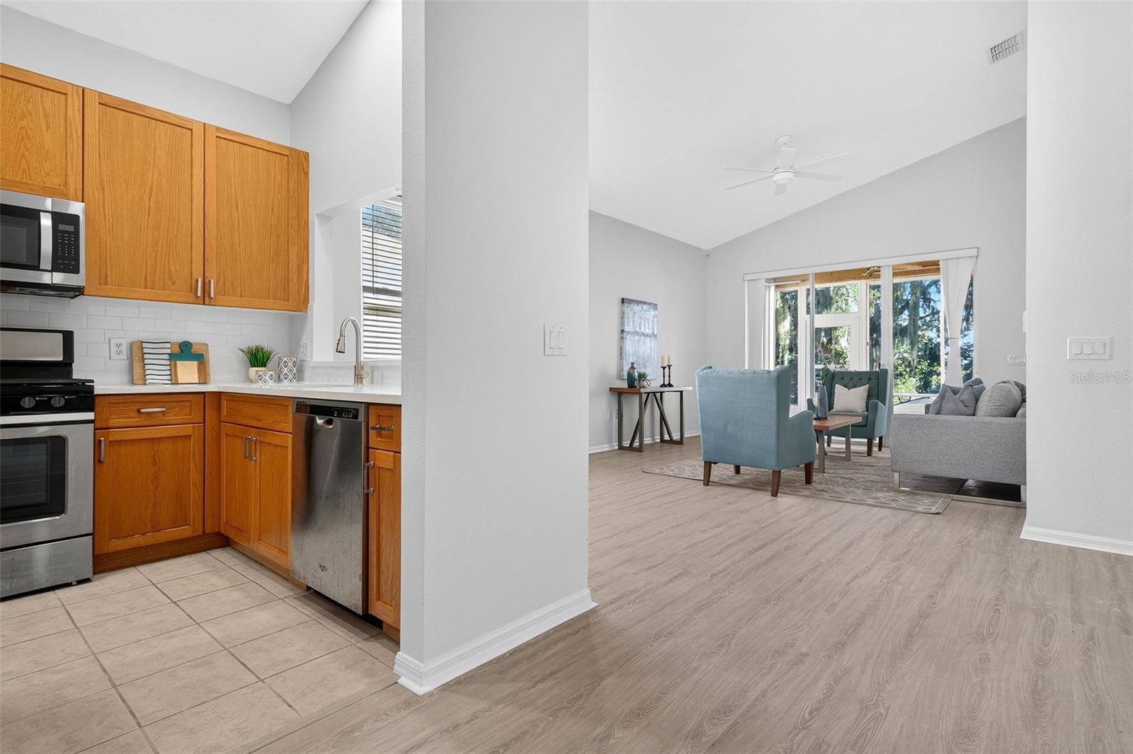 Uma ou mais fotos foram virtualmente encenadas. COZINHA NOVA!!! Casa completamente remodelada na comunidade Guard-Gated Summit Greens. Layout compacto projetado para conveniência e baixa manutenção. Bem-vindo ao 791 Wolf Creek Street, uma residência deslumbrante e totalmente remodelada localizada em Summit Greens, uma das comunidades com mais de 55 campos de golfe mais procuradas de Clermont. Esta casa foi amplamente atualizada, combinando design moderno com artesanato de qualidade e vida de baixa manutenção. Entre em um layout de conceito aberto com piso de vinil luxuoso, iluminação personalizada e uma área de estar iluminada e arejada que flui perfeitamente para as áreas de jantar e cozinha. A nova cozinha possui bancadas de quartzo, eletrodomésticos de aço inoxidável, armários personalizados com fechamento suave e amplo armazenamento, combinando estilo moderno com funções cotidianas. Atualizações e melhorias recentes • Novo telhado • Novo aquecedor de água • Sistema HVAC com manutenção e atualização profissional, incluindo limpeza completa da ventilação, religação e novo conjunto de soprador • Pintura interior renovada, novos acessórios e acabamentos de design por toda parte Desfrute de manhãs e noites tranquilas na varanda privada, cercada por uma paisagem madura e vistas verdes abertas. Viver em Summit Greens significa desfrutar de comodidades em estilo resort: um campo de golfe profissional de 18 buracos, piscinas internas e externas aquecidas, quadras de tênis e pickleball, academia de ginástica, estúdios de artes e ofícios, bilhar e um clube espaçoso que abriga atividades sociais durante todo o ano. Convenientemente situada perto das principais rodovias, lojas, restaurantes e dos lagos pitorescos de Clermont, esta casa oferece uma experiência de vida lindamente atualizada em uma comunidade segura, ativa e bem conservada.