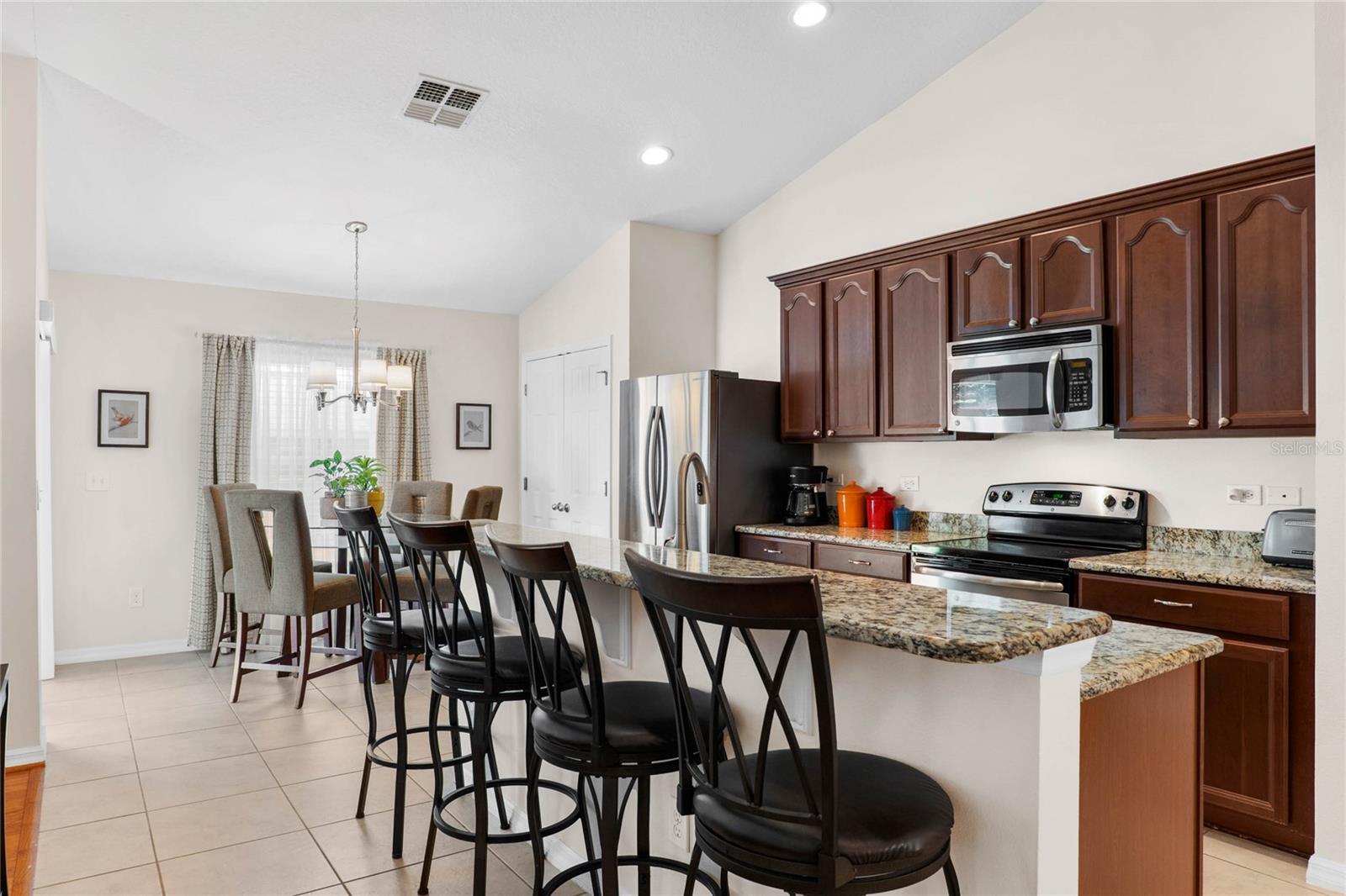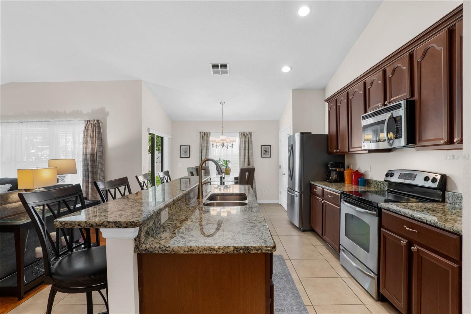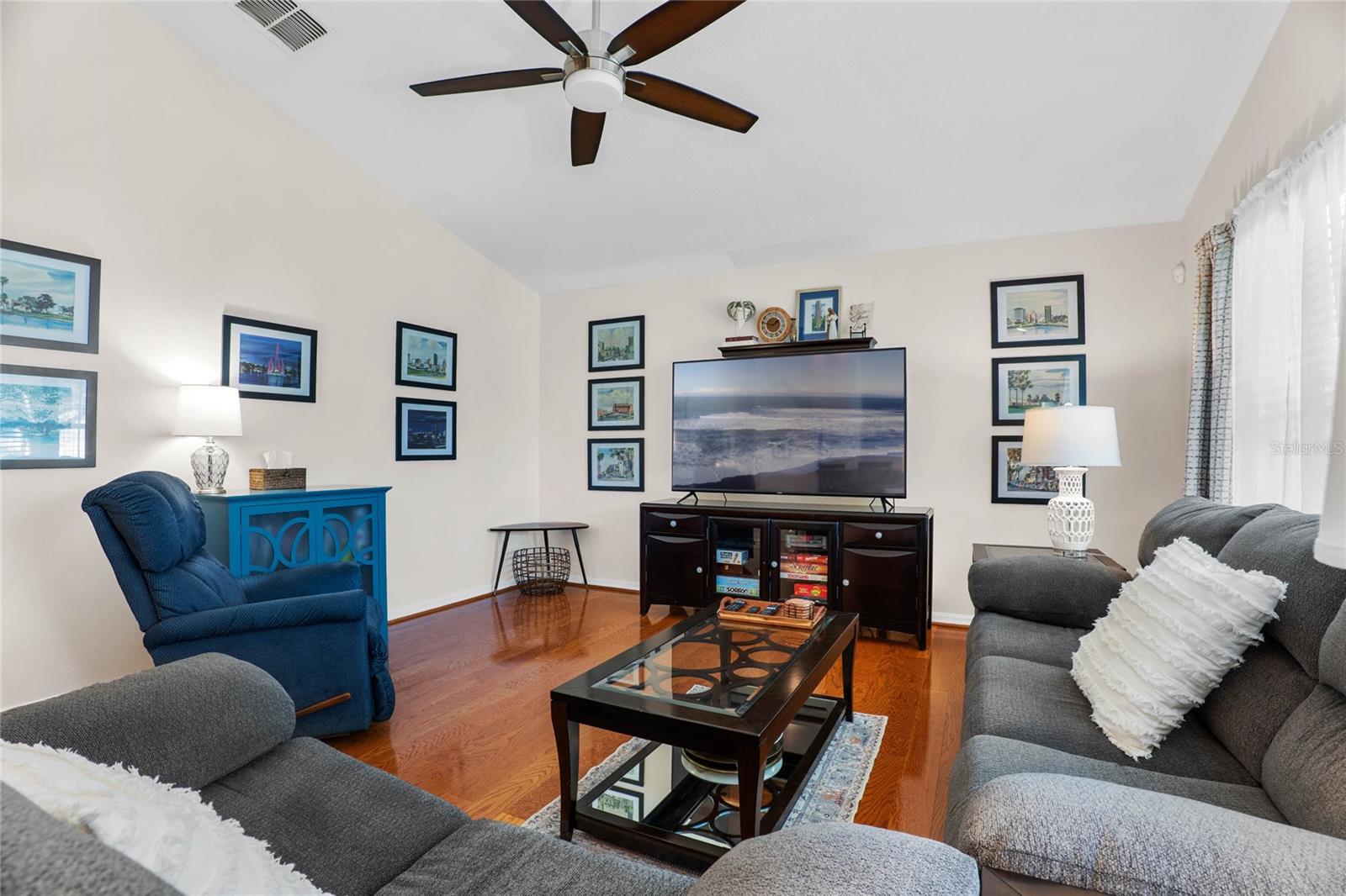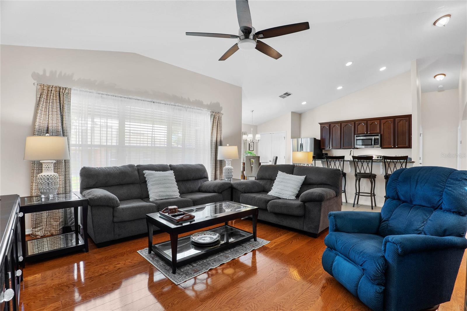 LINDA CASA COM ESPAÇO PARA TODOS DA FAMÍLIA! Ao se aproximar desta casa em Meritage, você ficará impressionado com sua incrível atratividade, incluindo uma grande varanda frontal coberta. Pela porta da frente e pelo hall de entrada, você encontrará dois espaçosos quartos e banheiro, com um quarto de hóspedes adicional e banheiro no lado oposto do corredor. Cada quarto possui um novo e atraente piso de vinil luxuoso. No corredor de azulejos, você notará atraentes portas francesas que levam a um espaço flexível privado que pode ser um escritório doméstico ou uma sala de jogos, o que for adequado às suas necessidades. A sala de jantar formal possui colunas elegantes, corrimão para cadeiras, molduras para fotos e piso de madeira. Uma área familiar aberta é perfeita para relaxar e inclui ainda mais piso de madeira. A cozinha se destaca pelas bancadas de granito, armários de 42 polegadas, eletrodomésticos em inox, balcão e despensa. Uma área de jantar aconchegante com controles deslizantes de vidro leva a uma varanda coberta e a um grande quintal. A espaçosa suíte do proprietário dispõe de closet com prateleiras personalizadas e banheiro privativo que inclui pia dupla e armário de roupa de cama. E não se deixe enganar pelo exterior, esta casa oferece uma garagem tandem para três carros, perfeita para guardar um barco ou apenas utilizá-la para espaço extra. As características adicionais incluem uma grande lavanderia com pia e armários, iluminação e espelhos atualizados em todos os banheiros, ar condicionado com manutenção profissional, pintura externa (2019) e um NOVO TELHADO em 2023. Esta casa foi bem conservada e pronta para morar. próximos proprietários. A comunidade Overlook at Lake Louisa oferece taxas HOA super baixas e está convenientemente localizada nas principais estradas, restaurantes, lojas, instalações médicas, parques temáticos e rampas para barcos públicos. Melhor agir rápido!