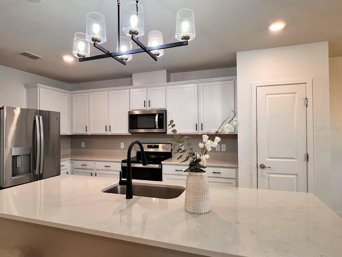 Apenas remoldado. Linda, 3 anos, 5 quartos, 3 banheiros, com vista para a água em Cagan Crossing. Esta casa incrível tem um conceito aberto que conecta a família, a cozinha e a área de alimentação, tudo em uma com vistas impressionantes do cinto verde e da água de todas as janelas traseiras. Você se sentirá como você está morando no país! Quando você caminha pela varanda da frente e pela porta da frente da frente, as escadas estão à esquerda e reta na frente por um hall de entrada muito curto, é acesso imediato à grande sala da família e com vistas incríveis pelo controle deslizante traseiro. Dê um passo do lado de fora sob a Lanai coberta para desfrutar das configurações e da água pacíficas logo além de algumas árvores. O quintal fica de frente para o norte para lhe dar um pouco de alívio do sol ardente. De volta para dentro, a cozinha tem uma área de alimentação com vista para as costas, uma despensa de armário, ilha de pia com bar de café da manhã, armários leves acentuados com moldagem por coroa e balcões de pedra. O primeiro andar tem ladrilhos por toda parte, até o quarto dos fundos nº 5. Há também um banho completo no primeiro andar ao lado do quarto. Antes de subir as escadas, há uma pequena área fora da garagem para largar suas coisas e armazenamento para manter sua casa bonita. No topo da escada, há um grande loft, mais três quartos laterais, banheiro do salão e lavanderia. O quarto principal 14x15 também tem excelentes vistas da água nas costas. O banheiro principal tem pias duplas com balcões de pedra, chuveiro, armário de linho separado e armário de roupas grandes. Cagan Crossing é uma comunidade fechada e tranquila em um ambiente pacífico, com várias lagoas por toda parte. O Community Center tem uma piscina de ótimo tamanho e uma área de piquenique coberta com ventiladores de teto e ao lado do playground. Existem 2 entradas/saídas para sua conveniência. Localizada a poucos minutos da Disney, com escolas de melhor classificação, compras, jantando nas proximidades, esta propriedade é uma mistura perfeita de conveniência e conforto. Walmart, Lowe e vários restaurantes estão literalmente do lado de fora do portão de pedestres, sem necessidade de usar seu carro. Tudo isso está ao seu alcance. Clermont está repleto de entretenimento, mercados de agricultores, fácil acesso às principais rodovias como Hwy. 27, 192 e 429. Esta é a casa que você estava esperando por -não há espetáculo de esperar hoje! Observe que algumas fotos são praticamente encenadas para ilustrar a vida conceitual aberta.