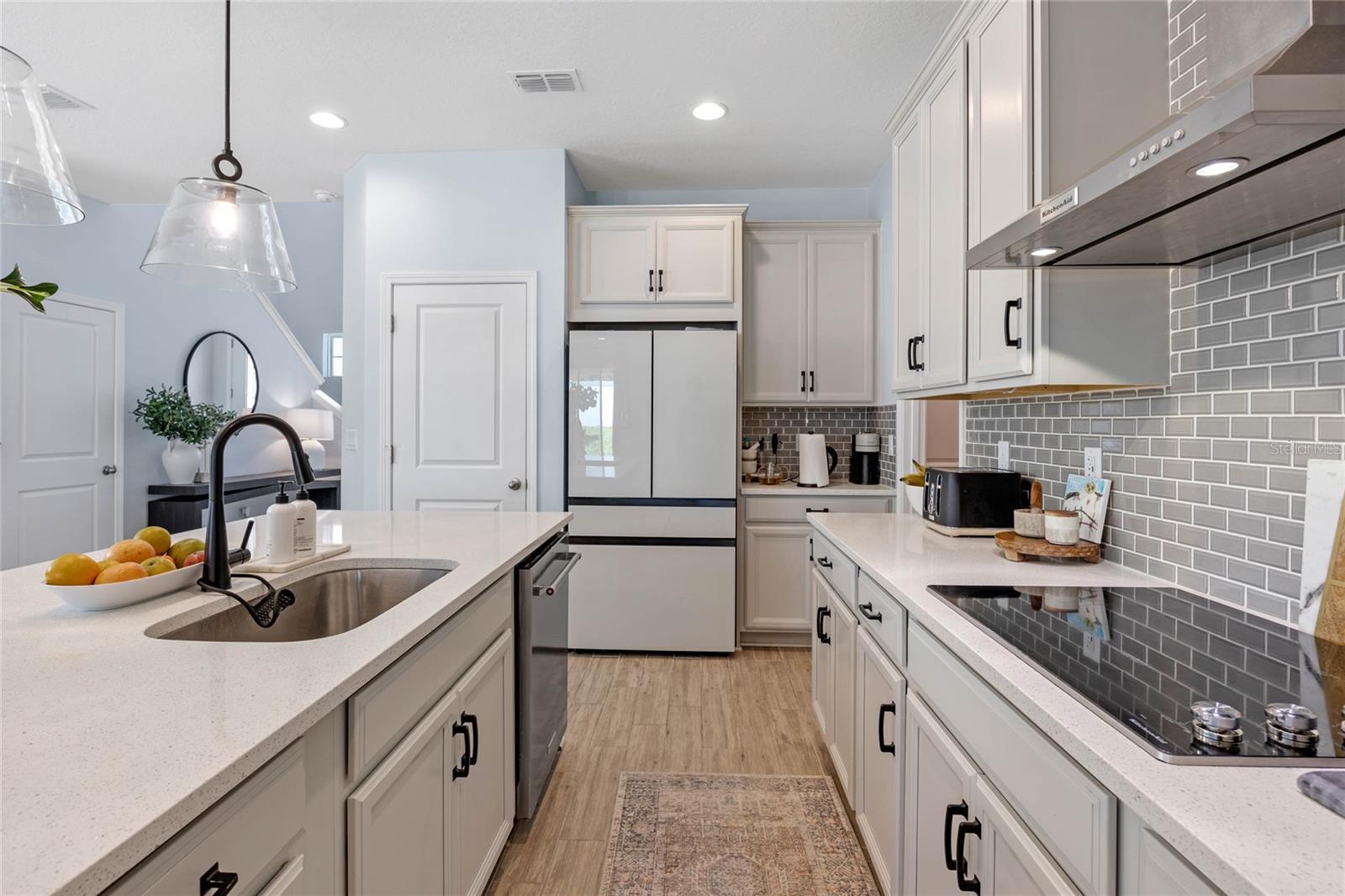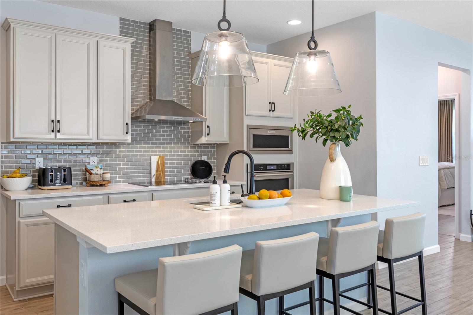 Bem -vindo para casa! Desde o momento em que você chega, você será cativado pelo impressionante apelo do meio -fio - paisagismo exuberante, uma garagem de pavimentadora de tijolos e sotaques elegantes de laje criam uma entrada pitoresca. Entre e descubra uma planta baixa que equilibra perfeitamente o estilo e a funcionalidade, com a suíte primária no nível principal e todos os quartos adicionais, além de uma espaçosa sala de bônus no andar de cima. A cozinha gourmet é o sonho de um chef, com bancadas elegantes de quartzo, armários superiores de 42 polegadas, uma fogão de vidro elétrico com um capuz de aço inoxidável, um forno de parede e microondas e uma grande ilha adornada com iluminação de pingentes de designer e assento de bar. Os armários cinza quentes com hardware preto liso e um backsplash complementar completam o espaço com elegância moderna. Sua suíte primária oferece um retiro privado com luxuosos pisos de tábua de vinil e um amplo closet. O banheiro privativo inspirado no spa apresenta um chuveiro de grande porte com cabeças de chuveiro duplo, um nicho de parede embutido e ladrilho de aparência de mármore do chão ao teto. Vaidades duplas com bancadas de quartzo, torneiras pretas foscas e hardware de coordenação adicionam um toque sofisticado. Projetado para entretenimento contínuo, o layout do primeiro andar flui sem esforço da cozinha para as áreas de jantar e de estar, estendendo-se para o lanai coberto e o quintal totalmente cercado-perfeito para sediar reuniões ou desfrutar de noites tranquilas. No andar de cima, você encontrará três quartos adicionais e um espaço versátil de loft, ideal para um escritório em casa, sala de mídia ou área de recreação. Aninhado no canto sudoeste da Hartwood Marsh Road e da Future Hancock Road Extension, a Hartwood Landing oferece conveniência imbatível com fácil acesso à Highway 27 e State Road 429, garantindo viagens sem esforço pela Flórida Central. Não perca a oportunidade de morar perto de um enorme desenvolvimento de esporte e uso misto de bem-estar !! O projeto do centro da cidade de Olympus aumenta e está programado para incluir treinamento esportivo e locais de competição para atletas amadores, profissionais e olímpicos; instalações de saúde e fitness; e hotéis, restaurantes, lojas, espaço para conferências, entretenimento e imóveis residenciais. https://www.olympusorlando.com/#site