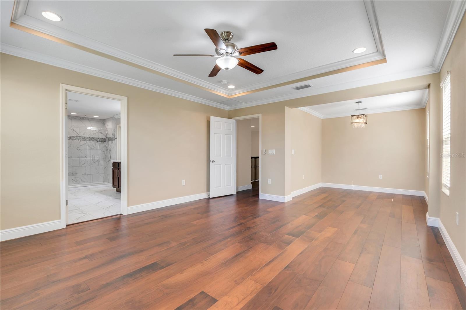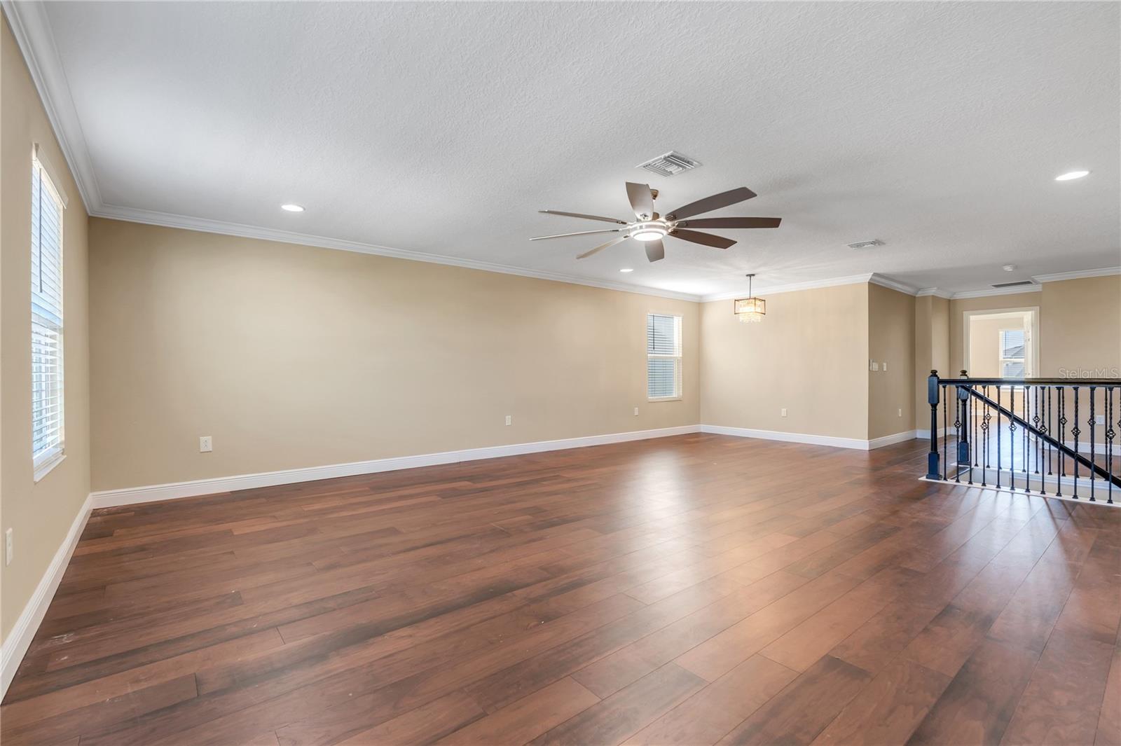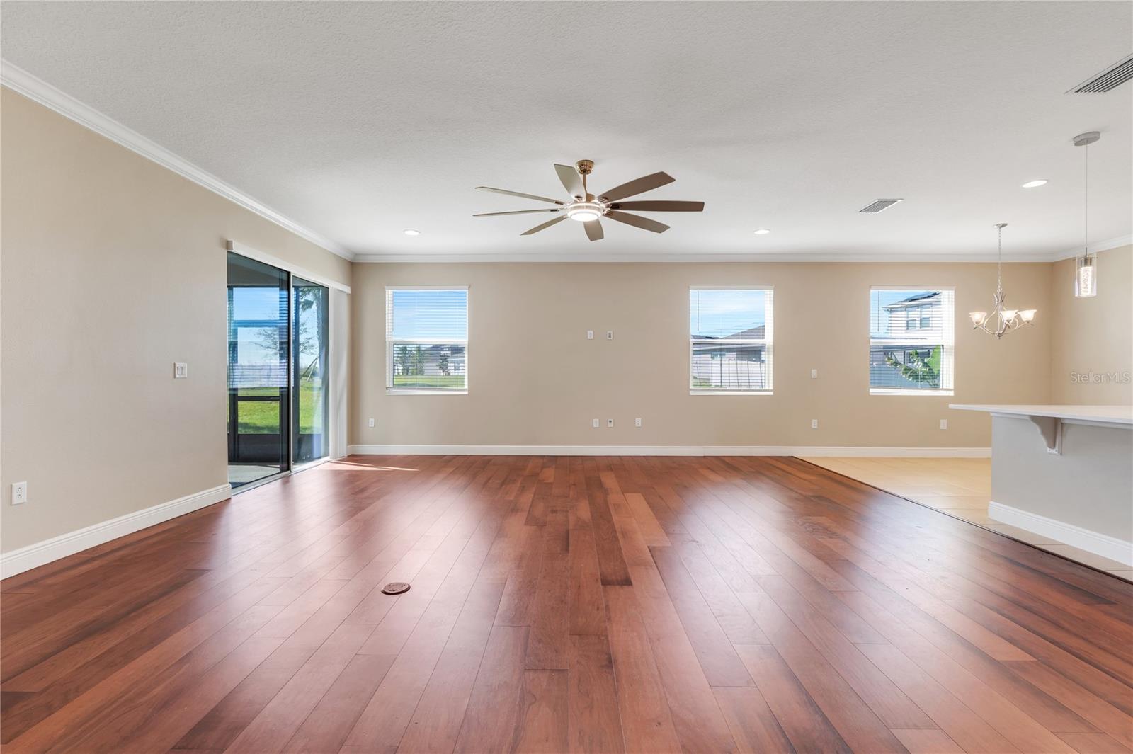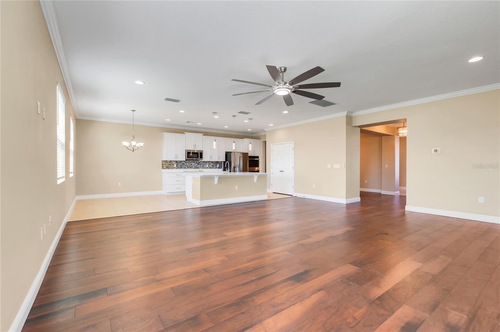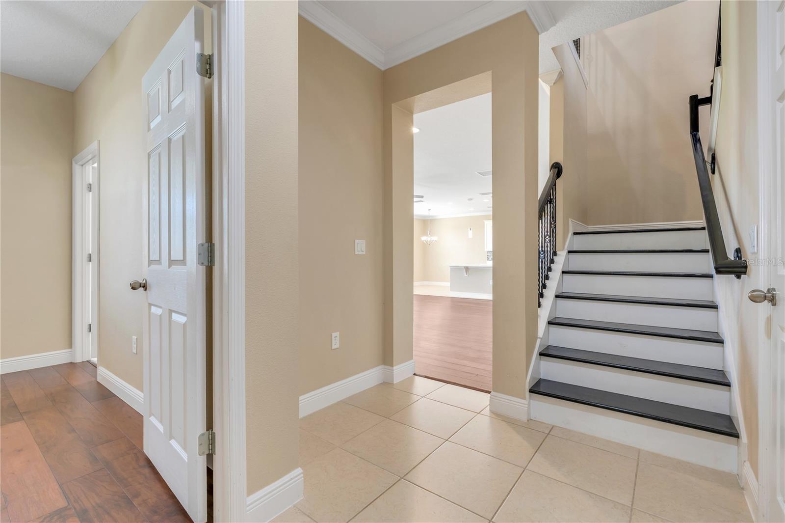 Linda casa na comunidade Ridgeview, suíte de sogro de várias gerações, com porta de entrada separada, com muitas atualizações e melhorias, lote premium de volta a grandes espaços abertos, 7 quartos e 5,5 banheiros, taxa baixa de HOA, sem CDD, sem tapetes. Com um bom engenheiro de pisos de madeira e telhas, luzes LED, ventilador de teto com controles remotos, moldagem por coroa, caixa de escada de madeira maciça dupla com balas de ferro, sistemas e luzes de prateleiras de armário atualizadas, primeiro andar com sala de casita com armários e entrada separada e outra suíte de hóspedes e suíte de banheiro e salão de banheiro. Escadas duplas, no segundo andar, suíte de quarto principal e outros 4 quartos e 2 banheiros. Cozinha gourmet, bancada de quartzo na cozinha e em todos os banheiros. Longa entrada de automóveis para acomodar mais estacionamento, a uma curta distância da piscina da comunidade HOA e do parque de playground. Lanai Screen fechada e calha de casa inteira instalada.