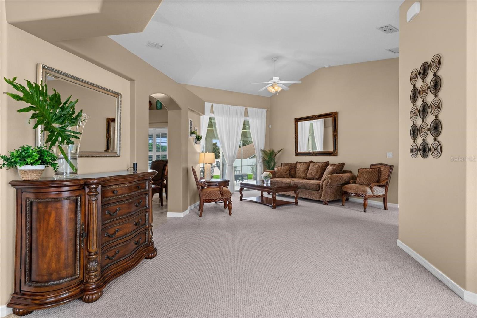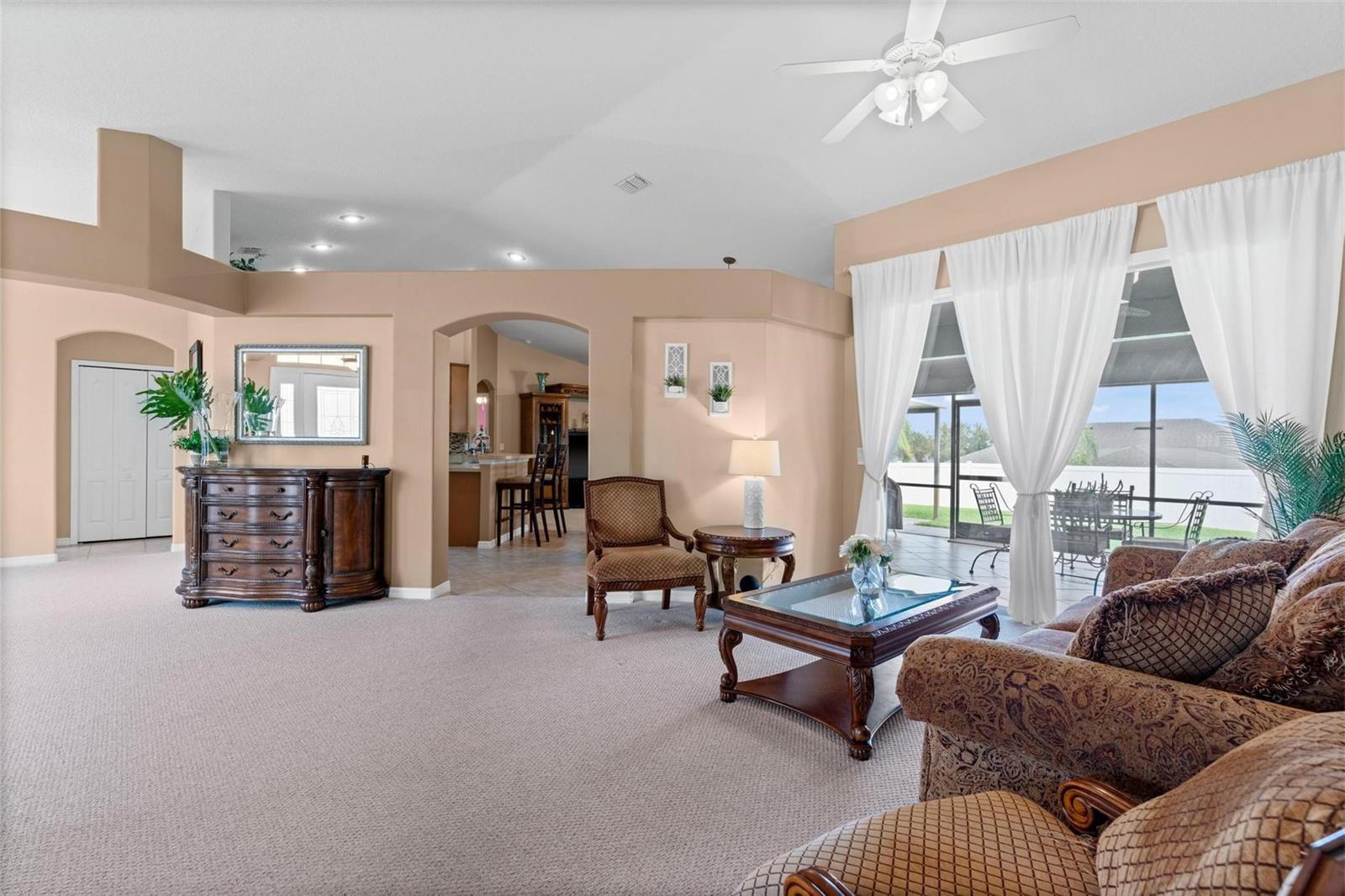 Bem-vindo ao 13031 Colonnade Circle localizado nas colinas de Clermont, Flórida. Esta planta cuidadosamente projetada é funcional e reconfortante para qualquer família em crescimento. Ao passar pela porta da frente, você será saudado por tetos altos e abobadados, uma sala de jantar formal à sua esquerda e uma sala de estar formal à sua direita. Portas de vidro deslizantes altas que levam você ao pátio traseiro fechado que foi ampliado e totalmente fechado com tela. A casa fica em quase meio acre de grama verdejante, cercada por um paisagismo claro, algumas árvores floridas e é totalmente cercada! Voltando para dentro, a casa possui uma cozinha grande com armários de madeira maciça, muito espaço no balcão, eletrodomésticos de aço inoxidável, backsplash de azulejos, garrafeira embutida, assentos de bar, despensa de porta dupla e copa. Conectada à cozinha há uma confortável sala de família e fora da sala de família no corredor há dois quartos que compartilham um banheiro com chuveiro combinado perfeito para os pequenos e do outro lado há um quarto separado com banheiro privativo com chuveiro independente de azulejos. Fique animado ao voltar para sua suíte primária privada no extremo sul da casa. Este quarto traz muita iluminação natural com vista para o pátio e quintal através das portas de vidro deslizantes. O banheiro principal está equipado com closets duplos, pias duplas, banheira de imersão e chuveiro independente. Fora da suíte principal fica o seu próprio escritório doméstico com grandes janelas e portas duplas. Esteja você investindo ou aninhando, esta casa tem tudo que você precisa. Poço privado para irrigação, que não vai aumentar sua conta de água, um telhado totalmente novo colocado em 2025, venezianas atualizadas, calhas de chuva, garagem para três carros e amplo estacionamento na garagem em uma comunidade estabelecida de baixo HOA. Convenientemente localizado no coração da sua cidade favorita de Lakeside em Clermont, Flórida! Ligue para agendar sua consulta hoje.