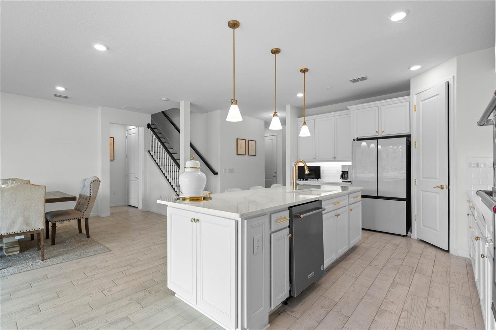 Esta encantadora casa de 4 quartos e 2,5 banheiros, com quarto principal e um banheiro completo no primeiro nível, está localizado em um lote de conservação com uma magnífica vista do lago na subdivisão Serenoa Lake. Esta comunidade oferece comodidades como academia, cabana, piscina, playground e internet com uma taxa HOA de apenas US $ 126 por mês, que inclui essas comodidades de estilo resort e comunidade de portões. A casa tem um elegante estilo contemporâneo, o Extender Cover Patio, todos os acessórios de cozinha e banheiro foram selecionados pelo construtor original que projetou a casa. Esta bela cozinha gourmet tem uma bancada de camalata com fornos de Doble, combina elegância e modernismo em um único espaço para desfrutar, misturar elegância e modernismo em um único espaço para desfrutar da escada na propriedade de madeira sem carpete e, no segundo nível, há carpetes para desfrutar de um piso confortável. No primeiro nível, há um quarto principal e um banheiro completo e um closet, o Flexroom pode ser usado como espaço de escritório. O piso é inteiramente cerâmico, facilitando a manutenção, o segundo andar é o tapete para confortar a espaçosa cozinha apresenta armários brancos com moldagem por coroa, bancadas de quartzo, um backsplash, utensílios de aço inoxidável e um exaustor que se exave, eliminando odores de cozinha indesejados. Atualizações adicionais foram adicionadas no momento da compra com o construtor, incluindo uma grande sala de estar e área de jantar, todas parte de um conceito aberto super moderno que combina a elegância, criando um fluxo harmonioso em toda a casa, perfeito para desfrutar de momentos familiares. No segundo nível, há um loft que pode ser usado como sala de jogos ou área de TV, quartos secundários, banheiro compartilhado e lavanderia. A geladeira, a lavadora e a secadora não são incluídas na venda. O quintal desta casa é muito grande, sem vizinhos traseiros, oferecendo privacidade e tranquilidade. A localização desta comunidade fica perto de nós, 27, 20 minutos de Winter Garden Village, a 25 minutos da Disney. Todas as medidas foram feitas de registros públicos. O comprador e o agente do comprador devem medir todas as dimensões que o vendedor pode considerar concessões para o comprador se incluído em uma oferta.