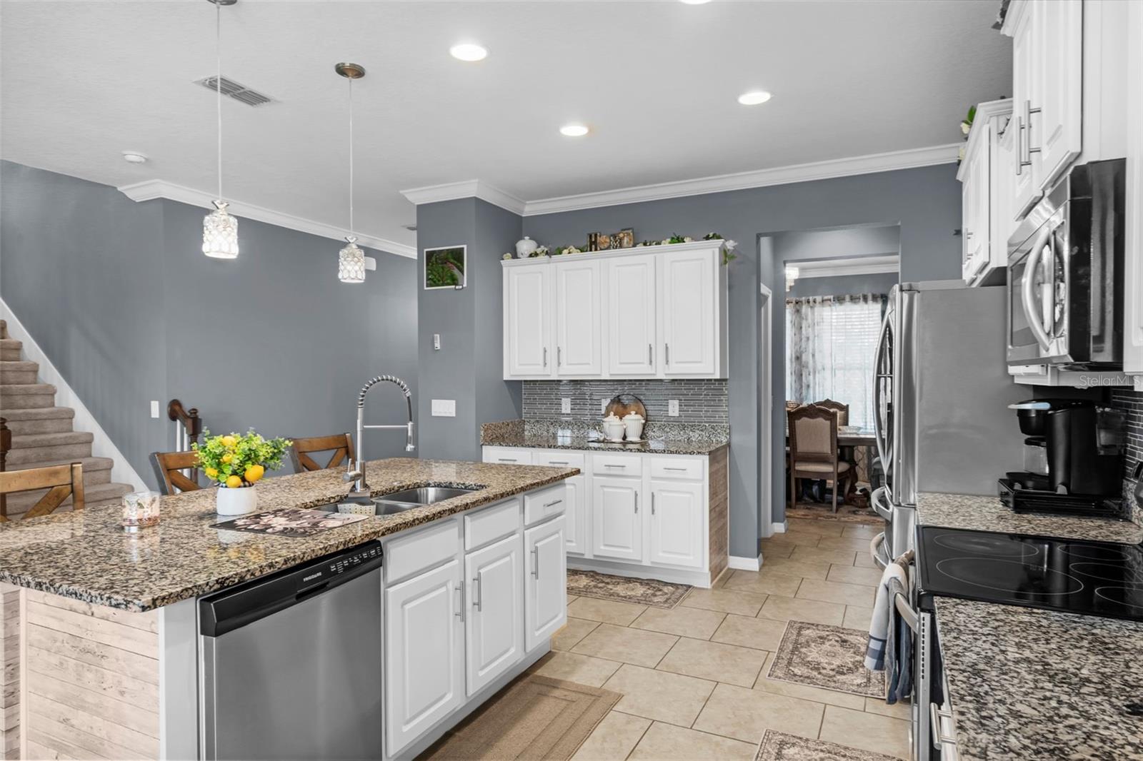 Nova melhoria de preço! Entre nesta bela casa de 2 andares, 5 quartos e 4 banheiros na desejável comunidade de Sawgrass Bay em Clermont. Esta propriedade deslumbrante oferece um layout de conceito aberto que irá cativá-lo desde o momento em que você entrar. A cozinha é uma delícia para o chef, com bancadas em granito, ilha com assentos e armários personalizados, todos com vista para uma espaçosa sala grande. Desfrute de reuniões familiares e entretenimento ao ar livre no grande pátio coberto com pavimentação e fogueira e quintal completamente cercado. Há ainda um quarto separado e banheiro completo no primeiro andar, perfeito para hóspedes ou home office. No andar de cima, um grande loft aberto o aguarda, ideal para entretenimento, academia privativa ou sala de mídia. Os quatro quartos neste nível incluem um espaçoso quarto principal com pias duplas, uma luxuosa banheira de imersão, chuveiro separado e um amplo closet. Esta propriedade está perfeitamente localizada a apenas 5 minutos a pé da escola primária Saw Grass Bay. Não perca a oportunidade de fazer desta a casa dos seus sonhos. Com telhado novo instalado 2023, AC Novo e Exterior recém pintado. Muitas árvores frutíferas como manga, cerejeira, romã, pinha, avacado etc. O condomínio conta com um clubhouse com piscina, perfeito para se refrescar nos dias quentes. Localizado a 30 minutos da Disney World e outras atrações. Você encontrará grandes varejistas e supermercados nas proximidades, incluindo os shopping centers Walmart Supercenter, Super Target e Publix. Perto de todas as principais rodovias. Depressa, esta casa não vai durar.