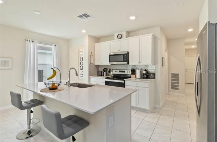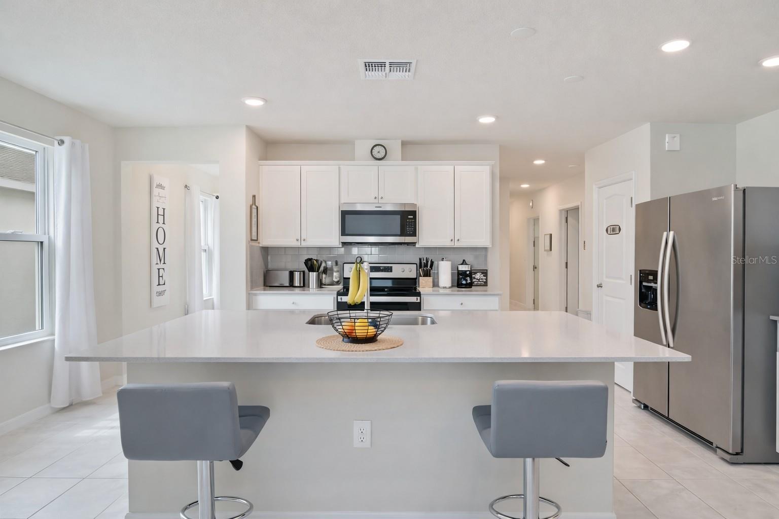 Casa lindamente atualizada em uma localização privilegiada, a apenas 10 a 12 minutos do Animal Kingdom da Disney e a cerca de 25 minutos da propriedade da Disney, com acesso conveniente à US 192, US 1 e estradas com pedágio próximas. Este condomínio fechado e seguro possui piscina privativa com acesso remoto e monitoramento por câmeras, exclusivo para moradores. No interior, a casa oferece cozinha e banheiros totalmente atualizados com torneiras Moen e ferragens modernas, além de piso de cerâmica de alta qualidade que substitui todos os tapetes para um ambiente mais limpo e anti-alérgico. Atualmente, um quarto é usado como escritório, e a suíte master inclui um segundo espaço de trabalho no closet com mesa e monitores duplos. Os toques adicionais incluem tinta extra, azulejos sobressalentes e utensílios domésticos úteis, como aspiradores, ferramentas e itens essenciais de cozinha que permanecerão para o novo proprietário.