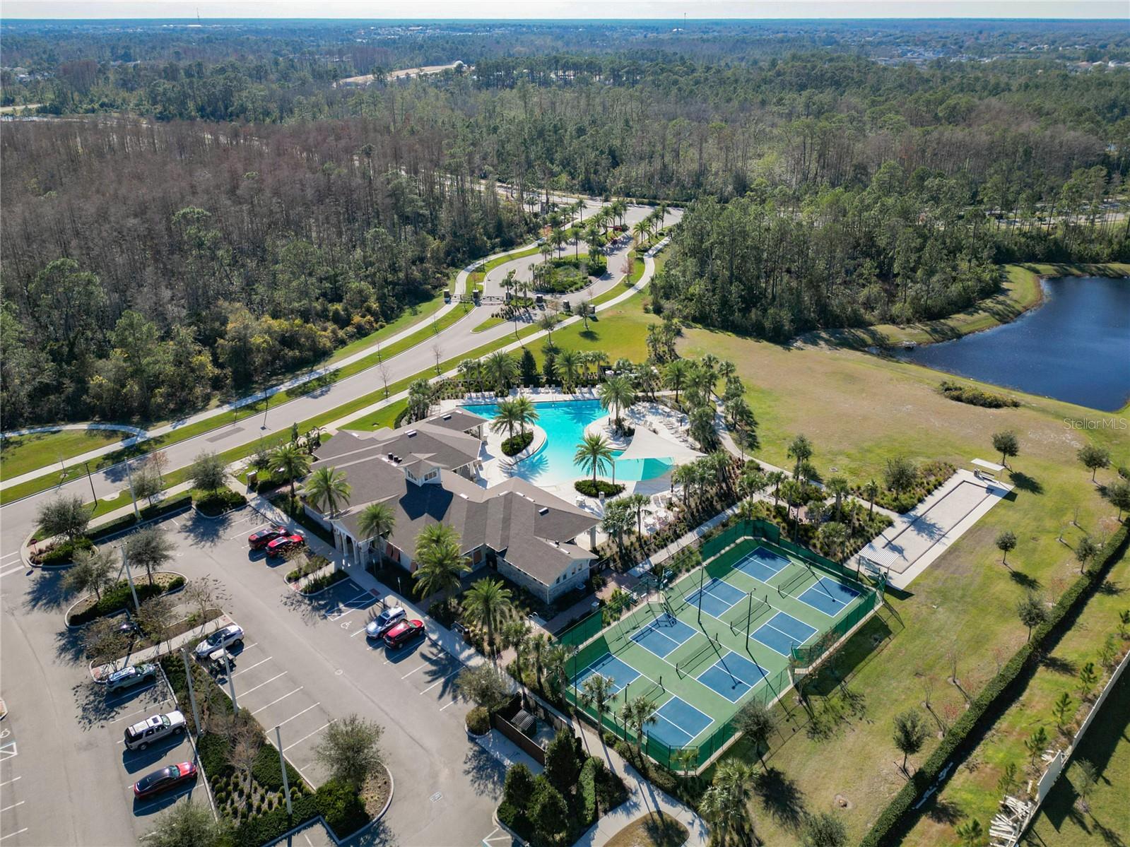 Bem-vindo ao Palms at Serenoa, uma comunidade ativa desejável para pessoas com 55 anos ou mais, construída por DR Horton. É fechado e possui um clubhouse fabuloso e contemporâneo com sala de estar com lareira, mesas e cadeiras, além de bar molhado que pode ser alugado para reuniões ou festas com vista para uma enorme piscina com muitos lugares sentados. Há também uma academia bem equipada, sala de jogos, sala de mídia, gerente no local, 4 quadras de pickleball, fogueira, quadra de bocha, parque para cães e muito mais. Eles têm torneios de pickleball, Mah Jongg e cornhole, além de outras atividades. Você pode dirigir seu carrinho de golfe até a sede do clube ou visitar amigos na vizinhança! Esta villa POND FRONT tem dois quartos e dois banheiros, além de um escritório/escritório em condições de mudança, planta aberta com combinação de cozinha/sala de estar com vista para um lago panorâmico com fonte. A cozinha tem balcões de granito, eletrodomésticos em aço inoxidável, ilha enorme, garrafeira e muitos armários de madeira maciça para arrumação. A despensa com lavadora e secadora fica ao lado da cozinha e em frente à despensa. Há um armário de casacos que pode ser uma 2ª despensa! Todos os aparelhos e sistema de filtragem de água ficam! A suíte master tem armários para ele e para ela, pias duplas, chuveiro grande e vaso sanitário privativo. Novo telhado 2024. As baixas taxas de HOA incluem comodidades, paisagismo, Internet e TV a cabo. Você vai adorar o estilo resort que vive perto de lojas, restaurantes e do Walt Disney World!