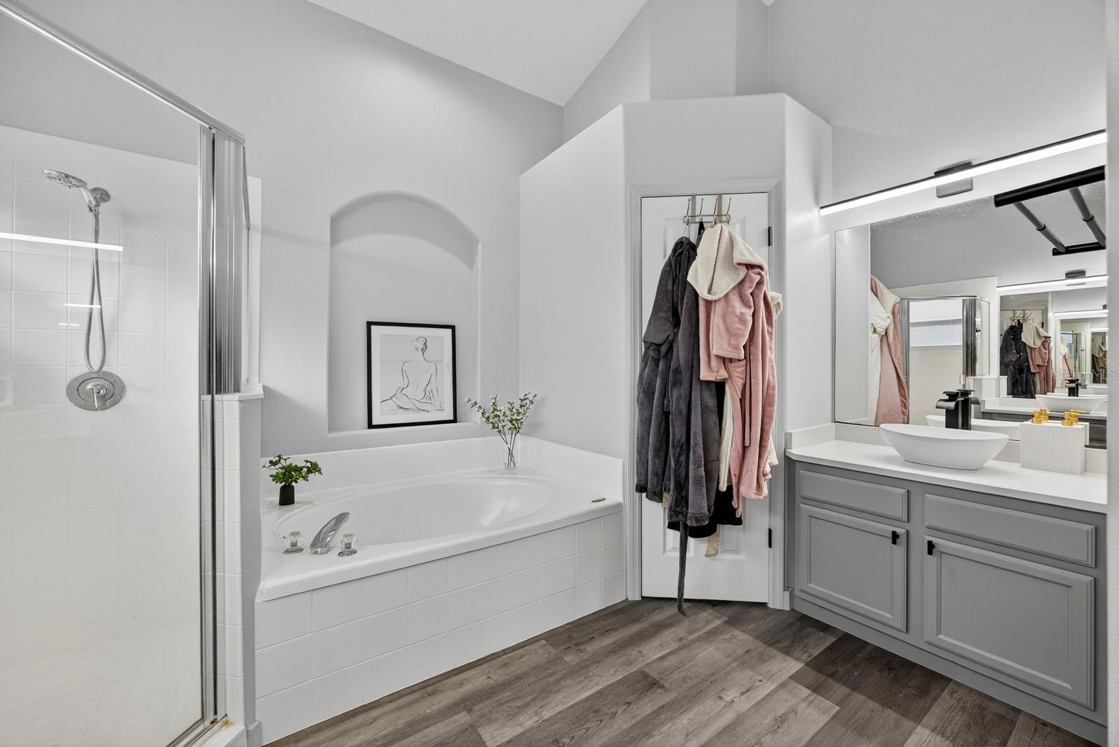 Entre nesta casa lindamente atualizada de 3 quartos e 2 banheiros com uma sala, escondida dentro do condomínio fechado de The Hills of Clermont. A propriedade foi totalmente reformada e está pronta para morar, oferecendo um layout claro e aberto que parece fresco no momento em que você entra. A sala da frente é um ótimo escritório ou espaço flexível e atualmente está configurada como uma segunda área de jantar. A área de estar principal flui facilmente entre a sala de estar, a área de jantar e a cozinha, com uma parede personalizada adicionando um toque único. Grandes portas de vidro mostram o quintal e trazem muita luz natural. A cozinha remodelada possui balcões de quartzo, armários atualizados e armazenamento generoso. A suíte privada do proprietário fica no seu lado da casa e inclui um banheiro moderno e renovado. Dois quartos adicionais e um armário de roupa de cama no corredor estão localizados no lado oposto para uma separação confortável. O quintal é totalmente cercado com vinil e oferece muito espaço para entretenimento, além de acesso conveniente a um banheiro completo diretamente do exterior. As vantagens adicionais incluem lavanderia, garagem para dois carros, telhado mais novo (4 anos) e um aquecedor de água mais novo (1 ano). The Hills of Clermont coloca você perto de tudo: lagos, parques, recreação, instalações médicas de ponta, restaurantes e grandes conveniências - perfeito para quem busca um estilo de vida equilibrado na Flórida Central.
