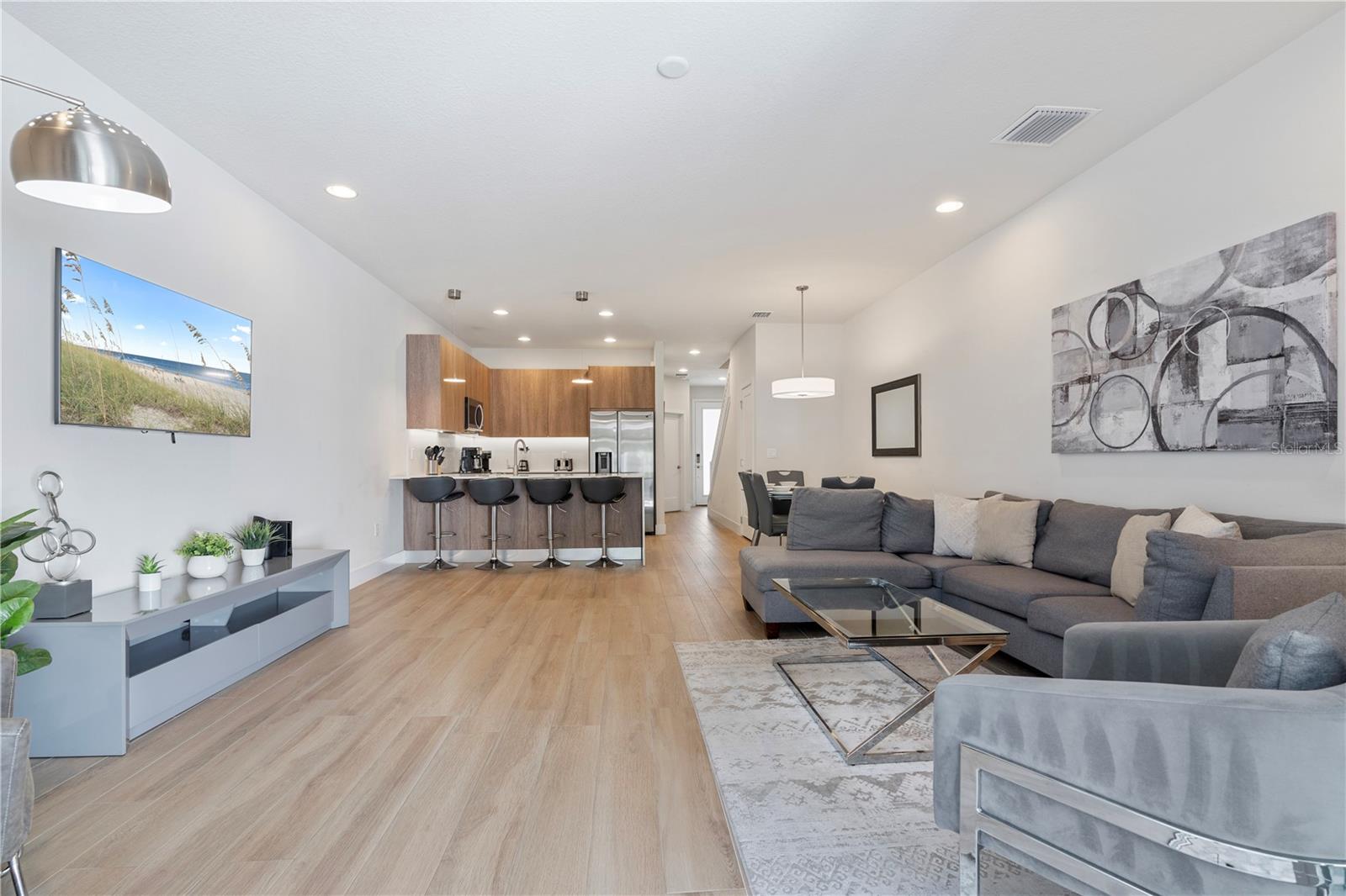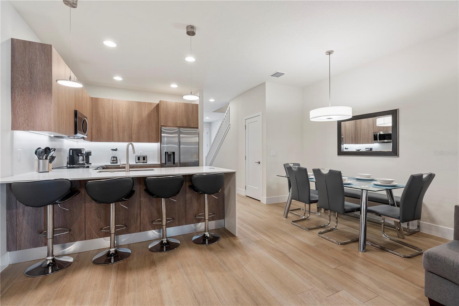 Bem-vindo a esta residência urbana imaculada de 3 quartos e 3 banheiros, piscina privativa e spa, localizada na procurada comunidade de resorts de Hidden Forest em Silver Creek. Quer você esteja procurando uma residência em tempo integral, uma casa de férias ou uma propriedade para investimento, esta residência totalmente mobiliada oferece versatilidade e estilo. Com mobiliário moderno e um layout de conceito aberto, esta casa foi projetada para oferecer conforto e conveniência. Aproveite o luxo de dois quartos com banheiro privativo – um em cada andar – proporcionando maior privacidade para você e seus convidados. A cozinha, equipada com eletrodomésticos em inox, é perfeita para preparar refeições para saborear na zona de refeições ou no deck da piscina. Um bar de café da manhã oferece um local rápido para lanches antes de sair para as atrações próximas. A espaçosa sala de estar, com TV grande e assentos aconchegantes, é ideal para noites de cinema ou para relaxar após um dia agitado. No andar de cima, você encontrará um loft que pode servir como escritório doméstico, área de jogos ou área de estar adicional. A suíte principal oferece um retiro privado, enquanto o quarto e o banheiro restantes oferecem amplo espaço para os hóspedes. Saia para sua varanda privativa com área de piscina protegida, perfeita para aproveitar o sol da Flórida ou relaxar com seu café da manhã ou bebida à noite. Hidden Forest em Silver Creek é uma comunidade em estilo resort com clube, academia, piscina comunitária com banheira de hidromassagem e muito mais. Localizado a poucos minutos de parques temáticos, principais rodovias, lojas e restaurantes, é uma localização privilegiada. A taxa HOA cobre comodidades comunitárias, manutenção externa, manobrista de lixo, esgoto e água, tornando a propriedade livre de preocupações. Quer procure uma residência pessoal ou um investimento para arrendamento de curta duração, esta casa oferece infinitas possibilidades.