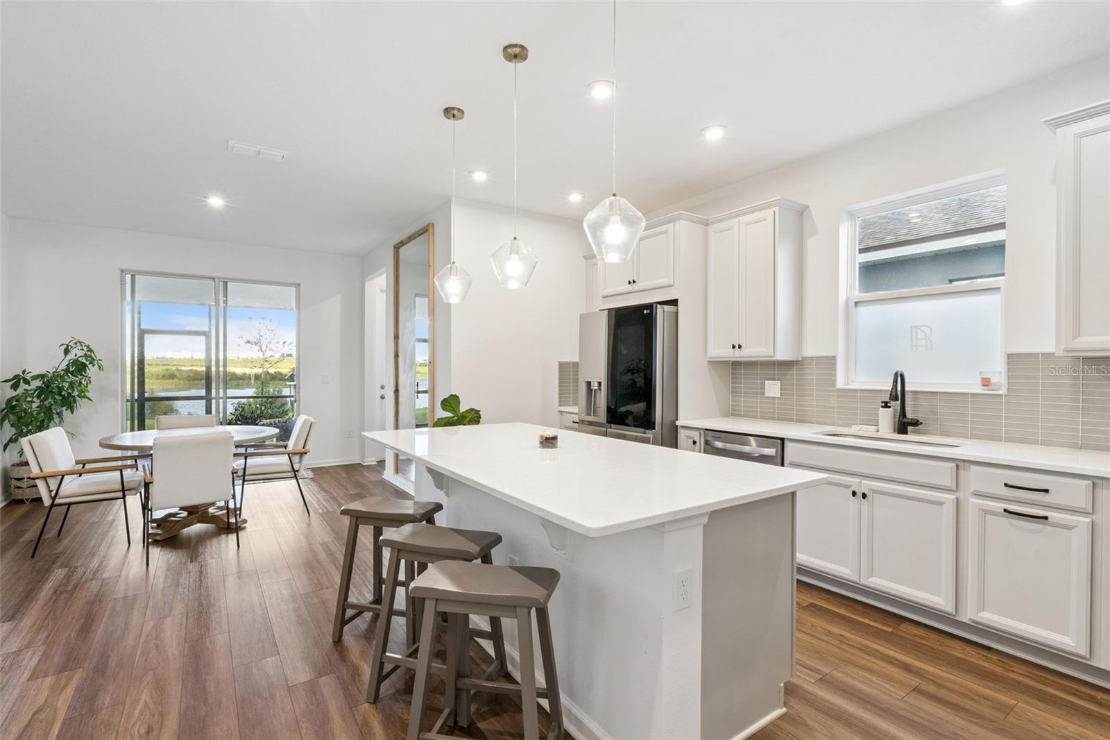 OLHA ESSA VISTA!!!!! Bem-vindo a esta deslumbrante CASA de 4 quartos e 2,5 banheiros COM VISTA PARA O LAGO deslumbrante EM UM CUL-DE-SAC PACÍFICO. Localizada no coração de Clermont, FL, a poucos minutos da Rodovia 50, do Hospital AdventHealth, de consultórios médicos locais e a apenas 11 minutos da Florida Turnpike. Construída pela Mattamy Homes, esta planta Penelope muito procurada oferece quase 3.000 pés quadrados de espaço cuidadosamente projetado, SEM vizinhos frontais ou traseiros, proporcionando privacidade e tranquilidade excepcionais. O coração da casa é a cozinha do chef gourmet, com armários brancos atualizados de 42", elegantes bancadas de quartzo, uma ilha espaçosa com assentos e eletrodomésticos de aço inoxidável de última geração, incluindo um forno duplo. Iluminação de design, backsplash de azulejos de vidro e piso com aparência de madeira completam o espaço elegante e funcional - perfeito para entretenimento e para a vida cotidiana. Desfrute de preparar refeições na cozinha do seu próprio chef, juntamente com uma bela vista e uma brisa refrescante. Ao lado da cozinha, a ampla sala de estar lhe dá as boas-vindas. com luz natural abundante, graças a grandes janelas e portas de vidro deslizantes que se abrem para um quintal sereno com vista desobstruída para o lago. A sala apresenta uma estética limpa e moderna com iluminação embutida, um ventilador de teto elegante e uma paleta de cores neutras que complementa qualquer decoração. você será recebido pelo loft no andar de cima, oferecendo espaço adicional versátil e muita ILUMINAÇÃO NATURAL. A suíte principal oferece uma atmosfera serena e luxuosa. A grande janela oferece vistas deslumbrantes para o mar e inunda o quarto com luz natural, criando uma sensação de retiro tranquilo, com tons neutros suaves, carpete macio e acabamentos sofisticados - como o ventilador de teto elegante e a parede com detalhes texturizados -, parece espaçoso, calmo e pronto para morar. um relaxante santuário privado é de tamanho generoso e possui um banheiro privativo atualizado com acabamentos premium e amplo espaço no armário. Cada quarto secundário é espaçoso e cuidadosamente planejado, proporcionando conforto e funcionalidade para toda a família. Belas trilhas para caminhada, piscina comunitária, splash pads para os pequenos, academia totalmente equipada e um clube para hospedar qualquer reunião. ambiente natural exuberante e sem vizinhos diretos na frente ou atrás. Área perfeita para você passar algum tempo. Isso não é tudo, você terá uma garagem para três carros junto com uma elevação frontal que combina privacidade, elegância e conveniência em uma das comunidades mais desejáveis de Clermont, Waterbrook. vivendo à beira do lago no seu melhor!