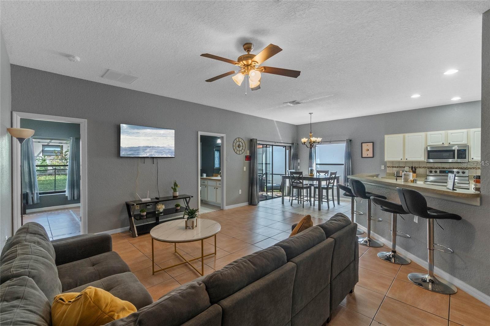 Bem -vindo à comunidade Gated High Grove! Quando você entra, esta casa de 3 quartos de 3 quartos, a planta aberta totalmente cerâmica, a planta aberta recebe você, com uma barra de cozinha e todos os utensílios de aço inoxidável, um quarto principal estrategicamente colocado na parte traseira para facilitar o acesso à sua piscina privada. A comunidade de High Grove oferece um estilo de vida de lazer com atividades recreativas para toda a família, incluindo um playground, piscina comunitária, clube, fitness center, arcade, lixo com manobrista, manutenção de quintal e controle de pragas. Esta casa fica a poucos minutos de parques temáticos, shopping centers, supermercados e campos de golfe. Perfeito para aluguel de curto prazo, uma segunda escapada em casa ou sua residência em tempo integral.
