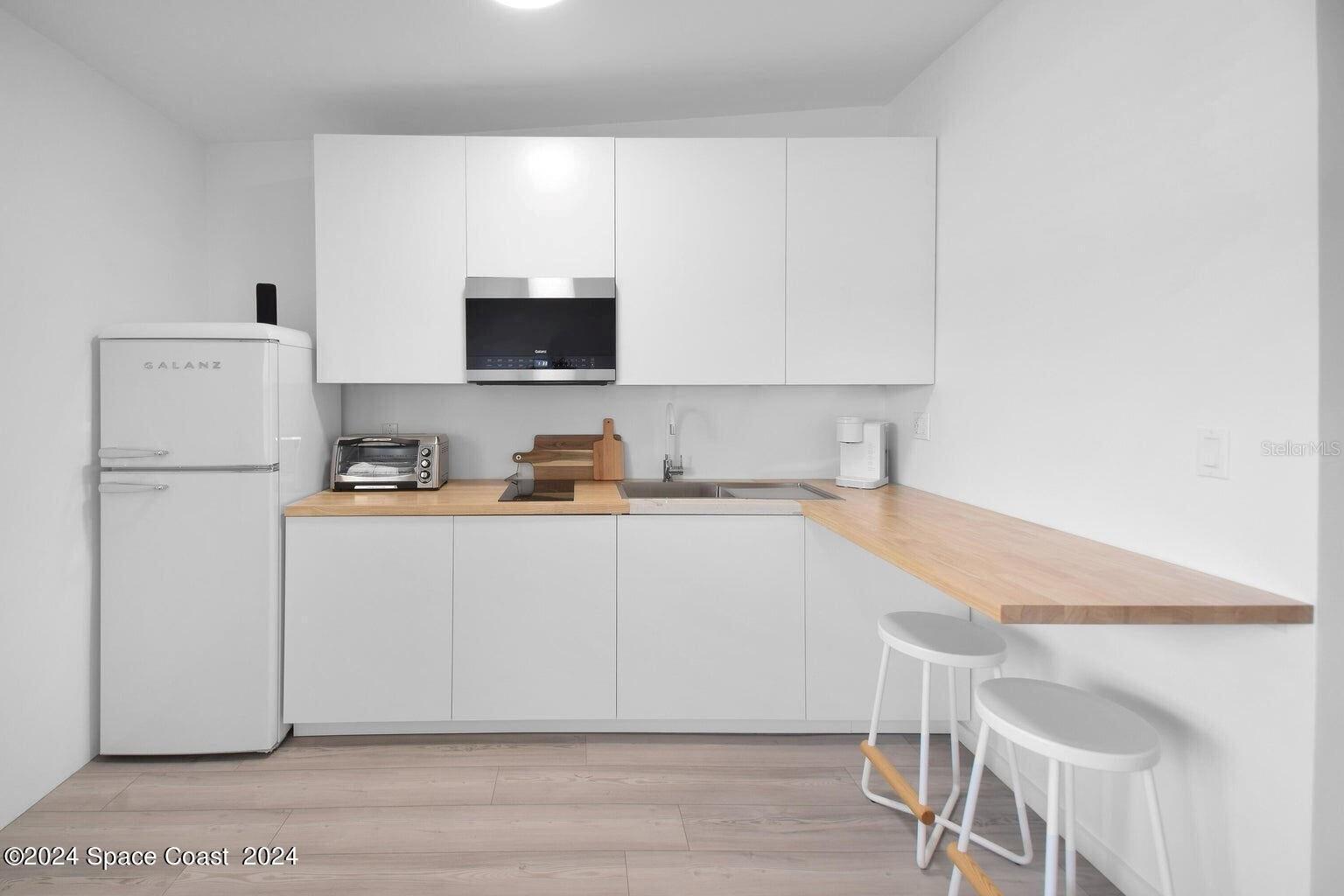 O nome já diz tudo: Surf N Sun é o lugar perfeito para desfrutar de caminhadas tranquilas na praia e do nascer do sol cintilante. Com fabulosas atualizações de estilo europeu - como piso de vinil luxuoso, armários brancos altos, balcões de açougue e piso de pedra - este condomínio totalmente mobiliado é tão bonito quanto funcional. Desfrute de atualizações adicionais de conveniência de alta qualidade, como portas push-to-open, aquecedor de água sem tanque, torneira de silicone flexível, chuveiro com efeito de chuva, fritadeira de ar, cafeteira K-express, mesa de computador embutida, novo mini-split A/ C, janelas de impacto e muito mais. Do lado de fora, a varanda voltada para o leste oferece um local privilegiado para ver lançamentos de foguetes, e um chuveiro ao ar livre na varanda fechada permite enxaguar a areia com estilo. As comodidades/utilidades comunitárias incluídas incluem 2 vagas de estacionamento exclusivas, TV a cabo, internet, seguro, água, esgoto, lixo e lavanderia no local. Com uma localização privilegiada a apenas um quarteirão da costa, este lindo condomínio é o refúgio de praia acessível que você estava esperando!